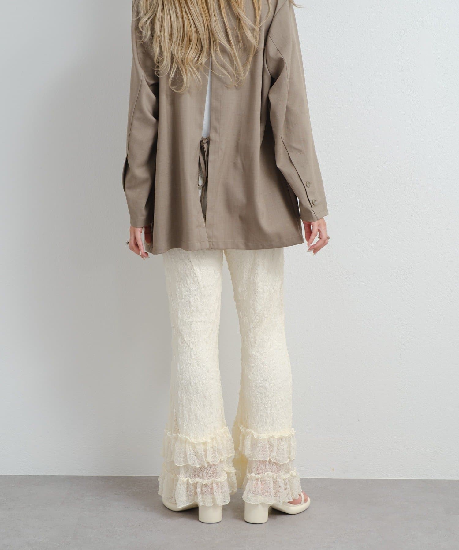 繊細なレース素材を贅沢に使用したフリルパンツ。