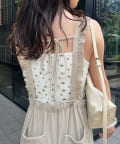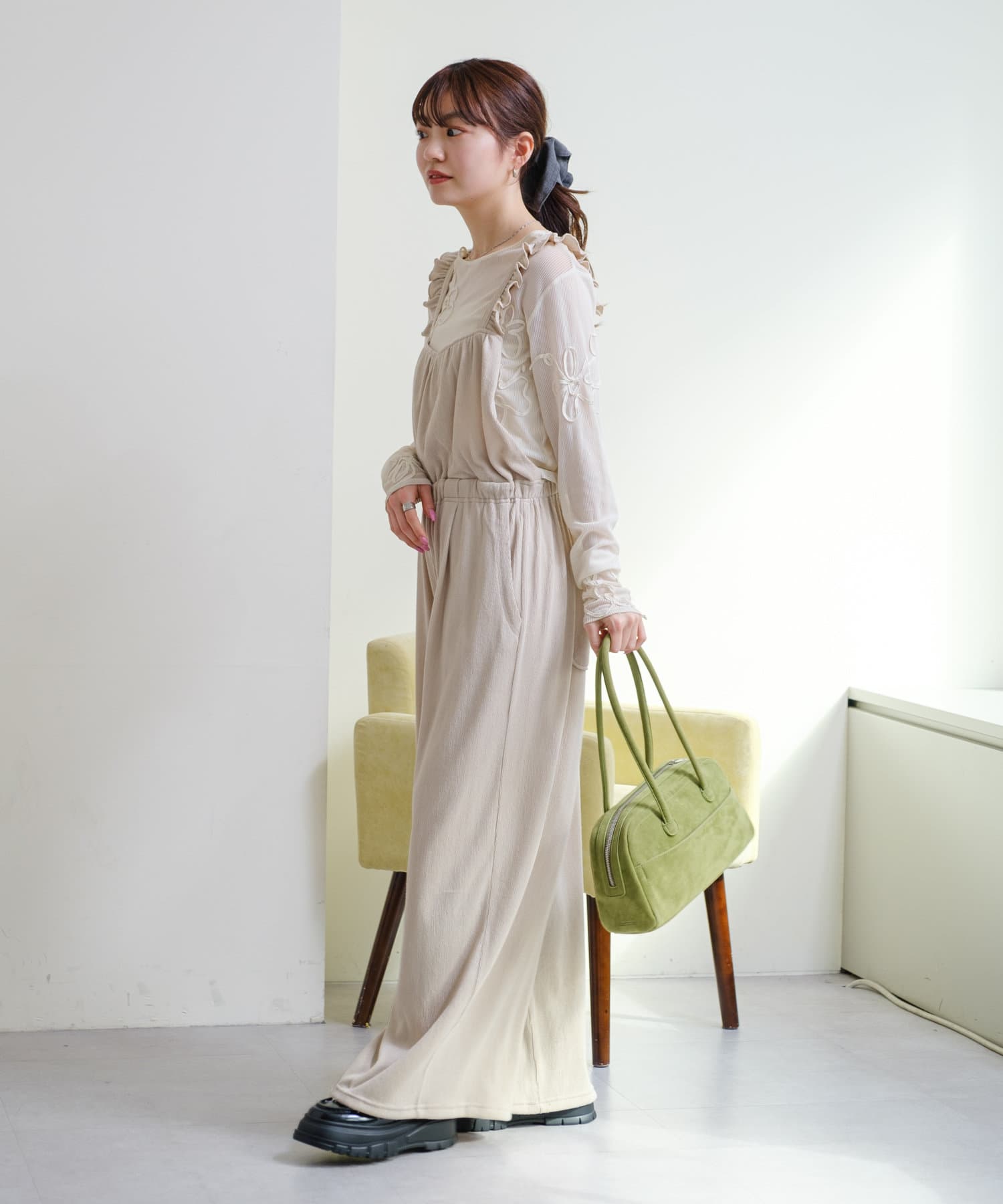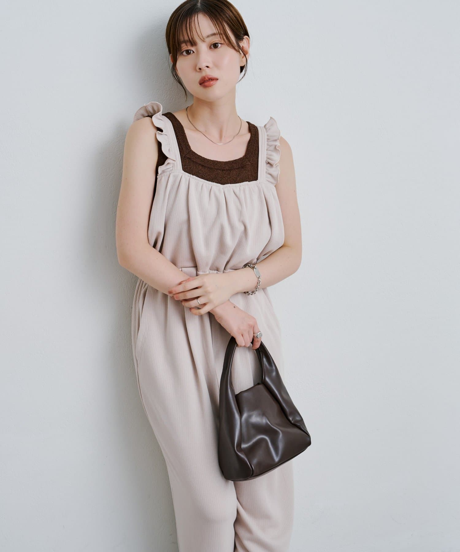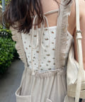 ショルダーストラップに施された細やかなフリルが全体に華やかで優しい印象をプラスしてくれます。