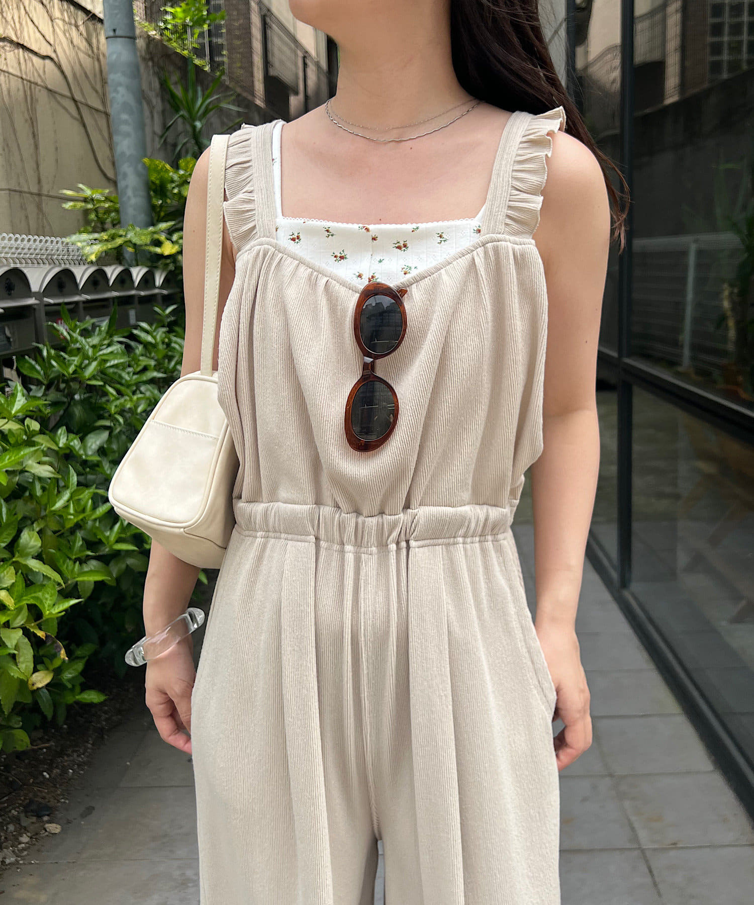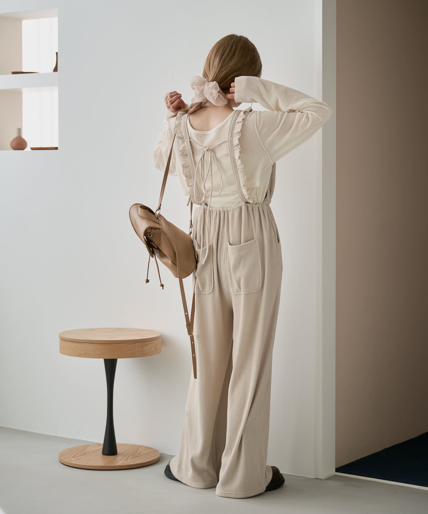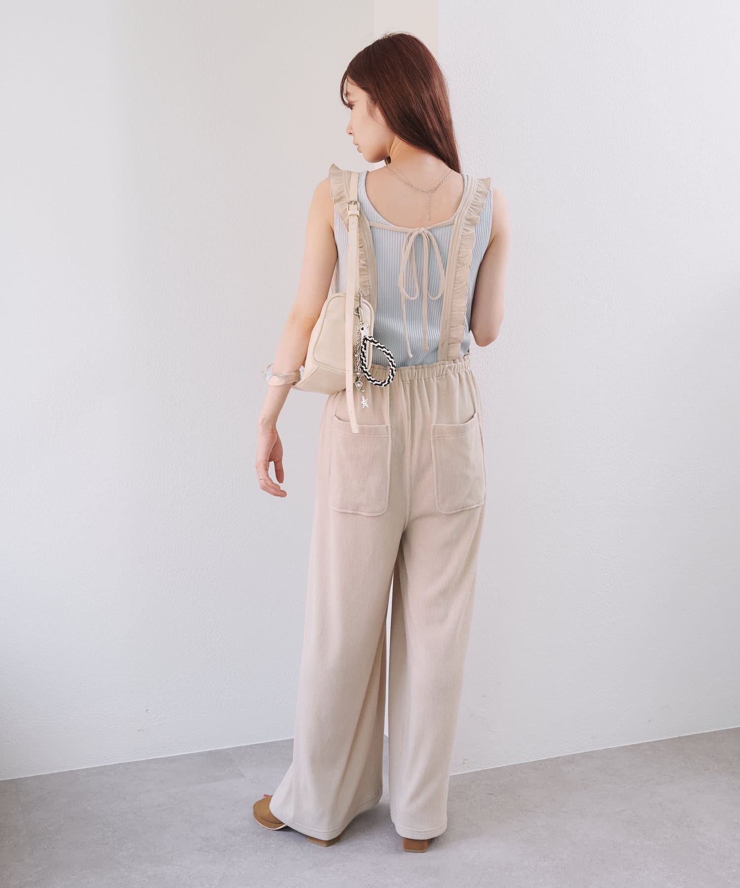 【2サイズ展開/低身長サイズ/着丈調節可】フリルサロペット