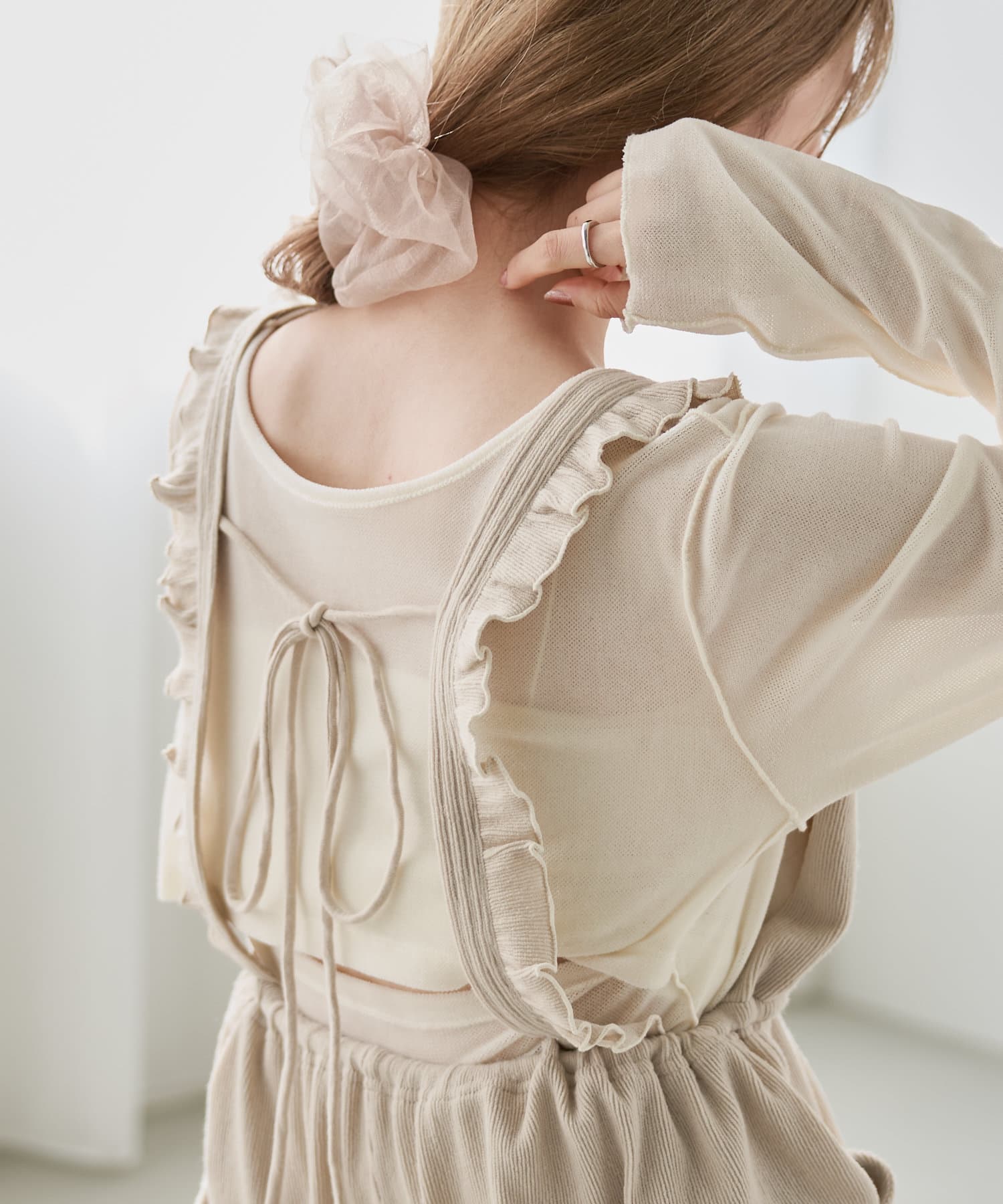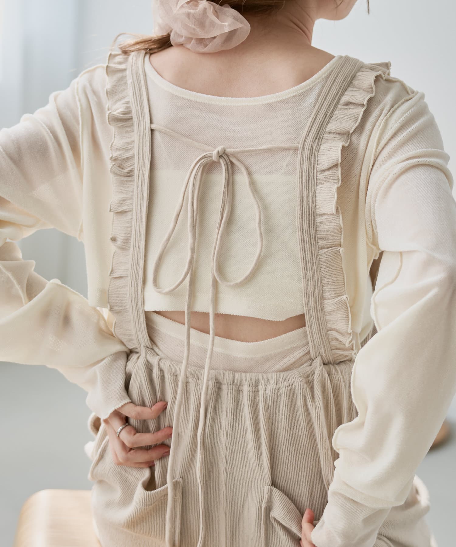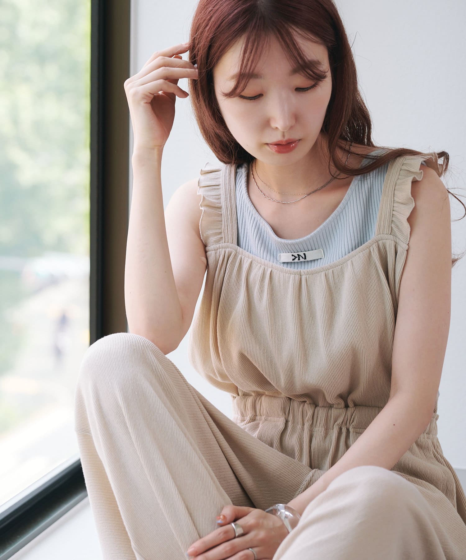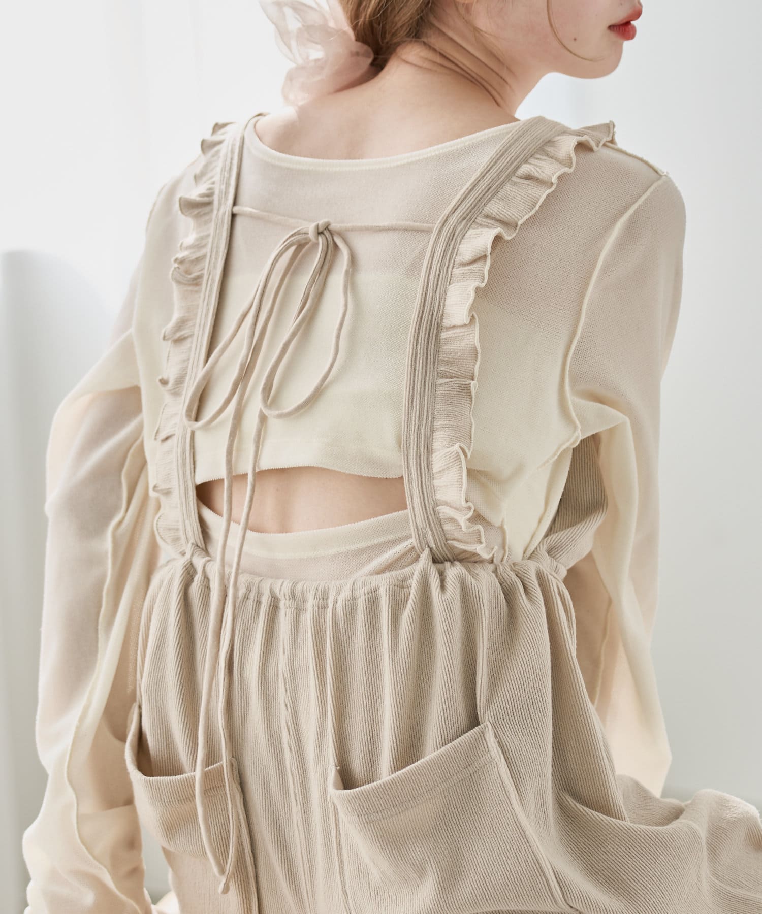 【2サイズ展開/低身長サイズ/着丈調節可】フリルサロペット