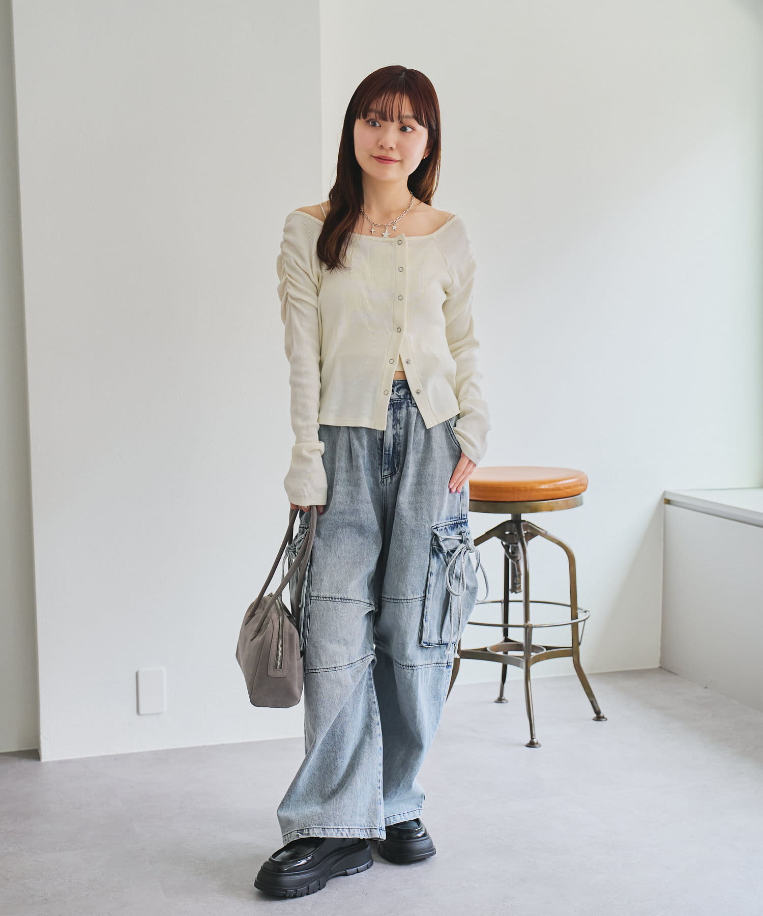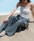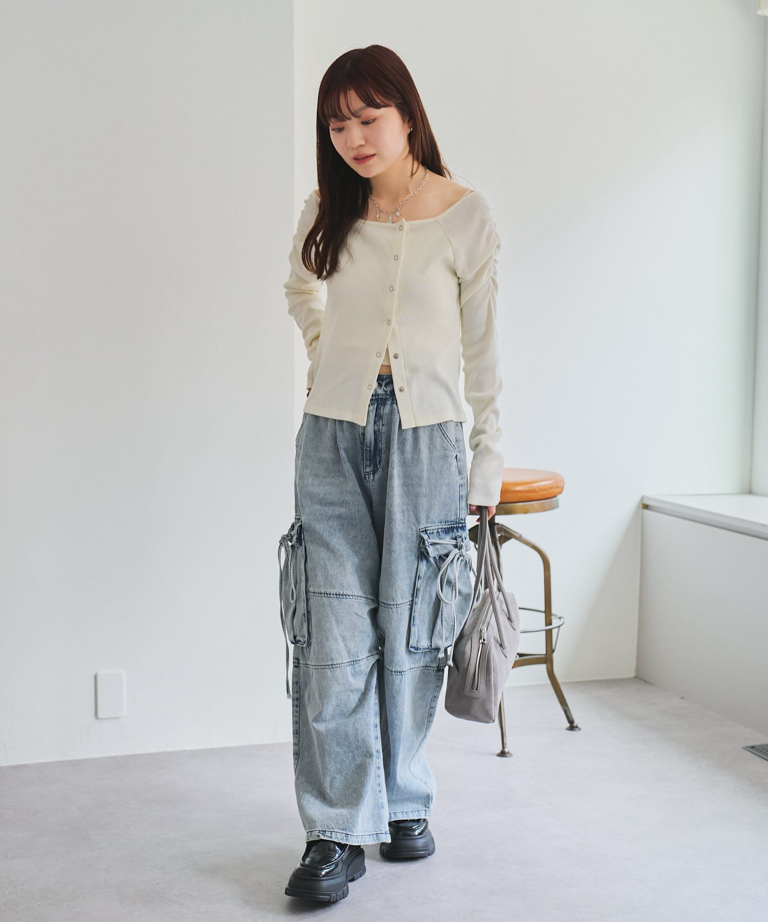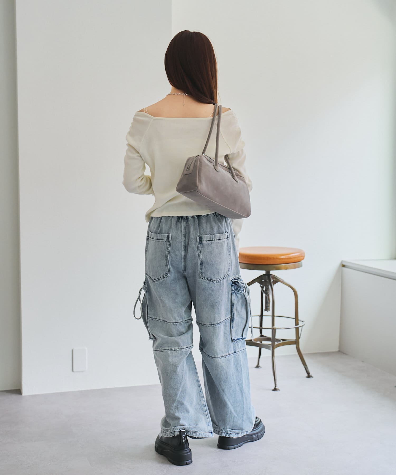 トップスを合わせることでスッキリとしたバランスに仕上がります。
