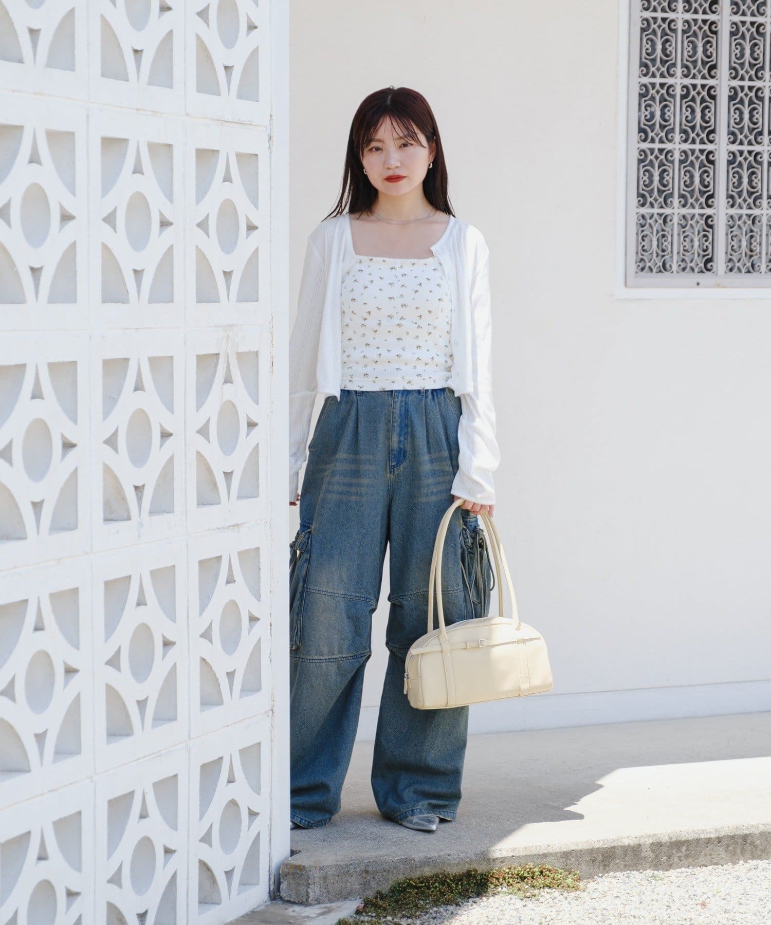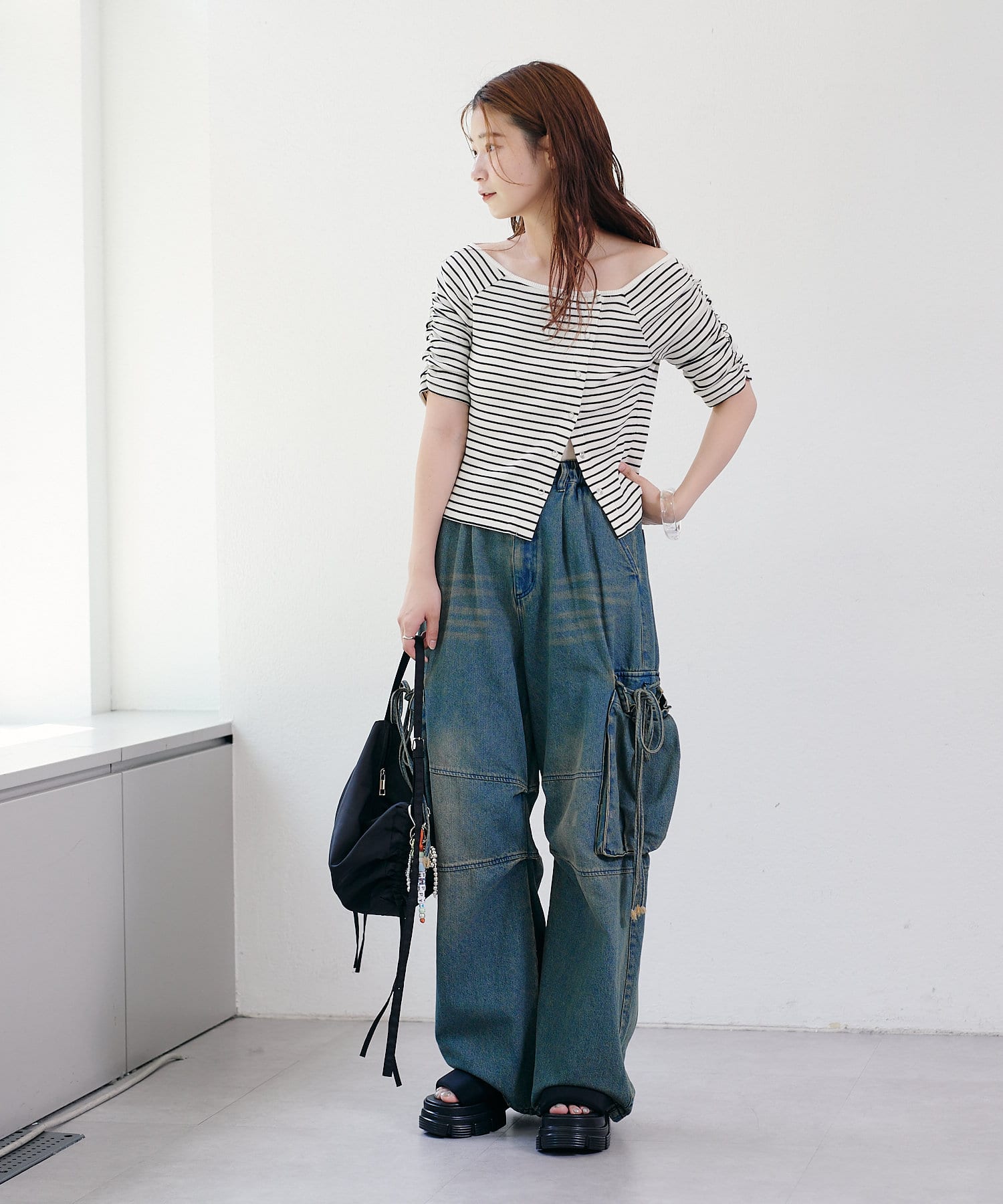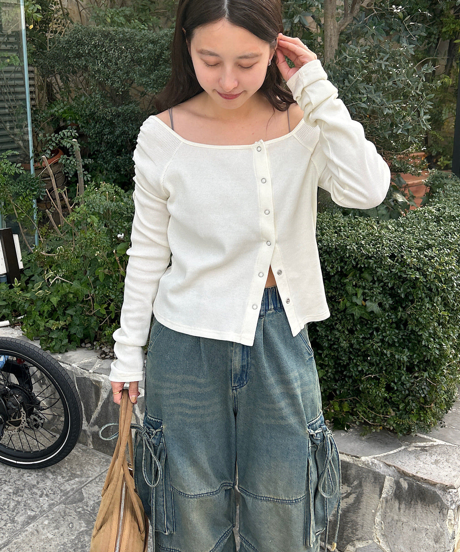 トップスを合わせることでスッキリとしたバランスに仕上がります。