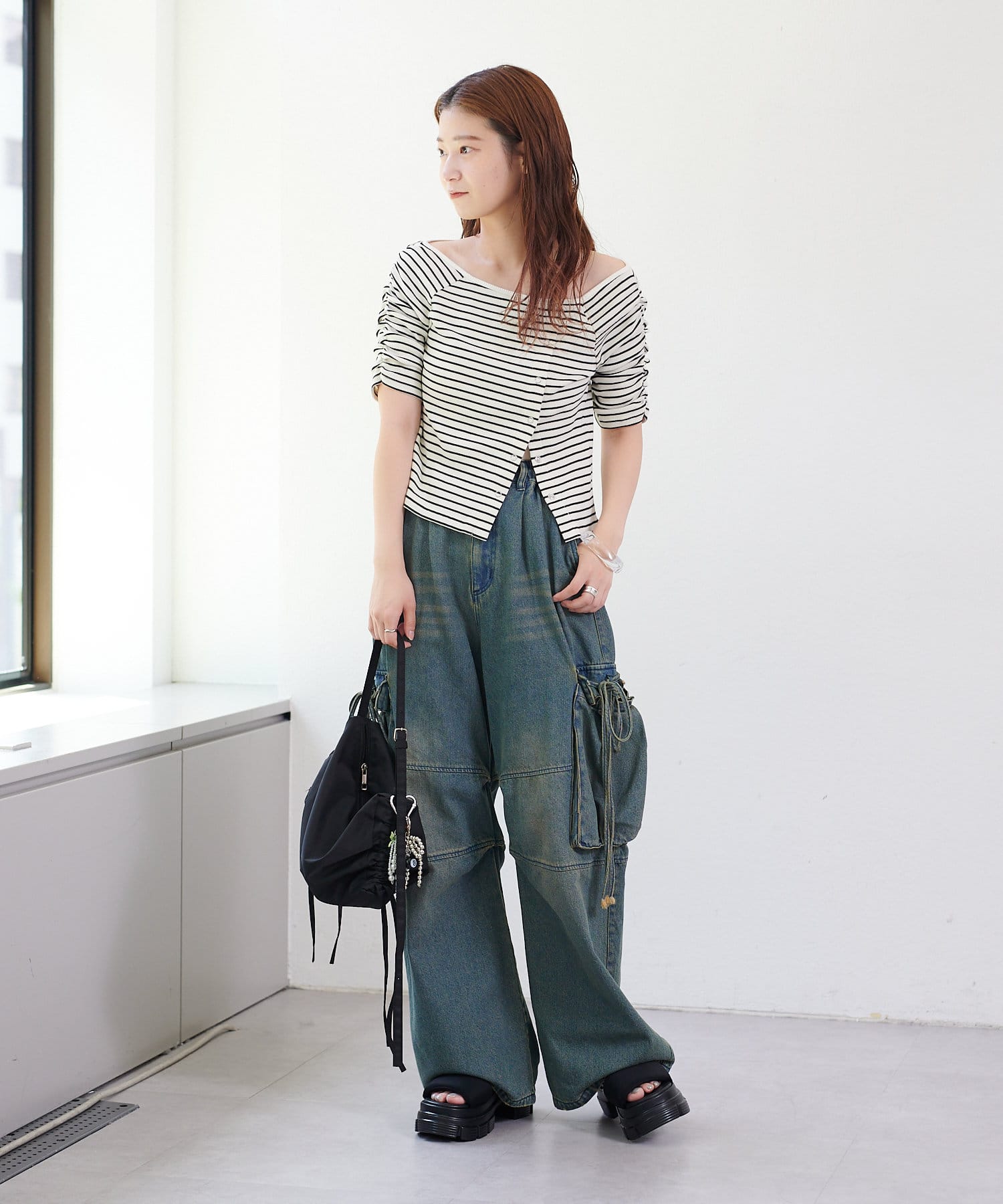 購入場所:店舗ゆったりめなシルエットと、横のリボンやポケットが超可愛いです♡