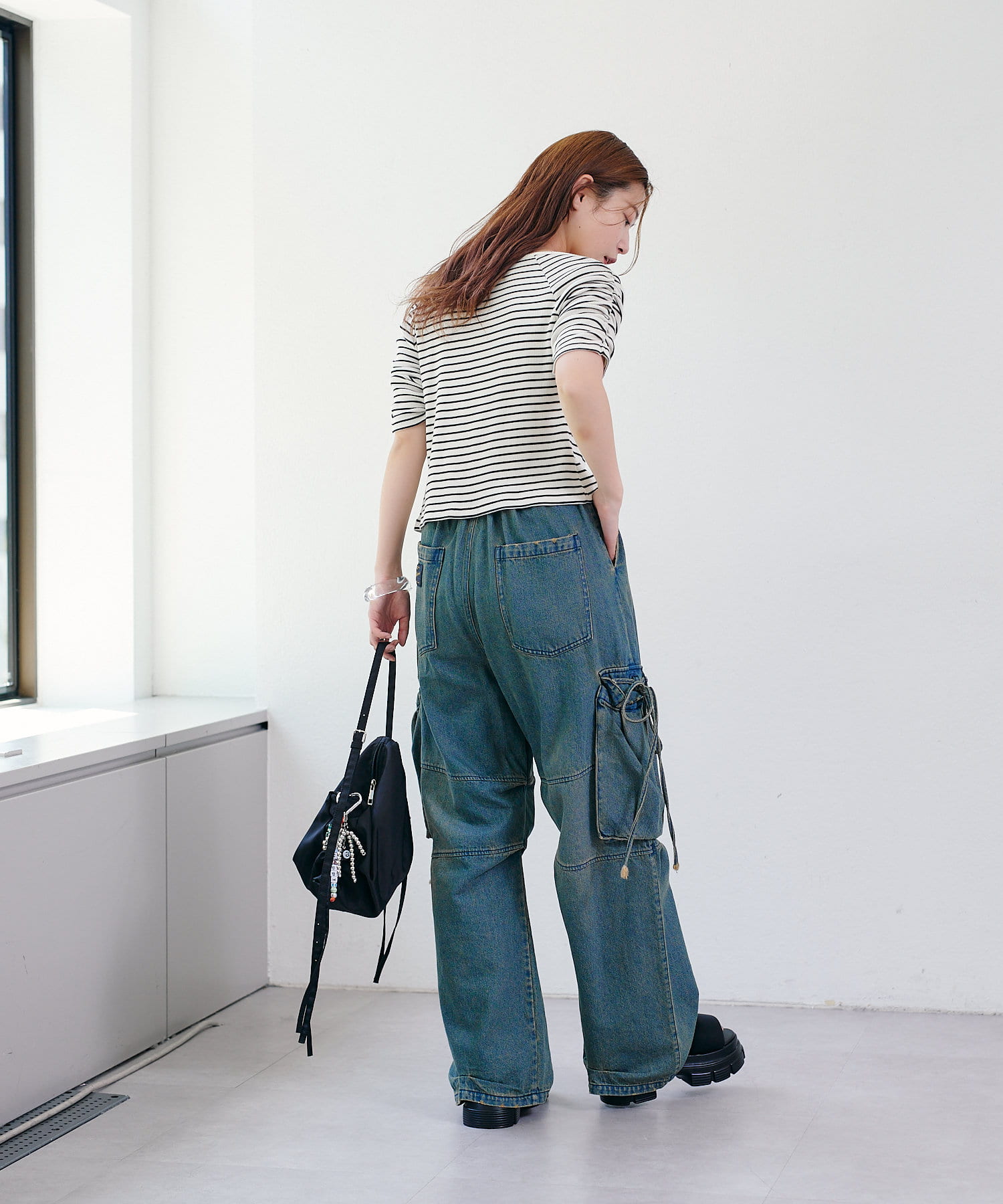 ●デニム製品は、汗や摩擦により、衣類・バッグ・イス・車のシートなどに色移りしますのでご注意ください。