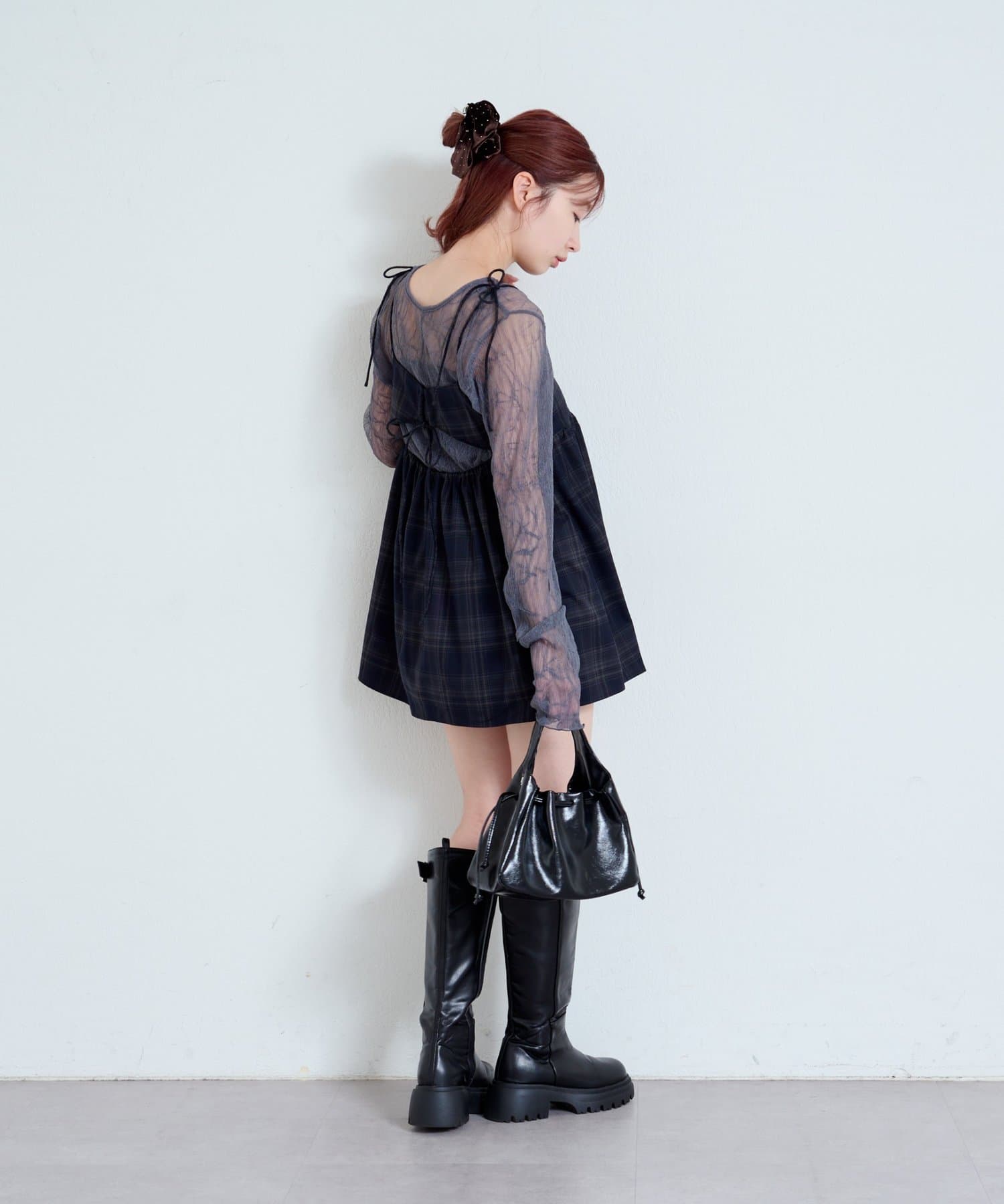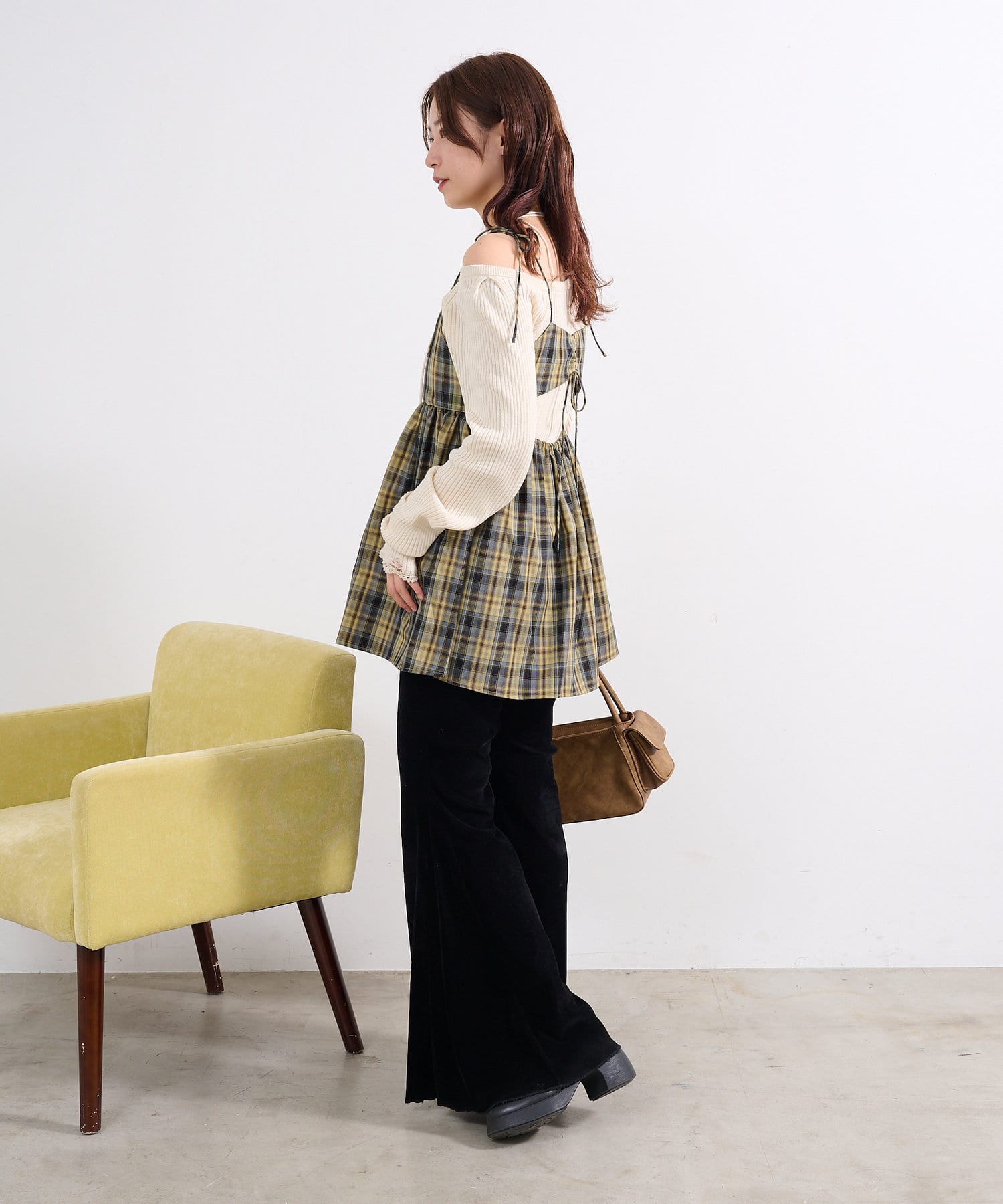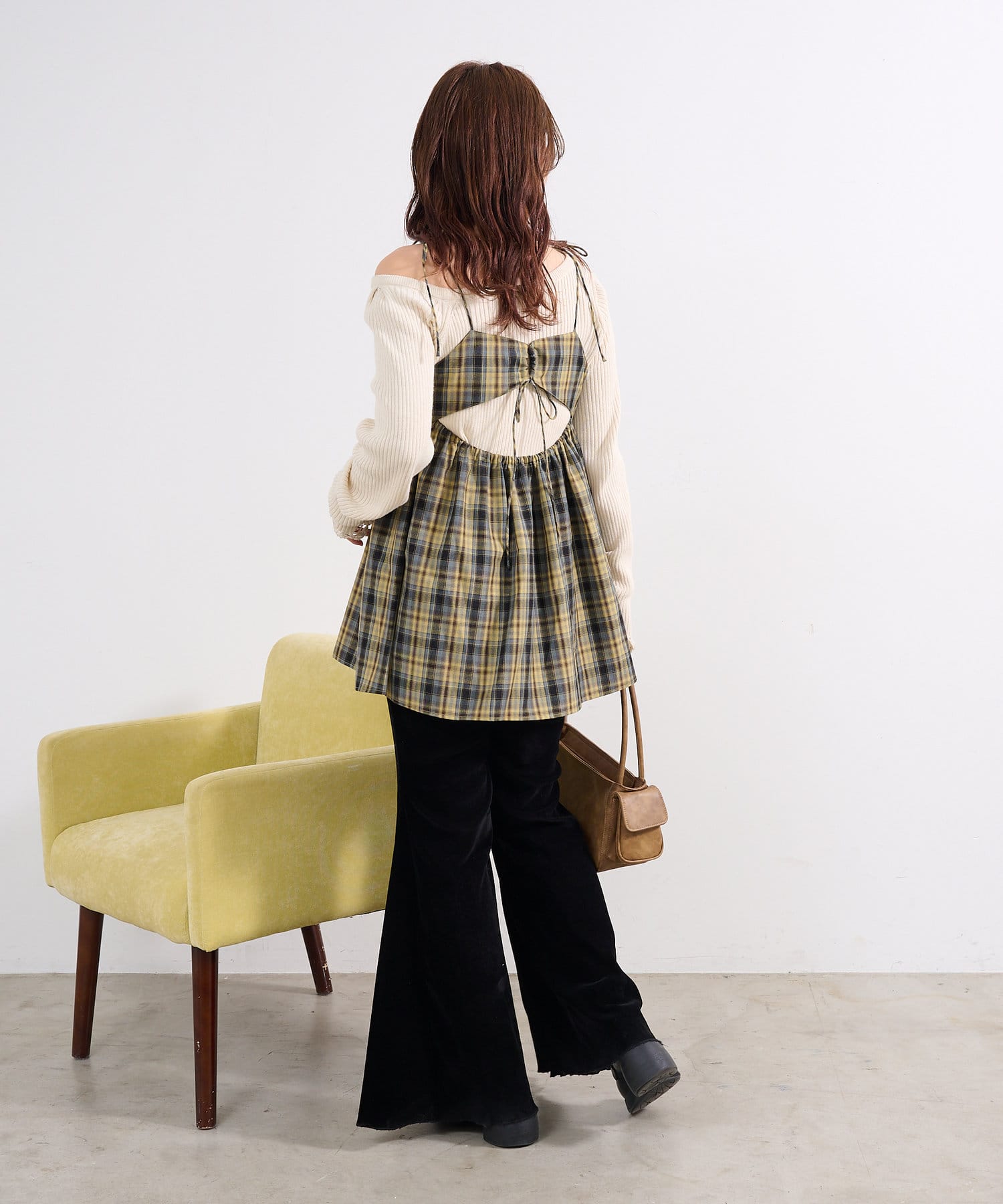 バックスタイルが魅力のチェックビスチェ。