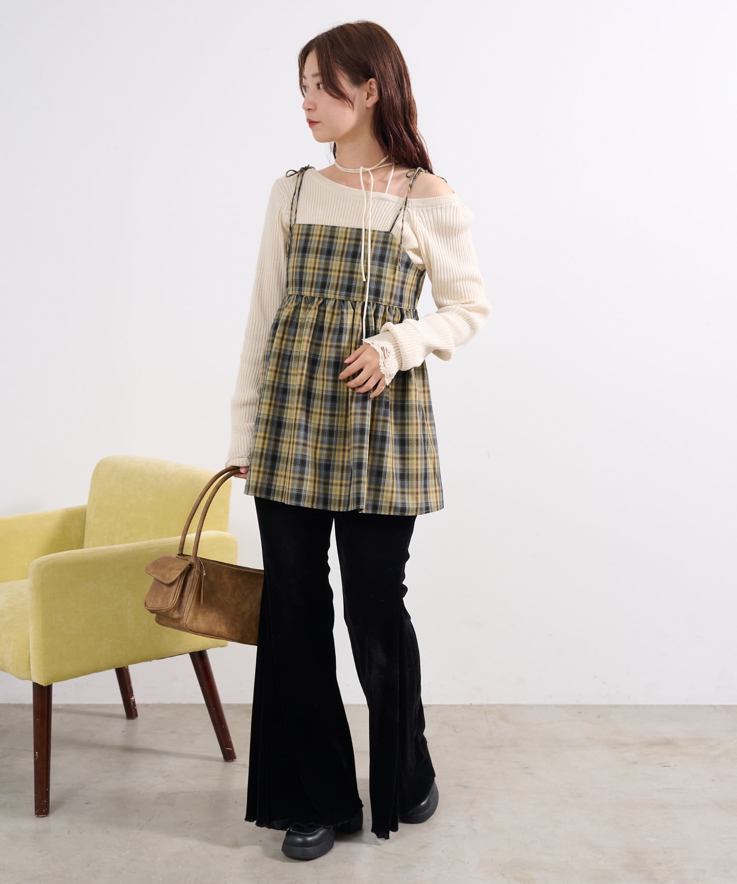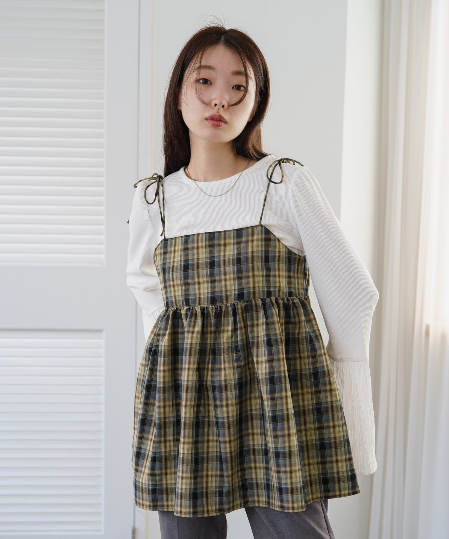 【WEB・一部店舗限定】チェックキャミビスチェ