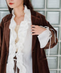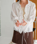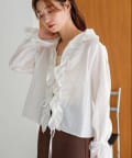 フロントにたっぷりと施されたフリルが女性らしさを引き立てるブラウス。