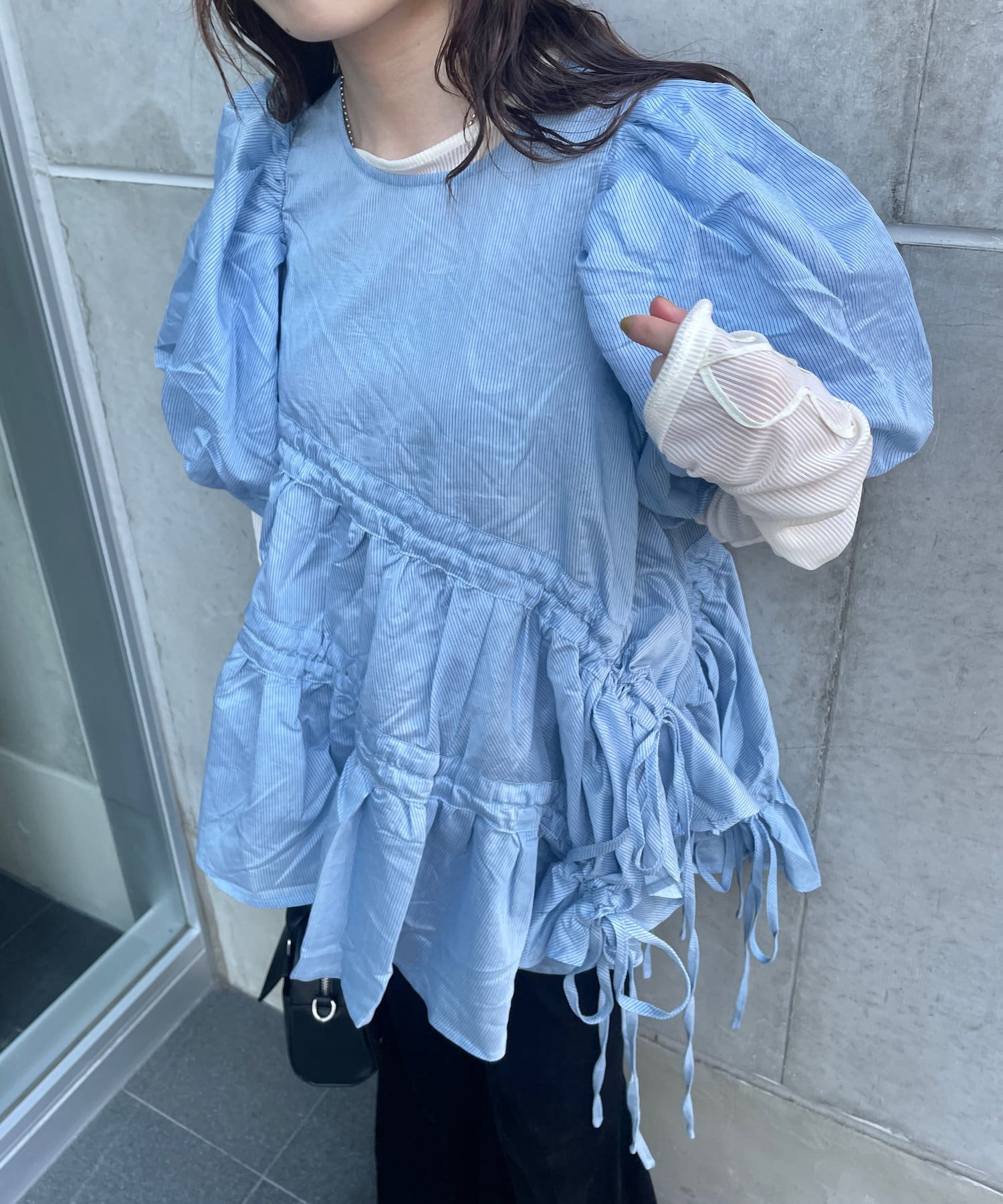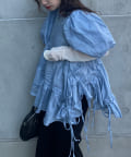 ふんわりと膨らむパフスリーブとドローコードで調整可能なリボンが、女性らしさを引き立てます。