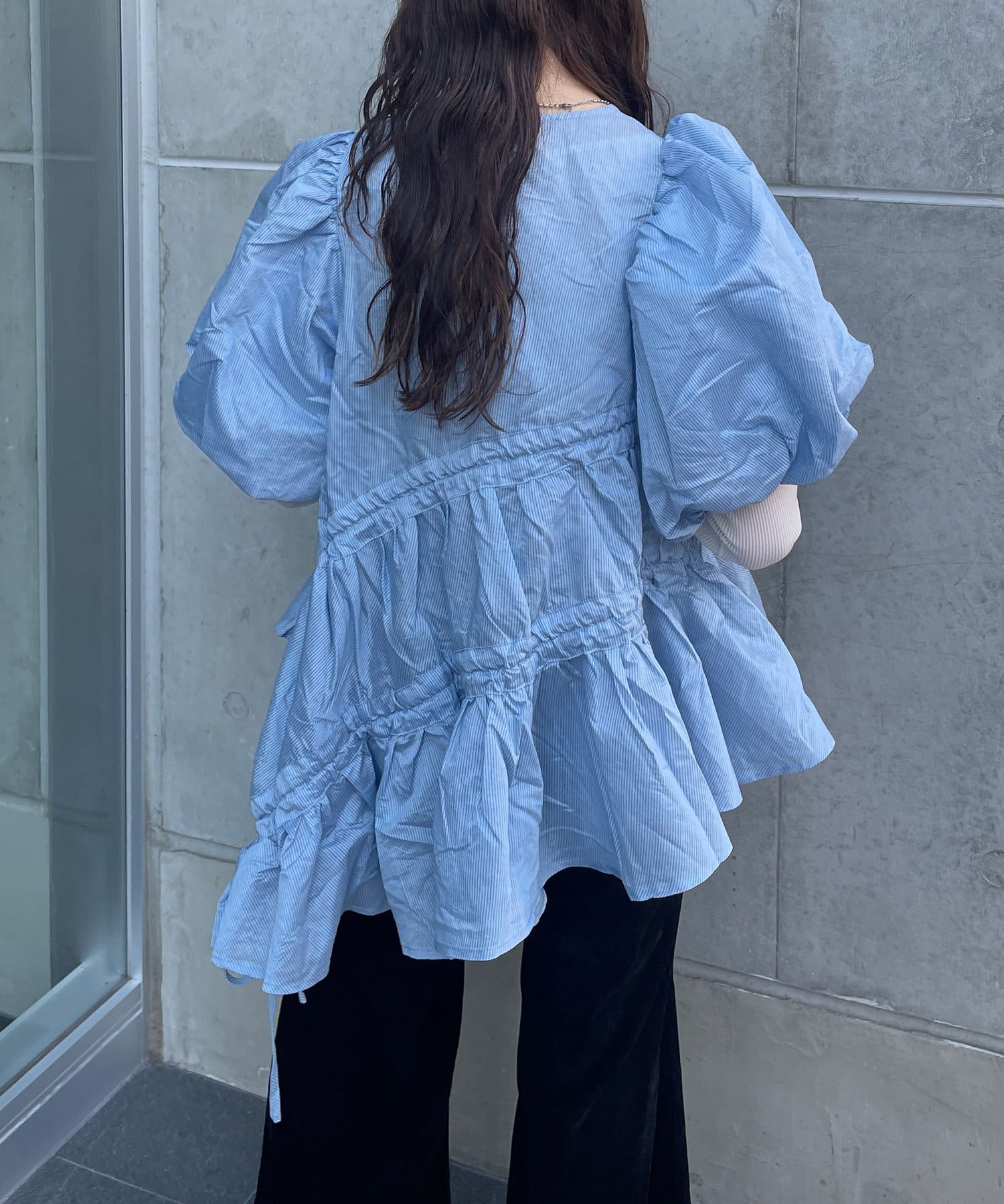 軽やかな素材感と華やかなディテールが目を引く、ティアードデザインのブラウス。