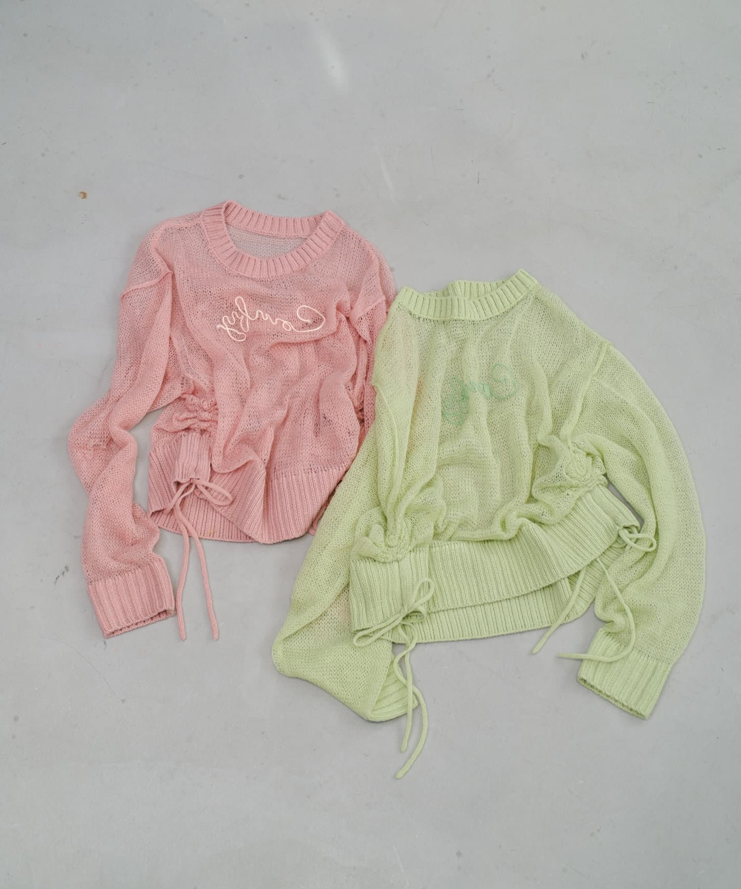ウエスト部分にはドローストリングが付いているので、シルエットの調節が可能◎