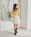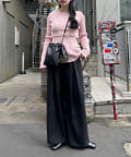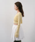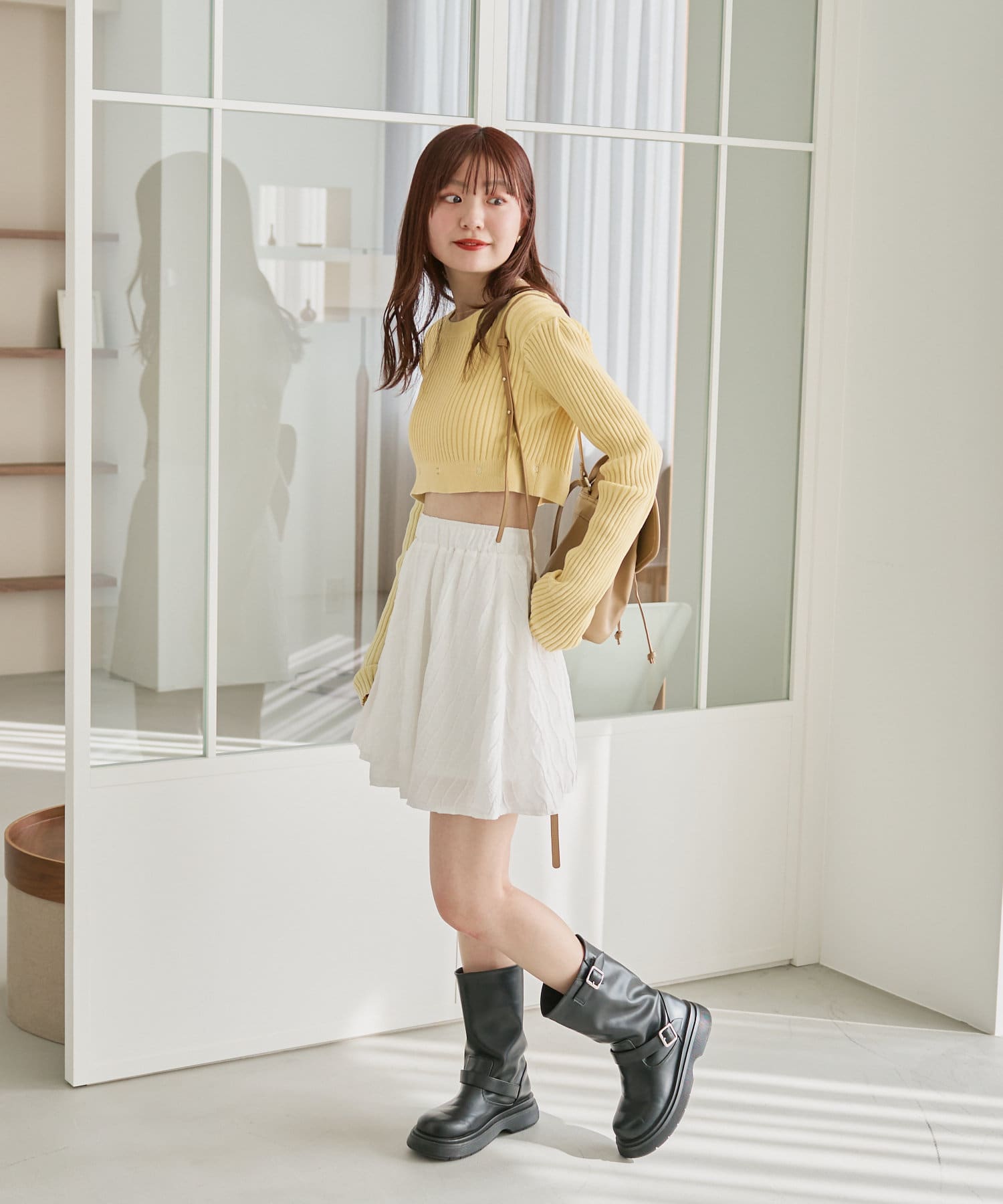 クロップドで着用する際は、ミニスカートと合わせると女性らしい印象にも仕上がります。