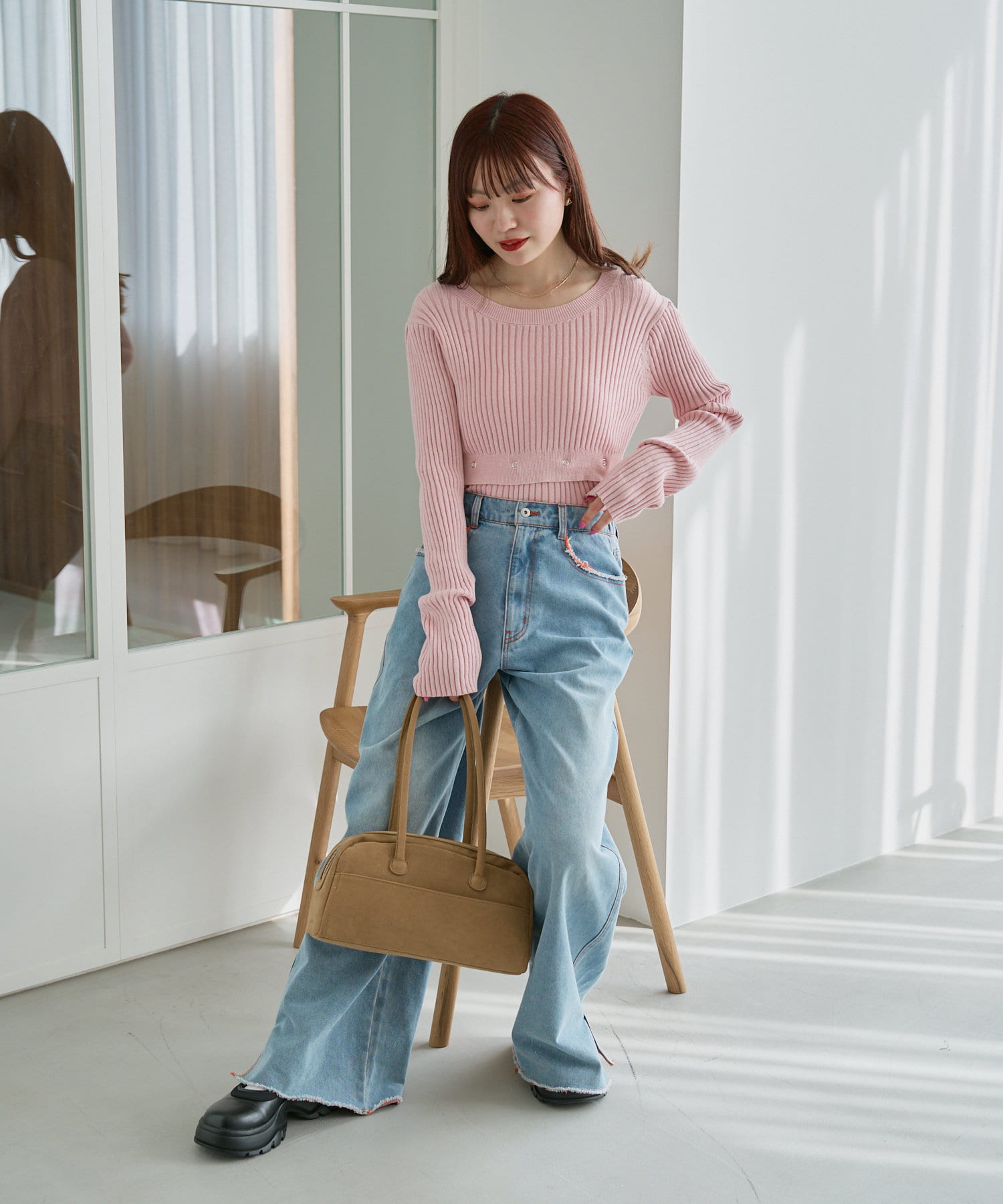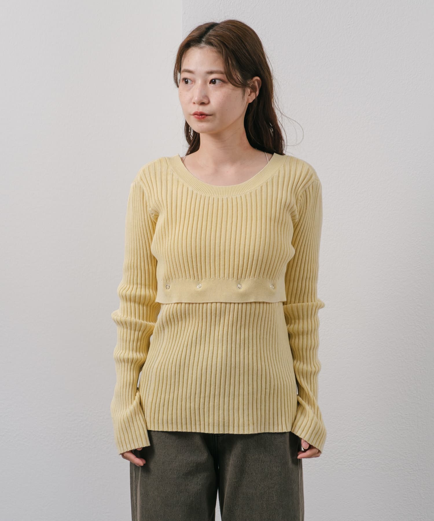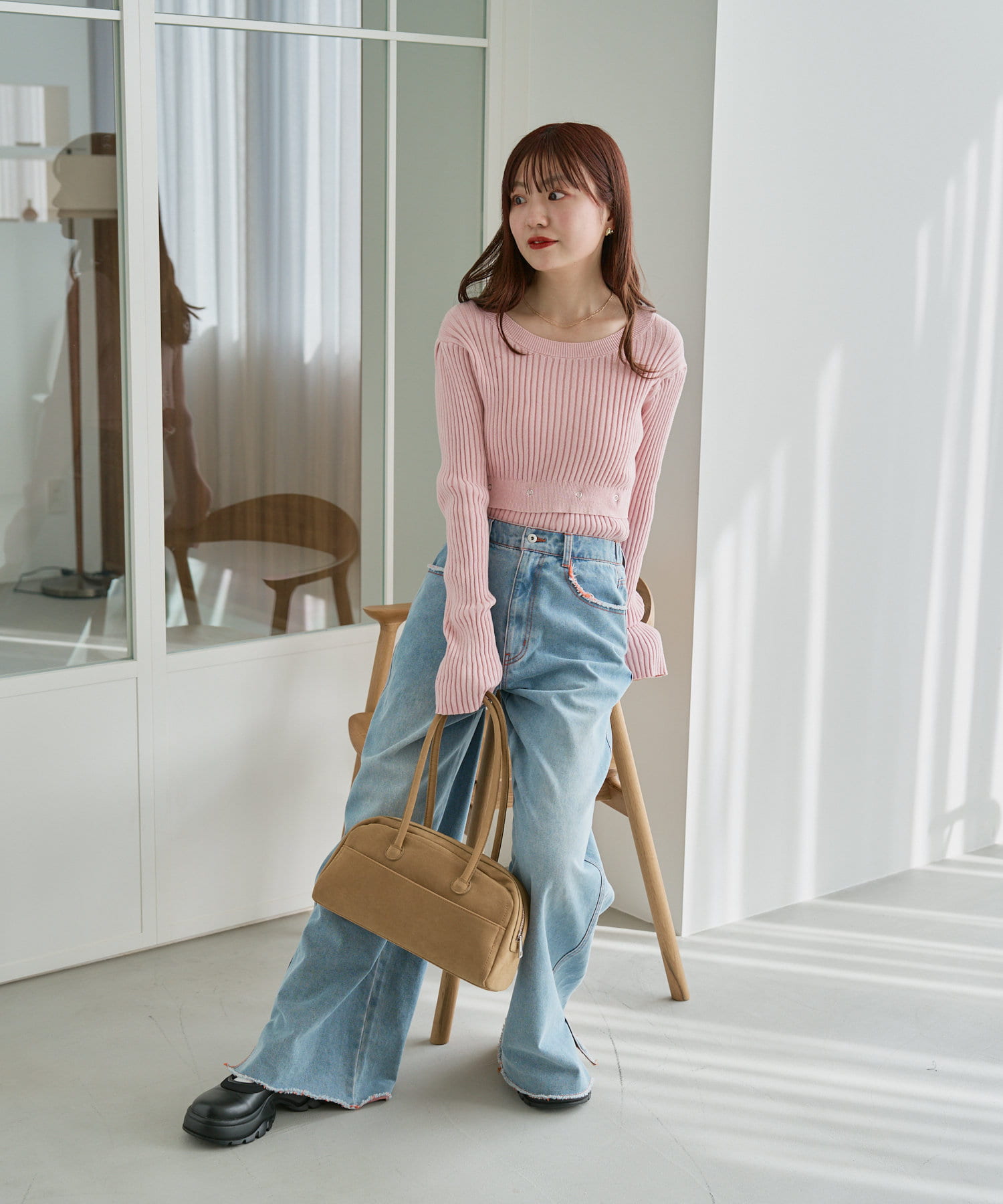 シンプルながらも遊び心のあるデザインが特徴のケミカルリブニット。