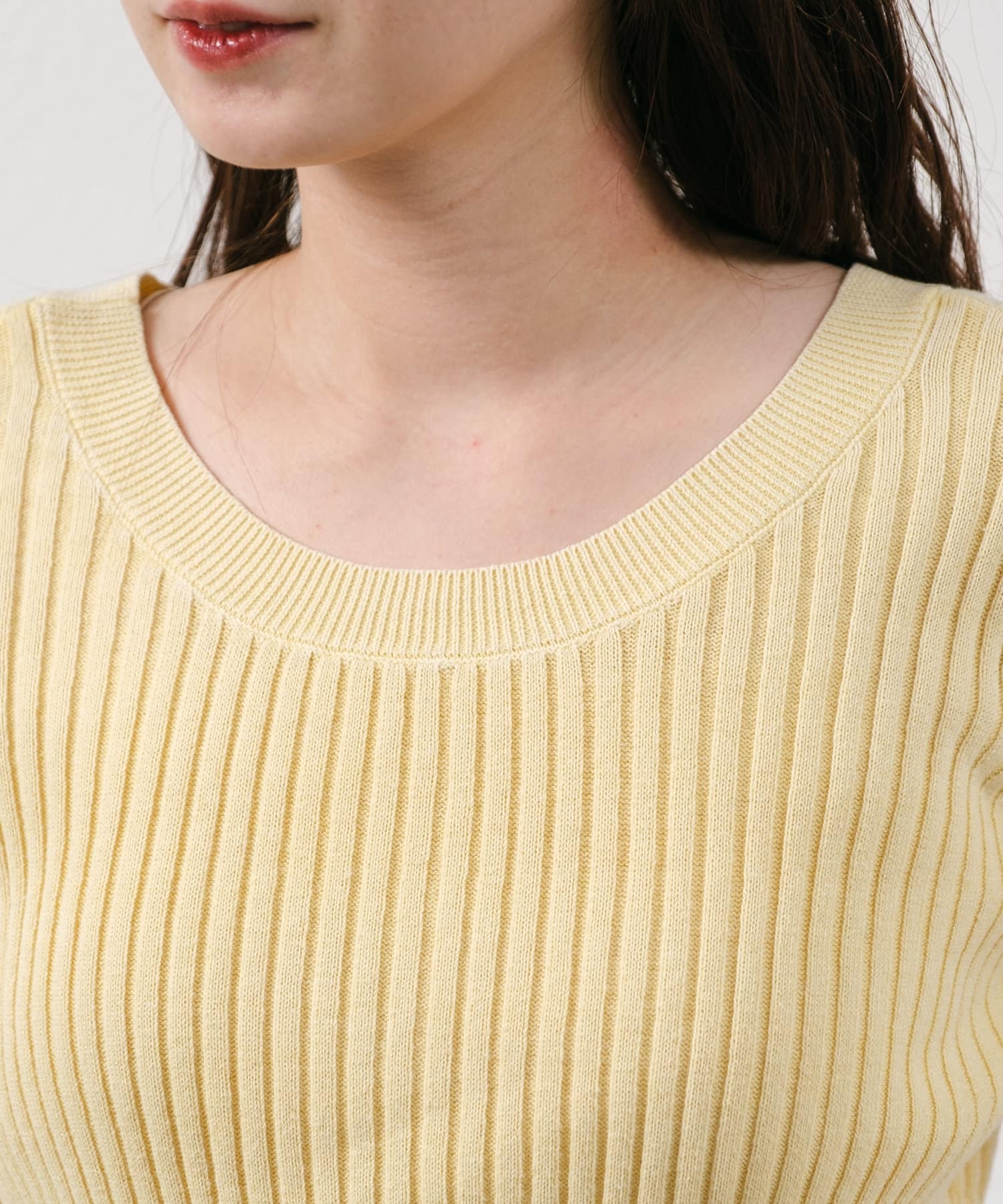 リブ編みで仕上げられているので、伸縮性があり体に程よくフィットしつつも窮屈さを感じさせません。