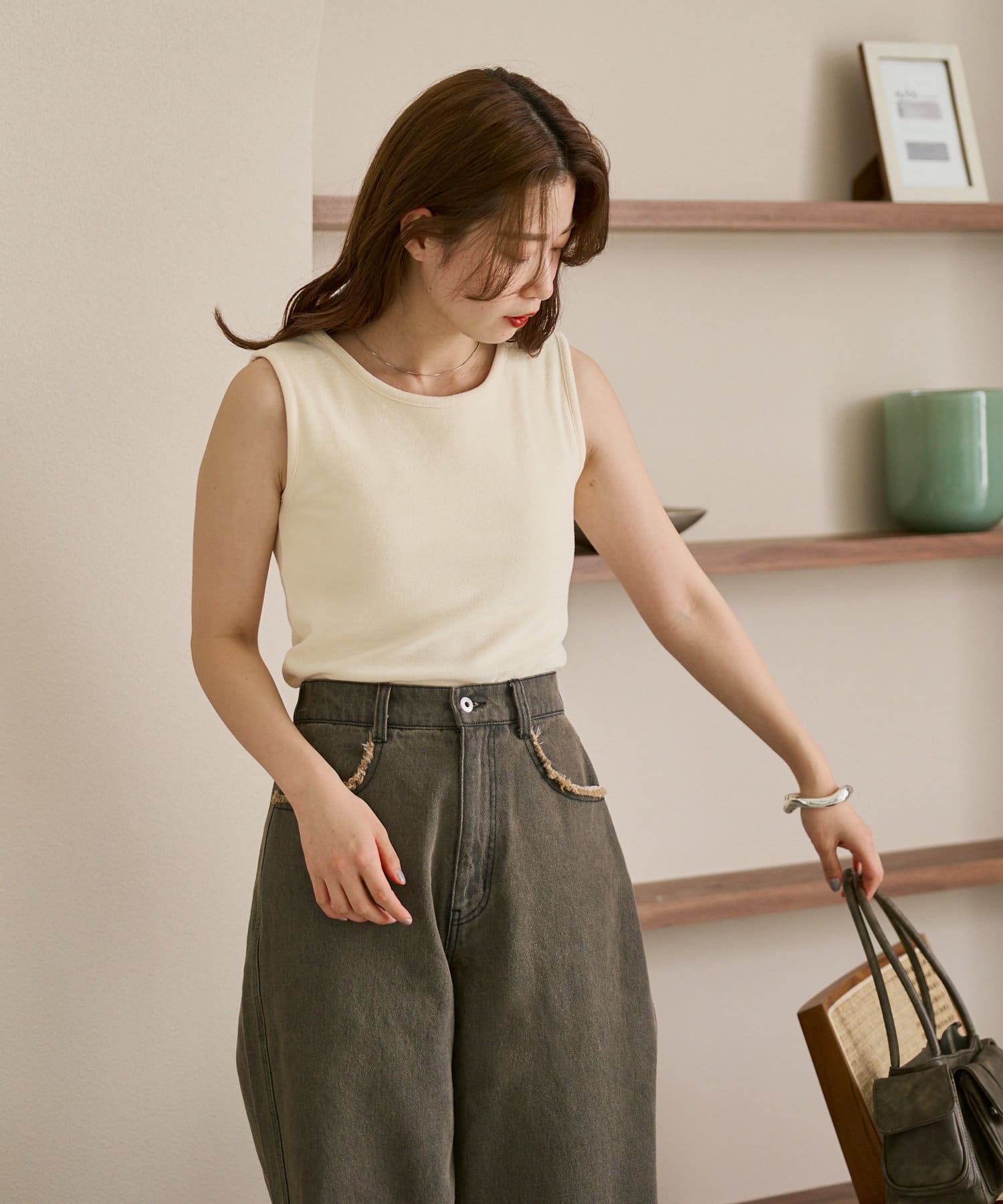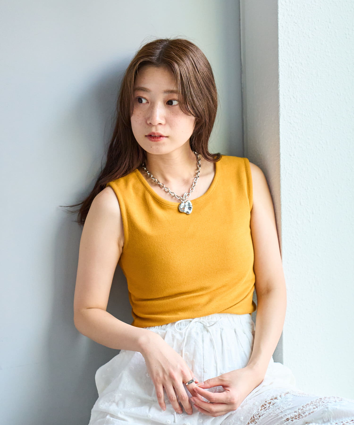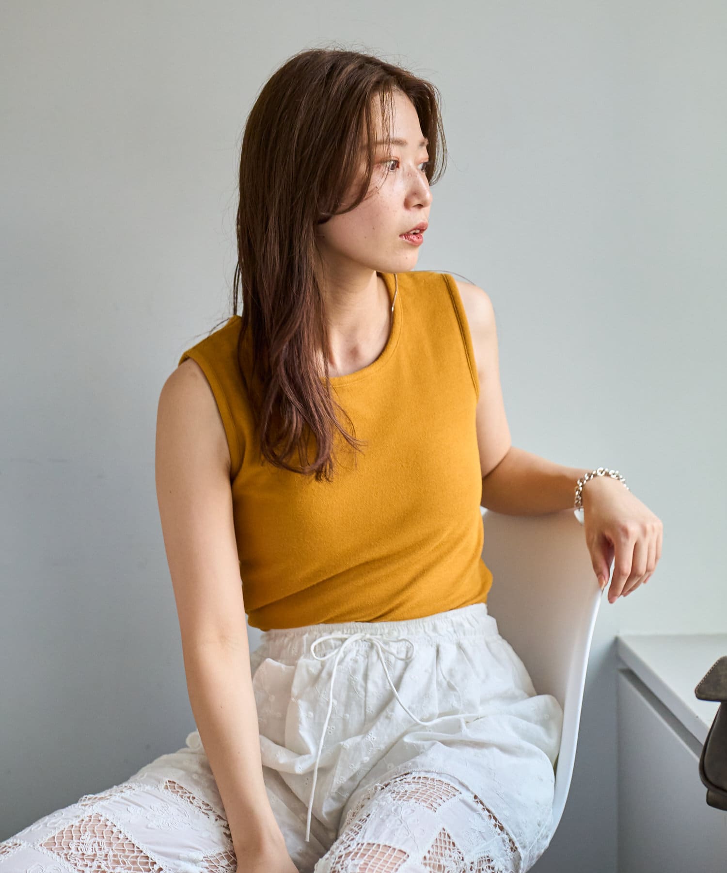 シンプルながらもカジュアルさと上品さを両立したタンク。