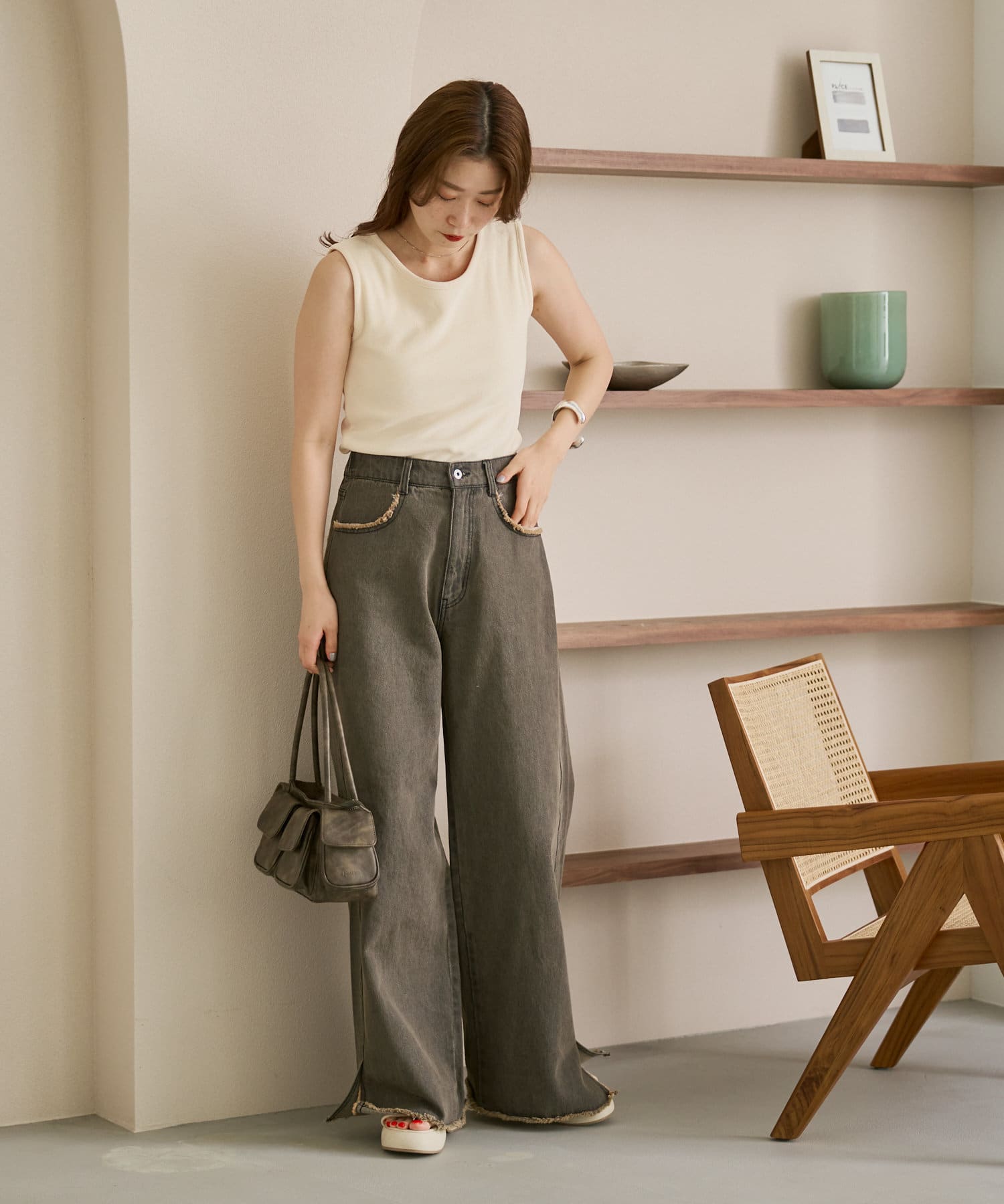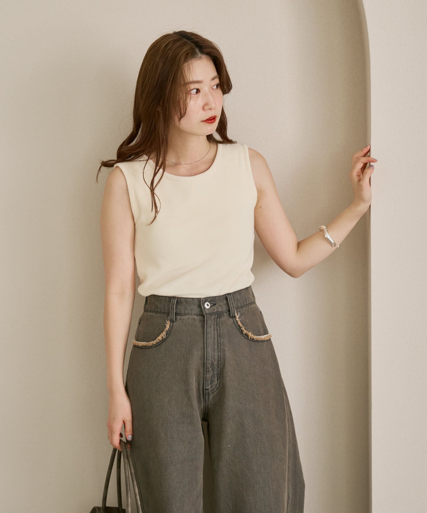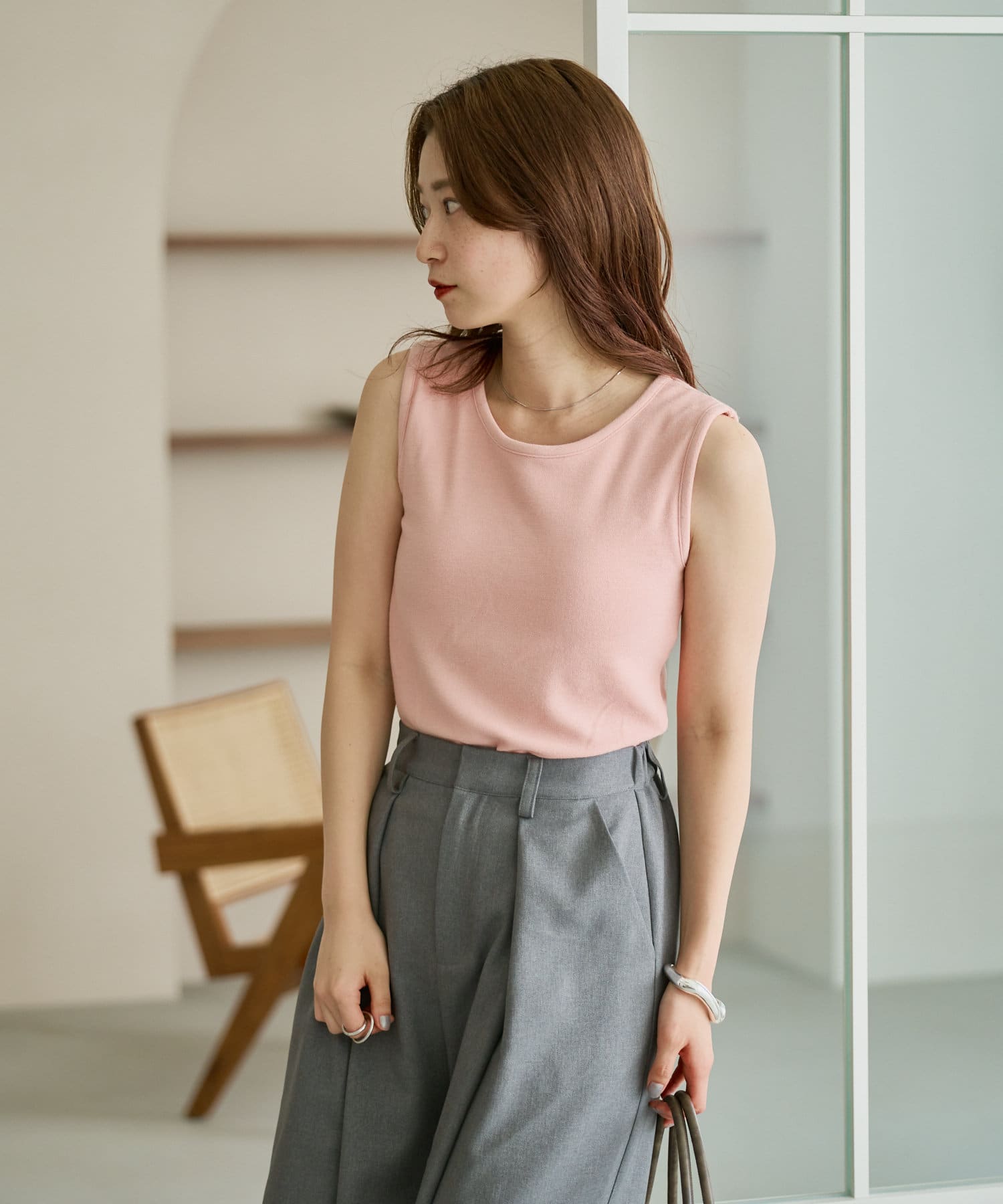 シンプルながらもカジュアルさと上品さを両立したタンク。