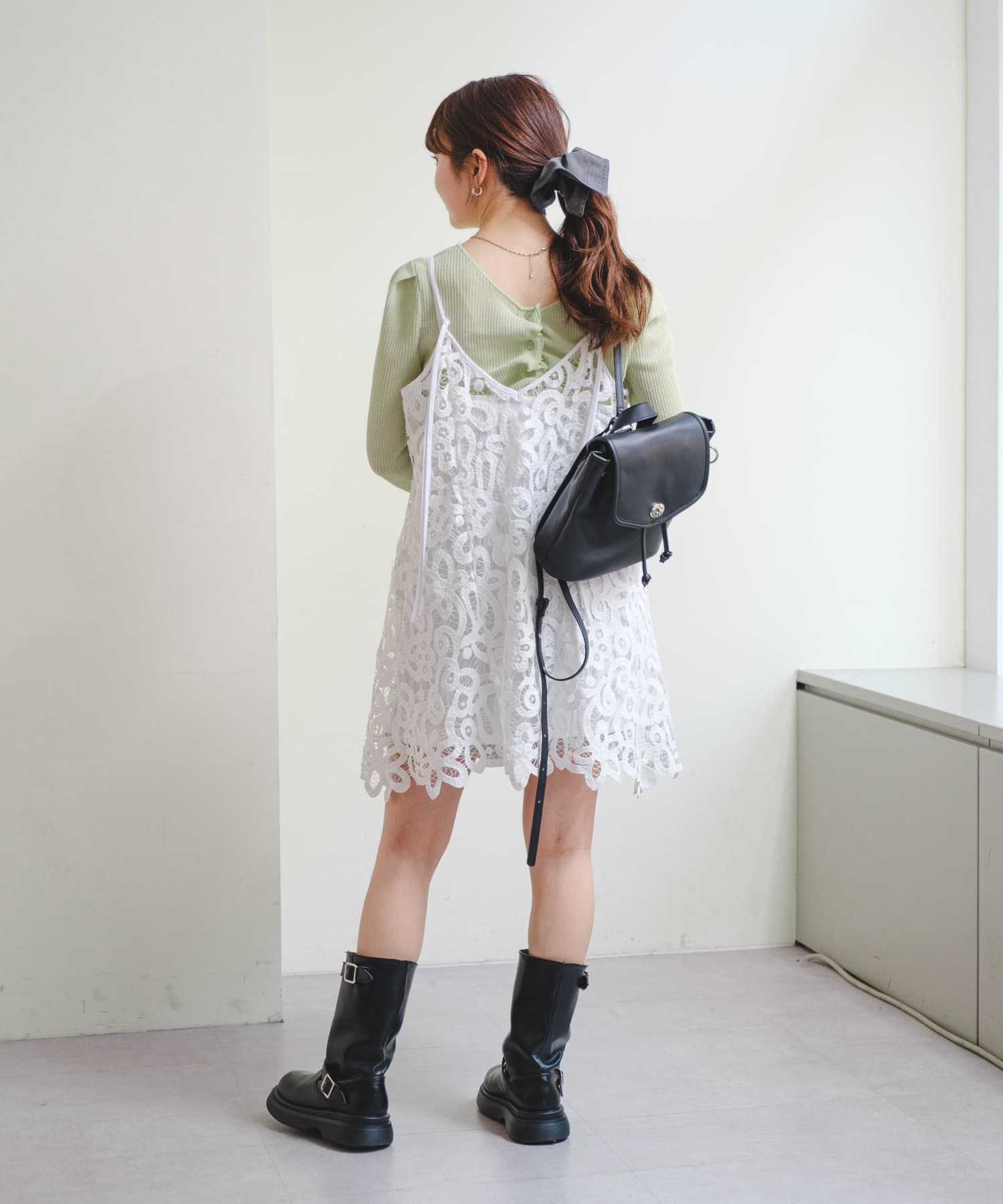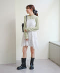 甘めテイストなので、ゴツめのアクセサリーを合わせてコーデのバランスとってます。