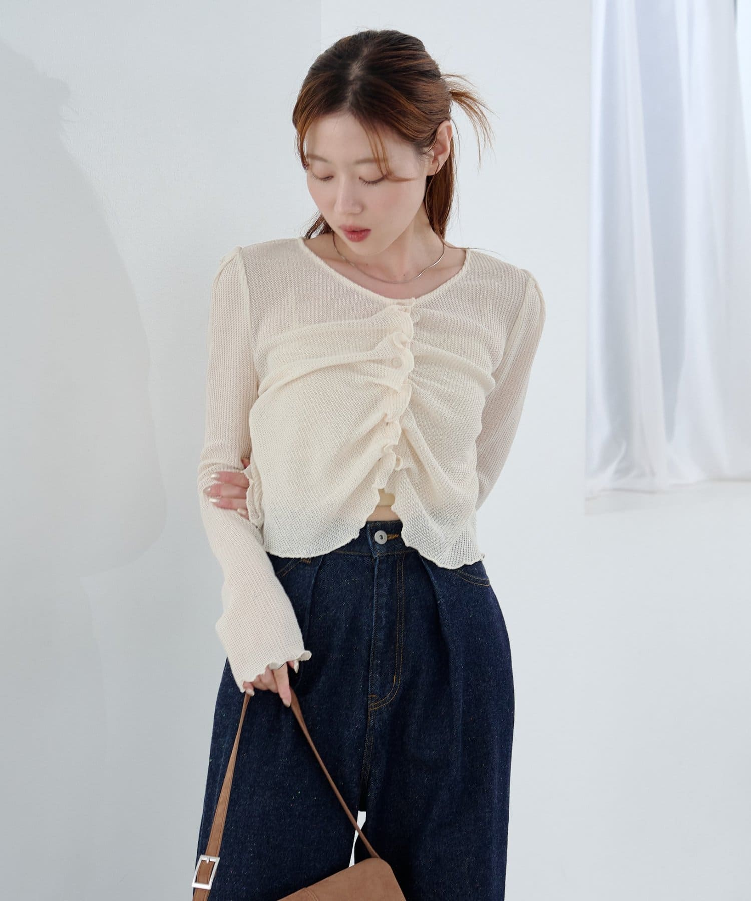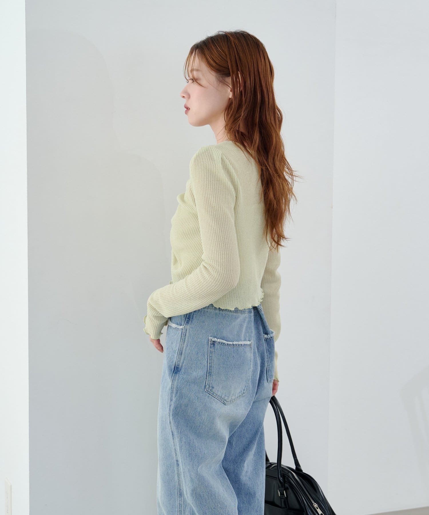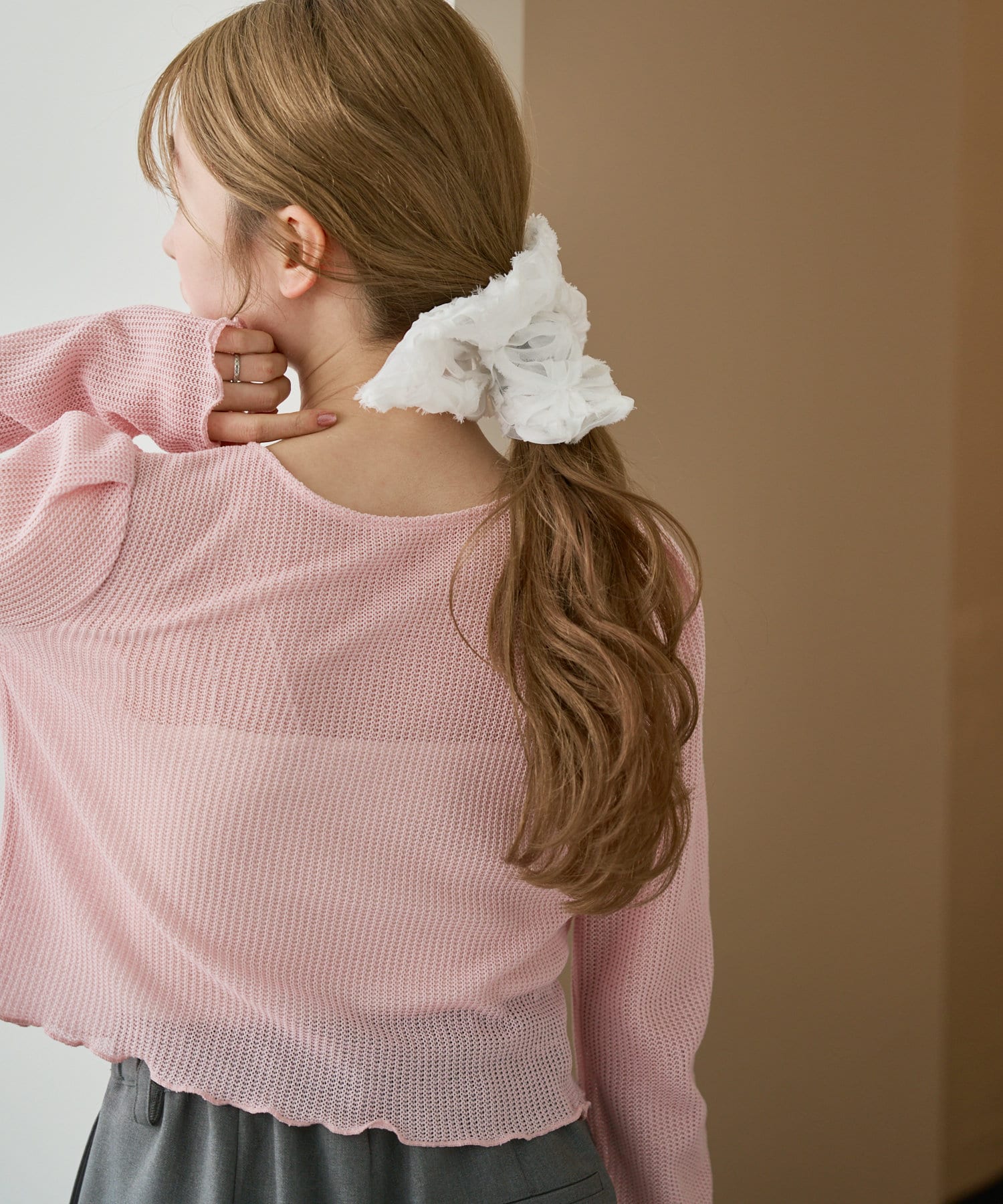 これは目が細かいので露出が少なくてチャレンジしやすそうと思ったのと、色が可愛すぎて!初夏にぴったりです。生地も涼しさのわりにしっかりしていますし、デザインも凝っていて安っぽくないのでお気に入りです。たくさん着たいと思います。