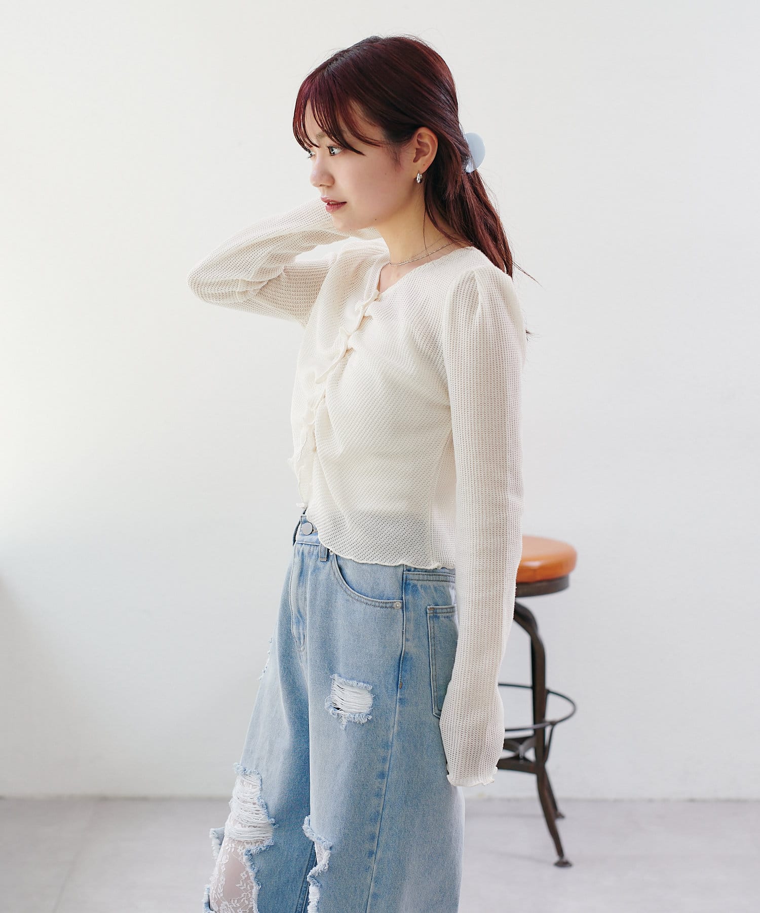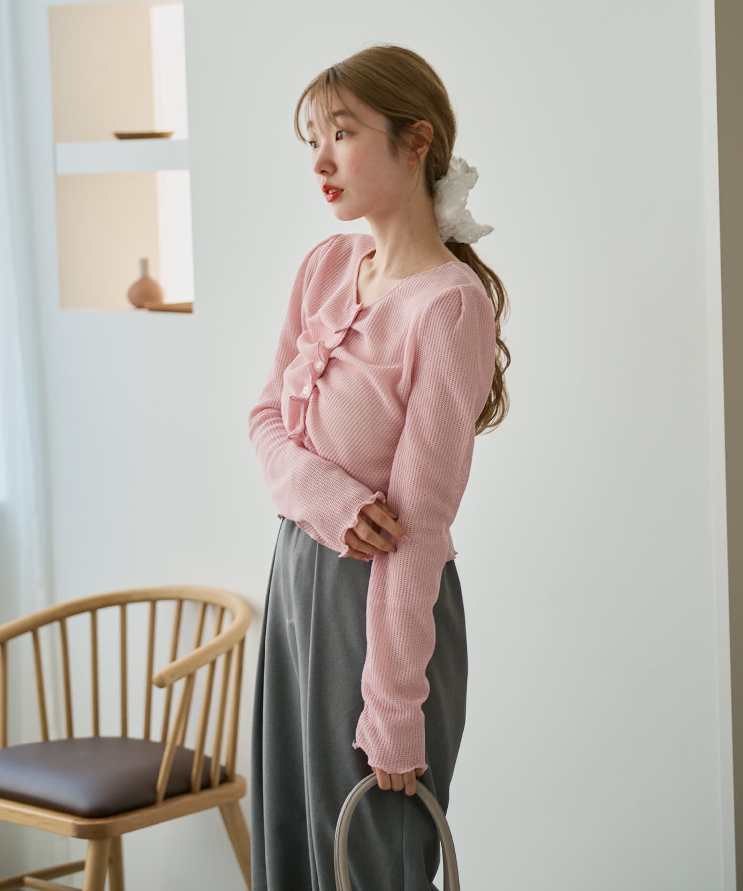 0人が参考になったと回答しています。フリルがかわいい! ぴ 2025.05.05 ピンク F 身長160cm 体重50kg~54kg 20歳~24歳 購入場所:店舗一枚でも羽織でも着ることができるのがうれしいです!ピンクの色味もとってもかわいい。