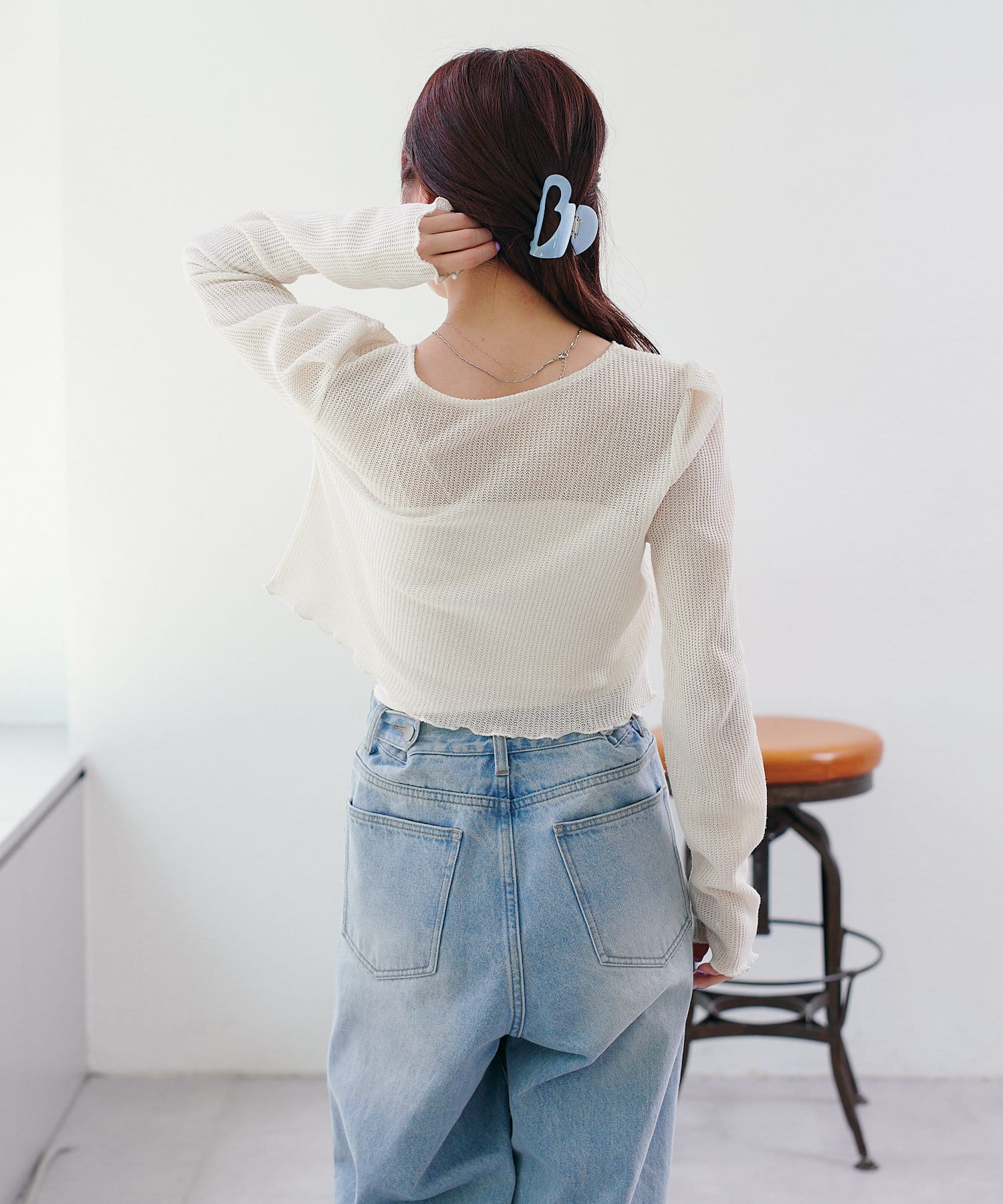 0人が参考になったと回答しています。透け感バッチリ ^^ 2025.05.15 アイボリー F 身長165cm 体重50kg~54kg 15歳~19歳 購入場所:店舗ボタンとめて着るのもカーディガン風に着るのもどちらも可愛いです👍🏻🩷腕を上げたらお腹は丸見えです❕