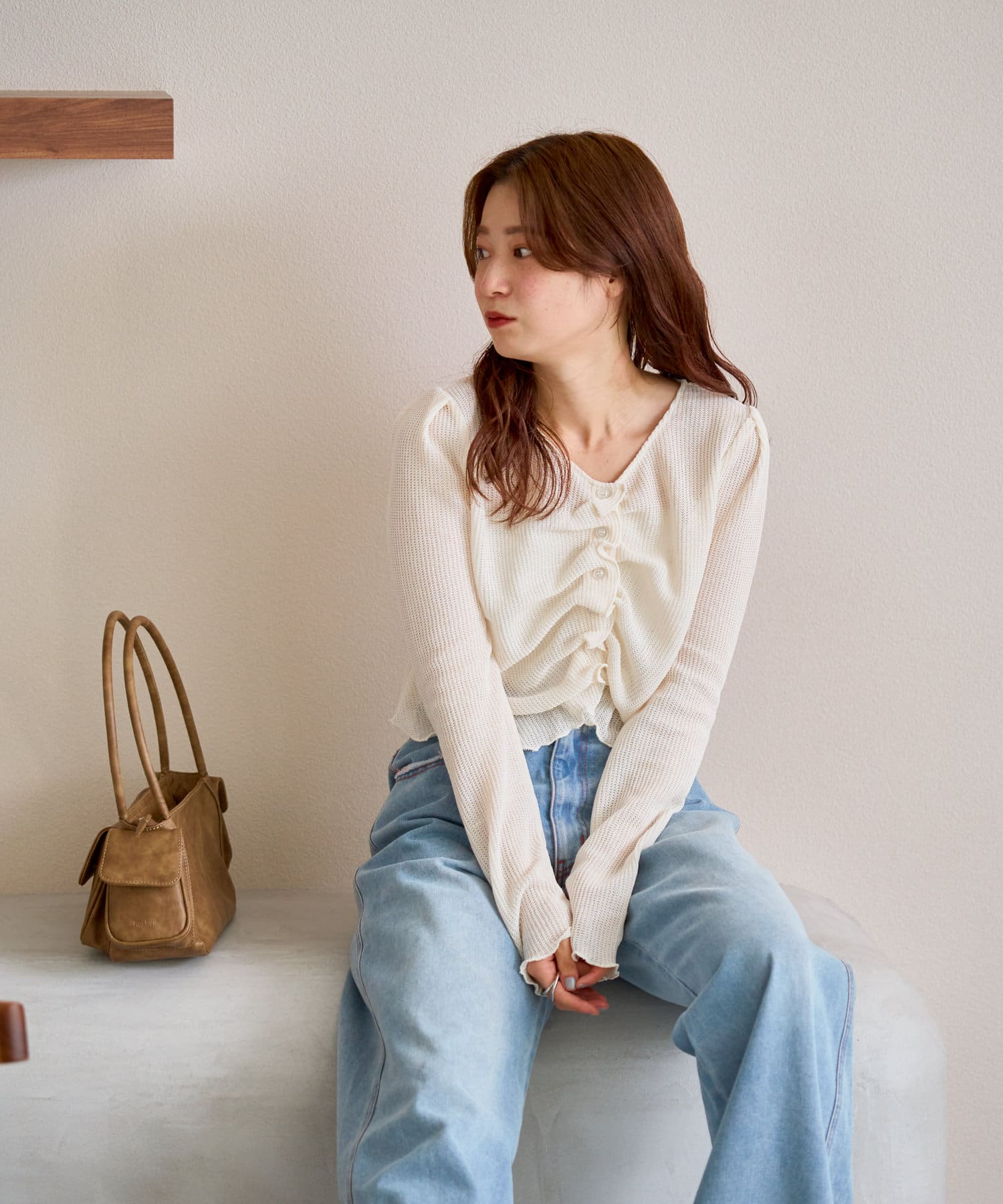 0人が参考になったと回答しています。フロントシャーリングTee あや 2025.04.09 アイボリー F 身長160cm 体重50kg~54kg 20歳~24歳 購入場所:パルクローゼット初夏まで着れる薄さ!