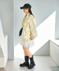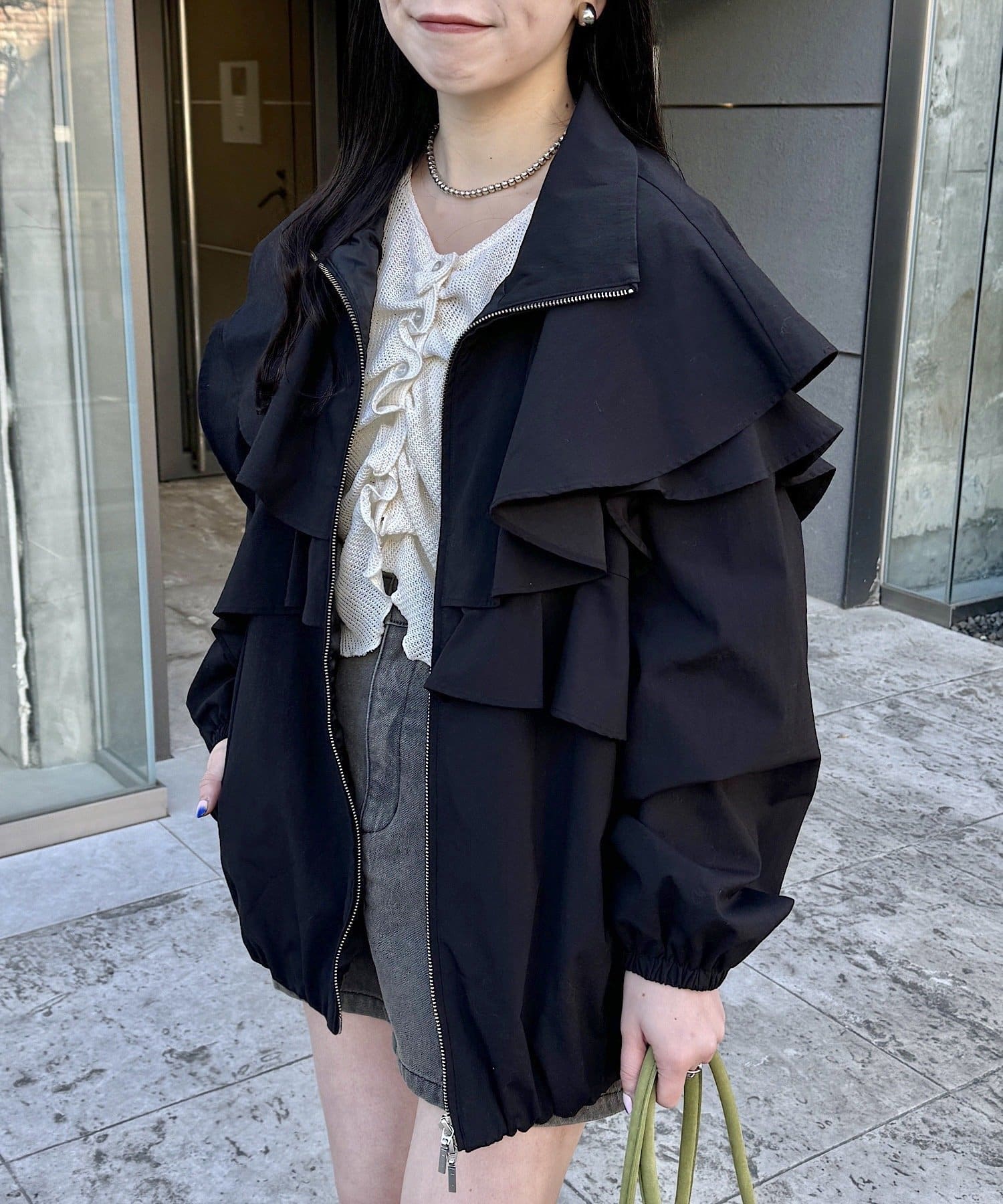 ボリューム感たっぷりのフリルが女性らしさを引き立てるブルゾン。