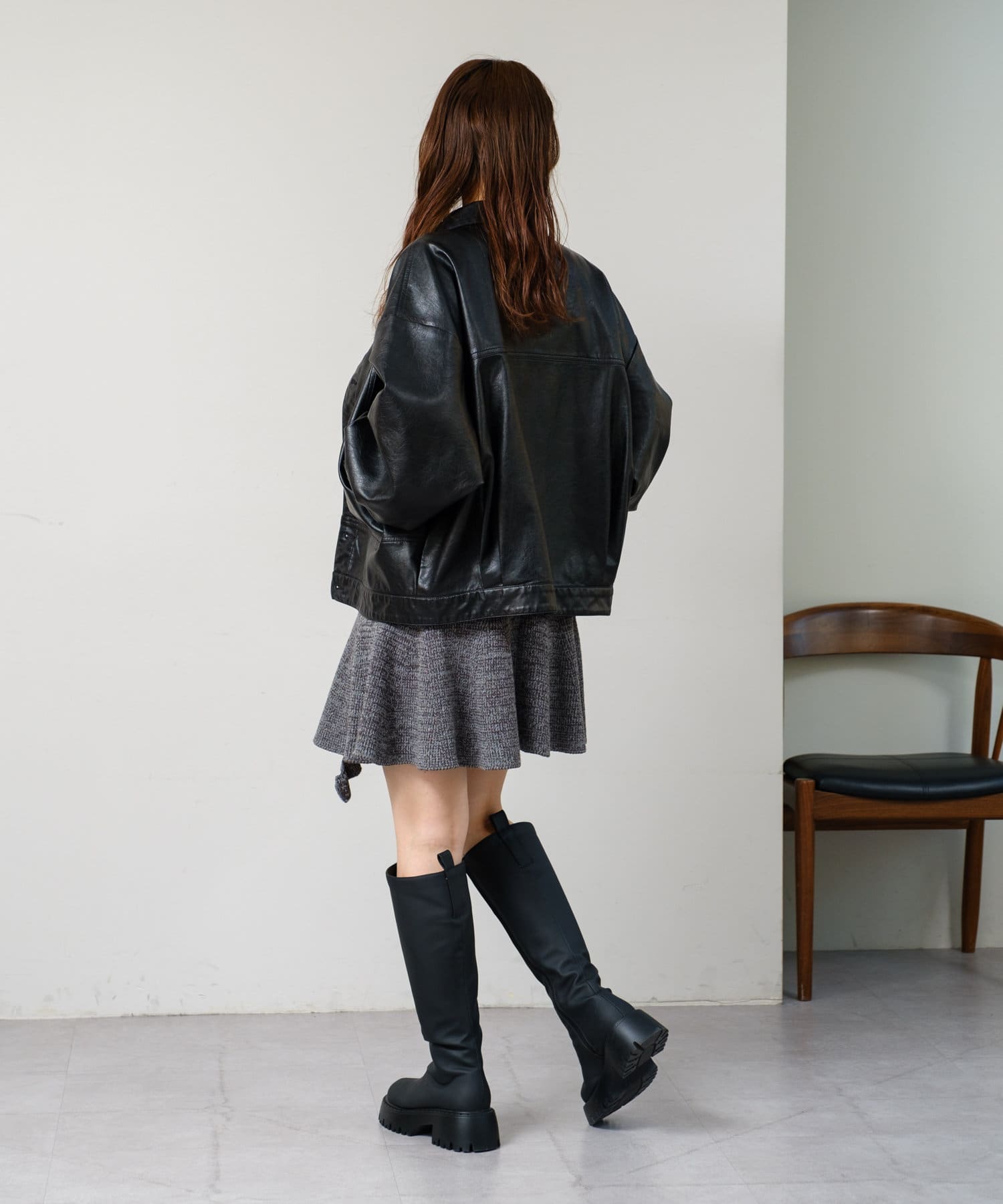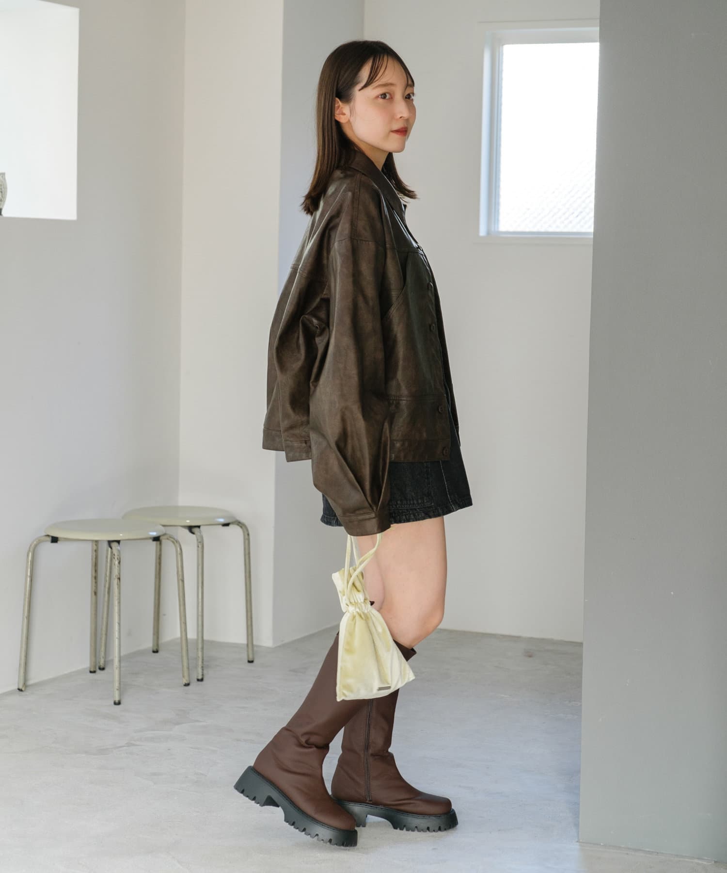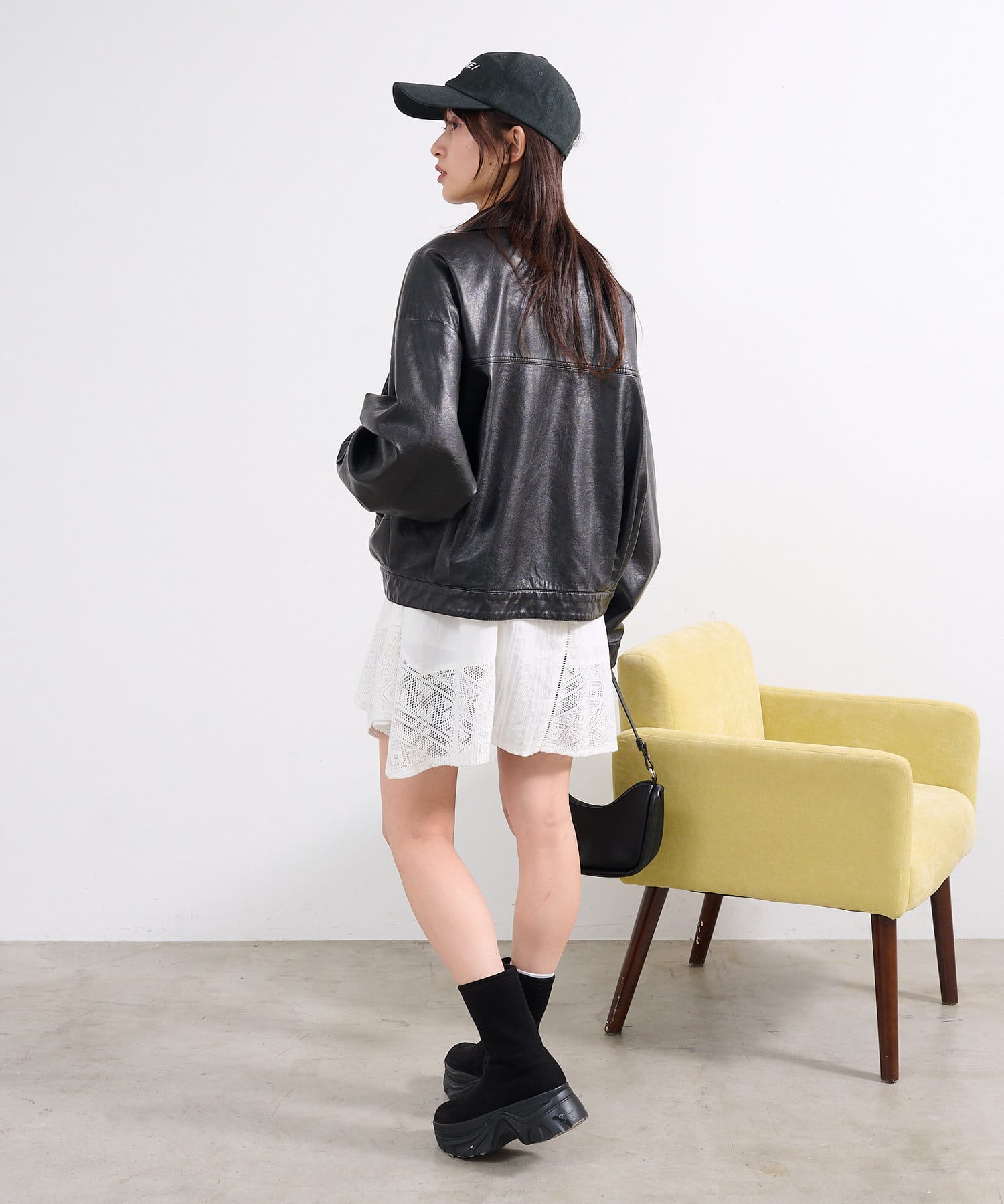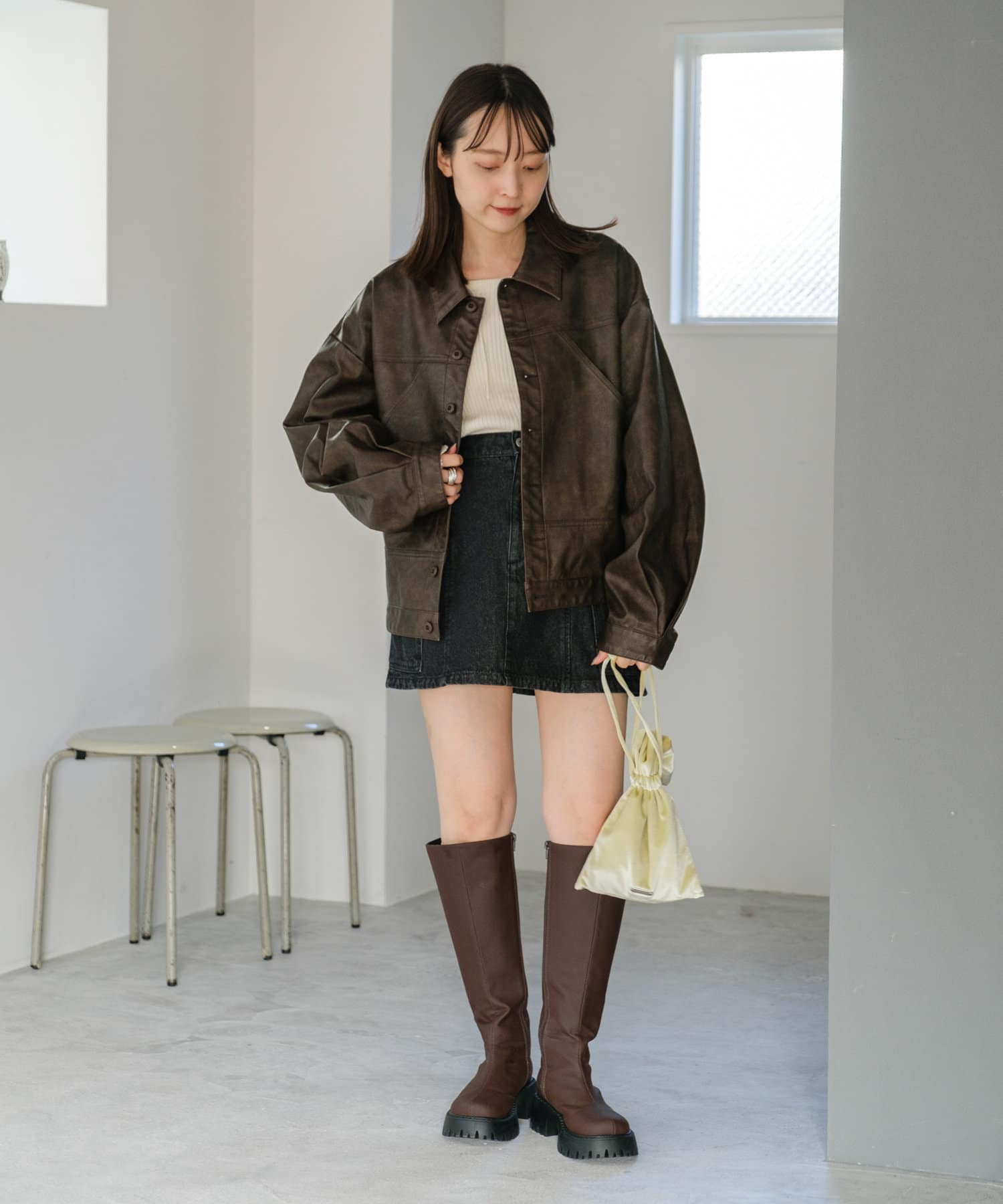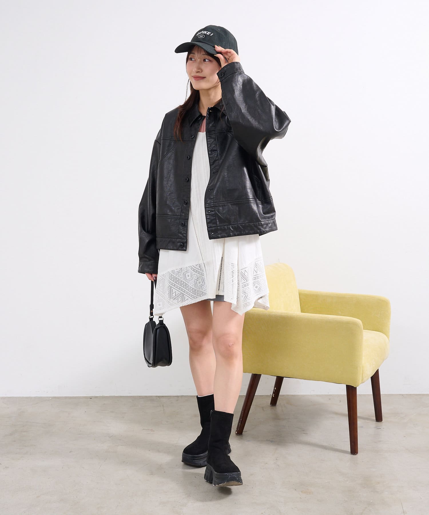 フェミニンなワンピースやフレアスカートと合わせると、レザーアイテムに柔らかさを加えたバランスの良いコーディネートに仕上がります。