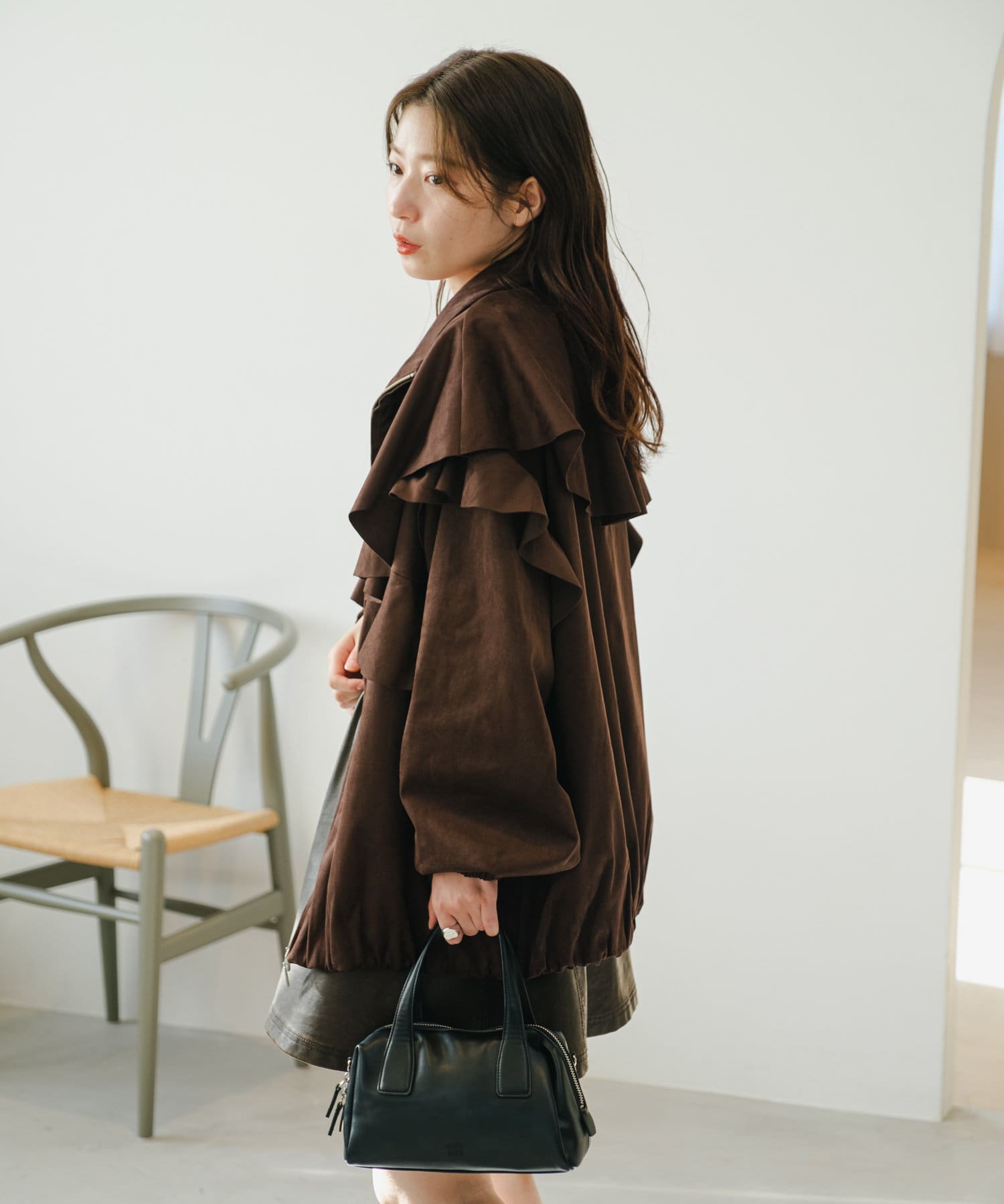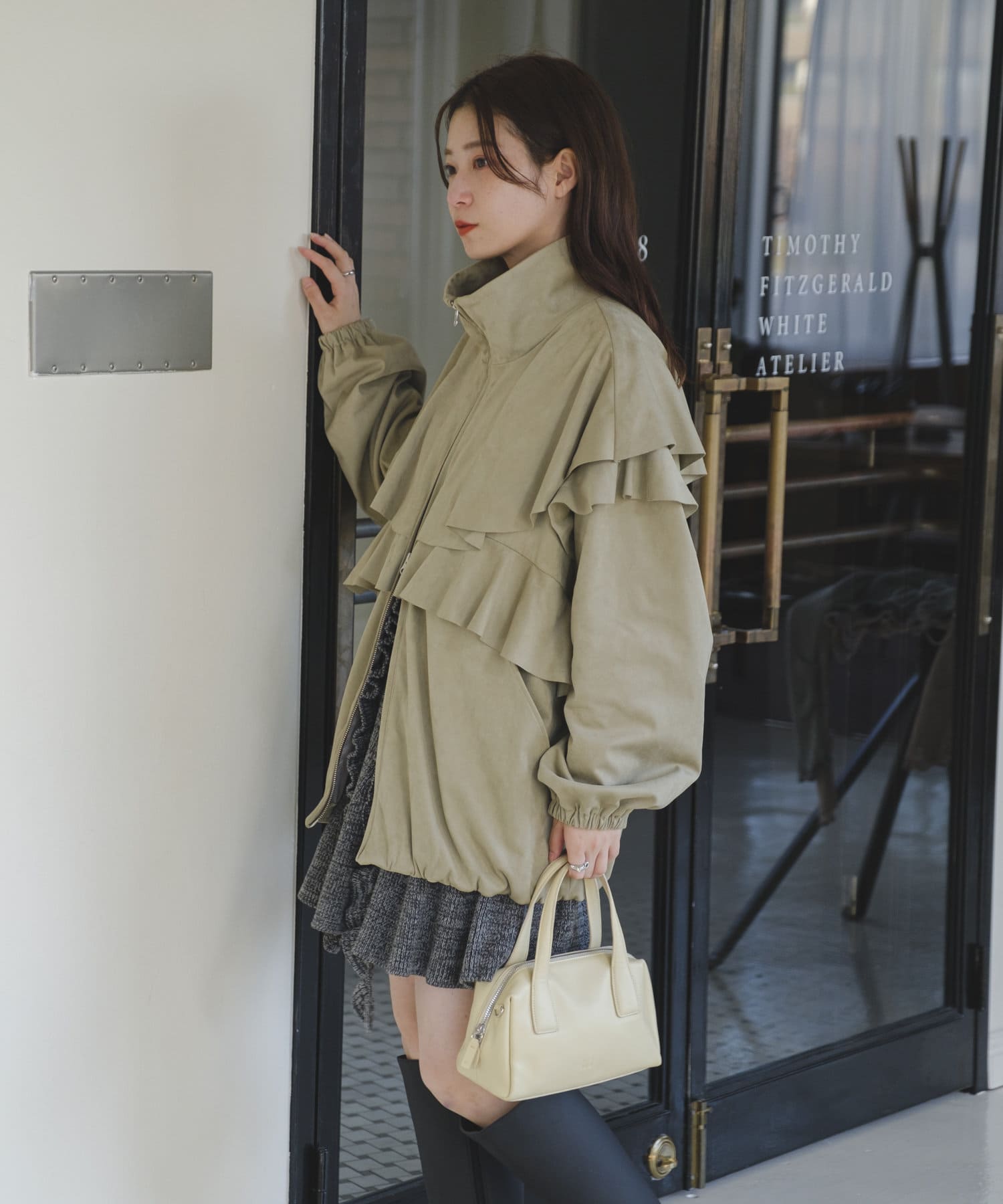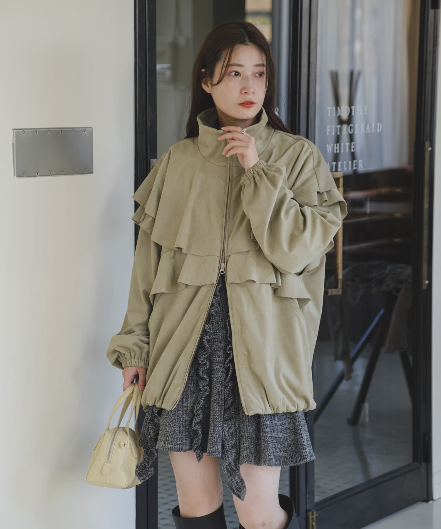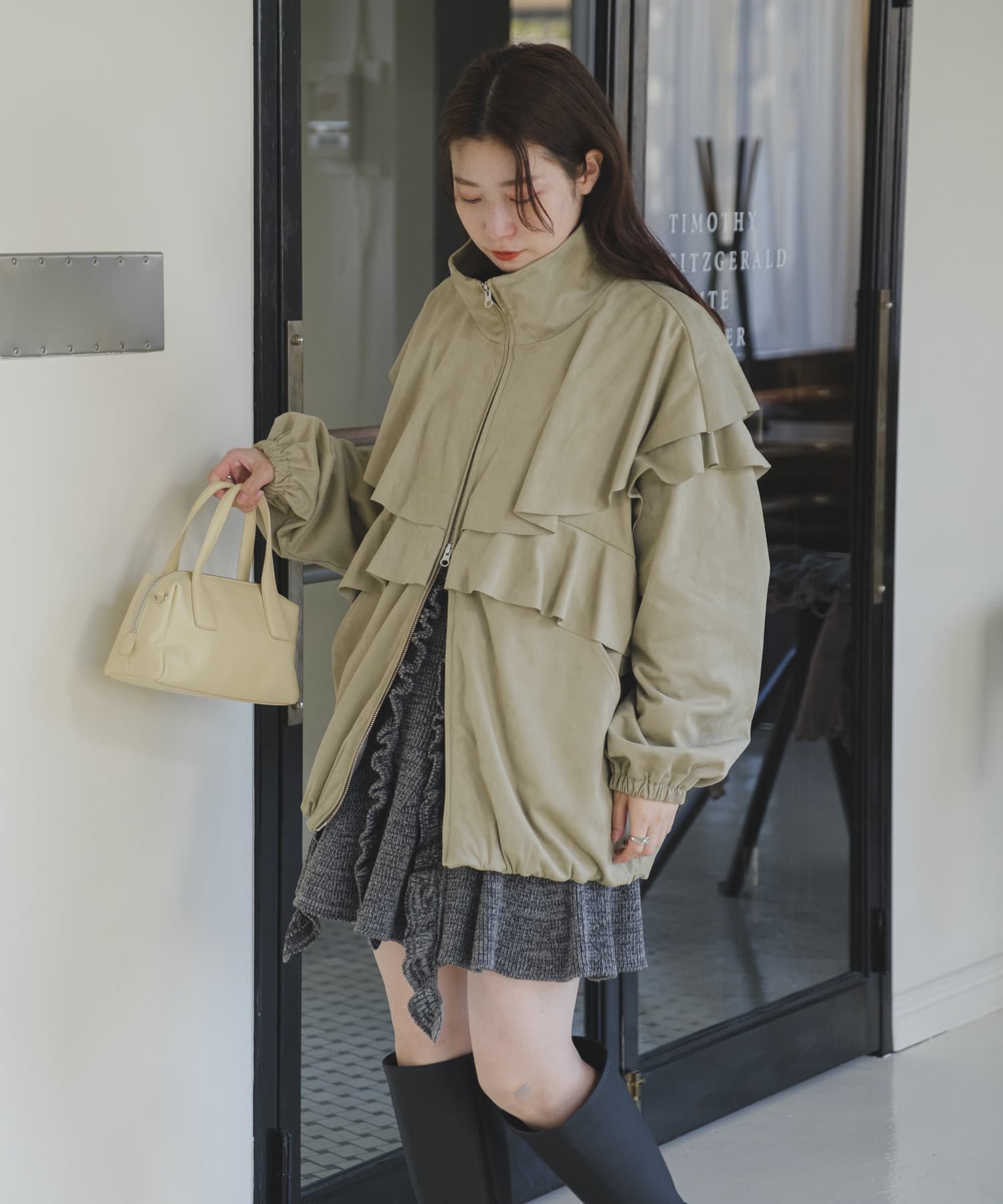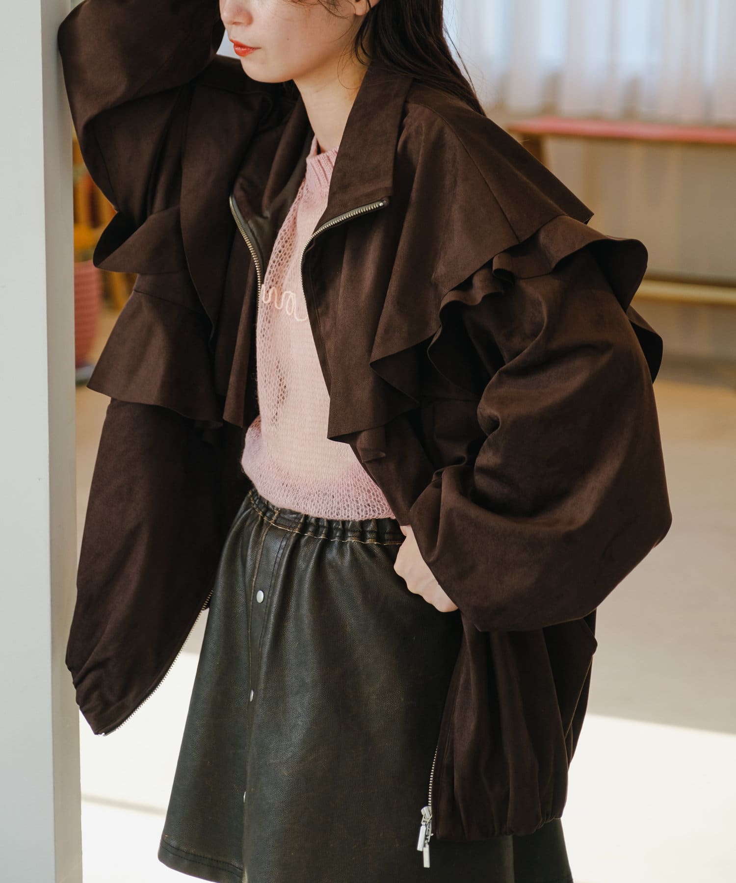エレガントさとトレンド感を兼ね揃えたスウェードフリルブルゾン