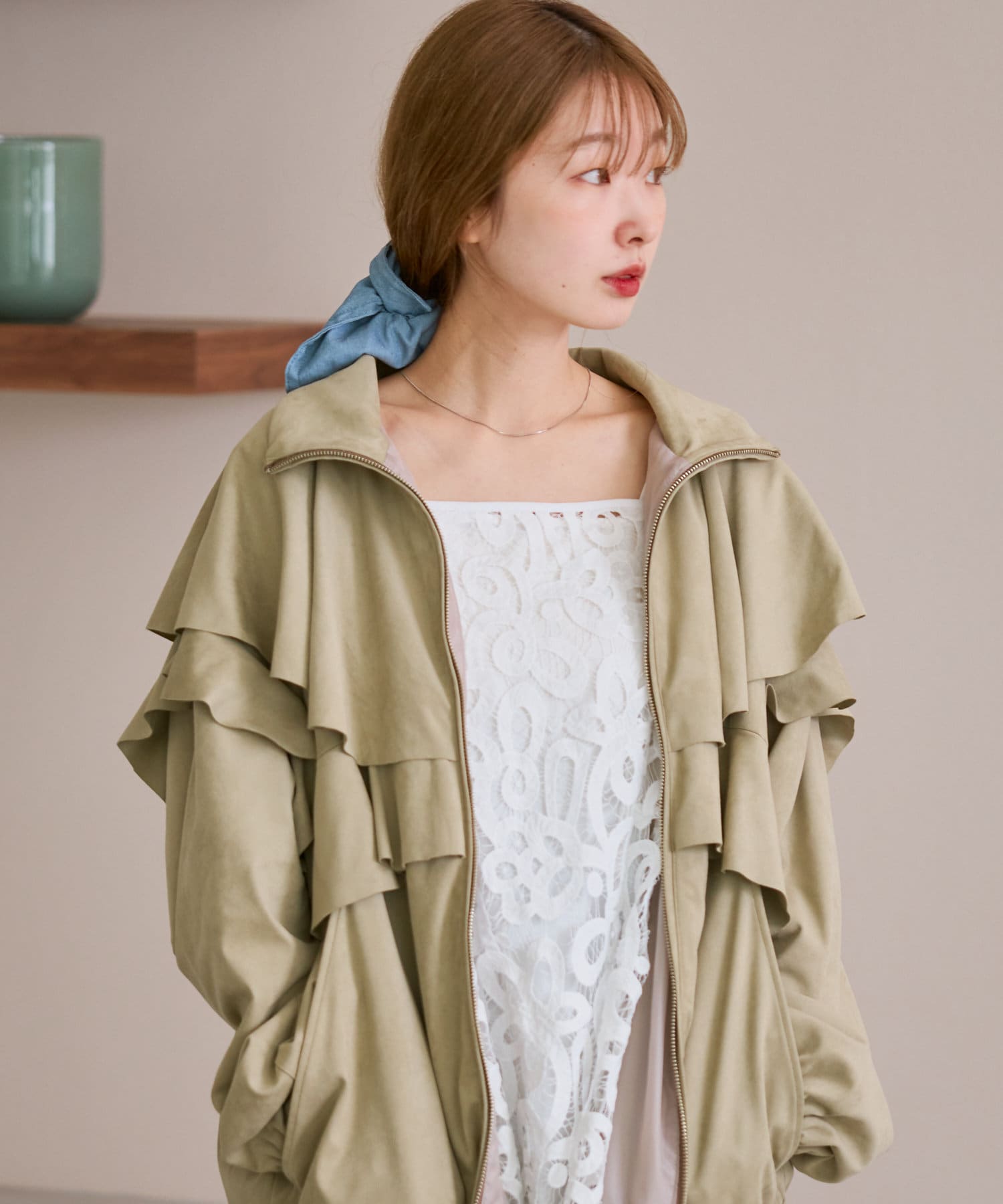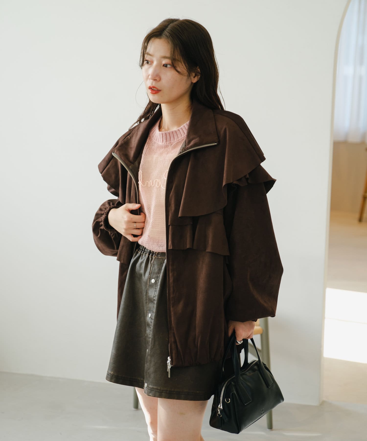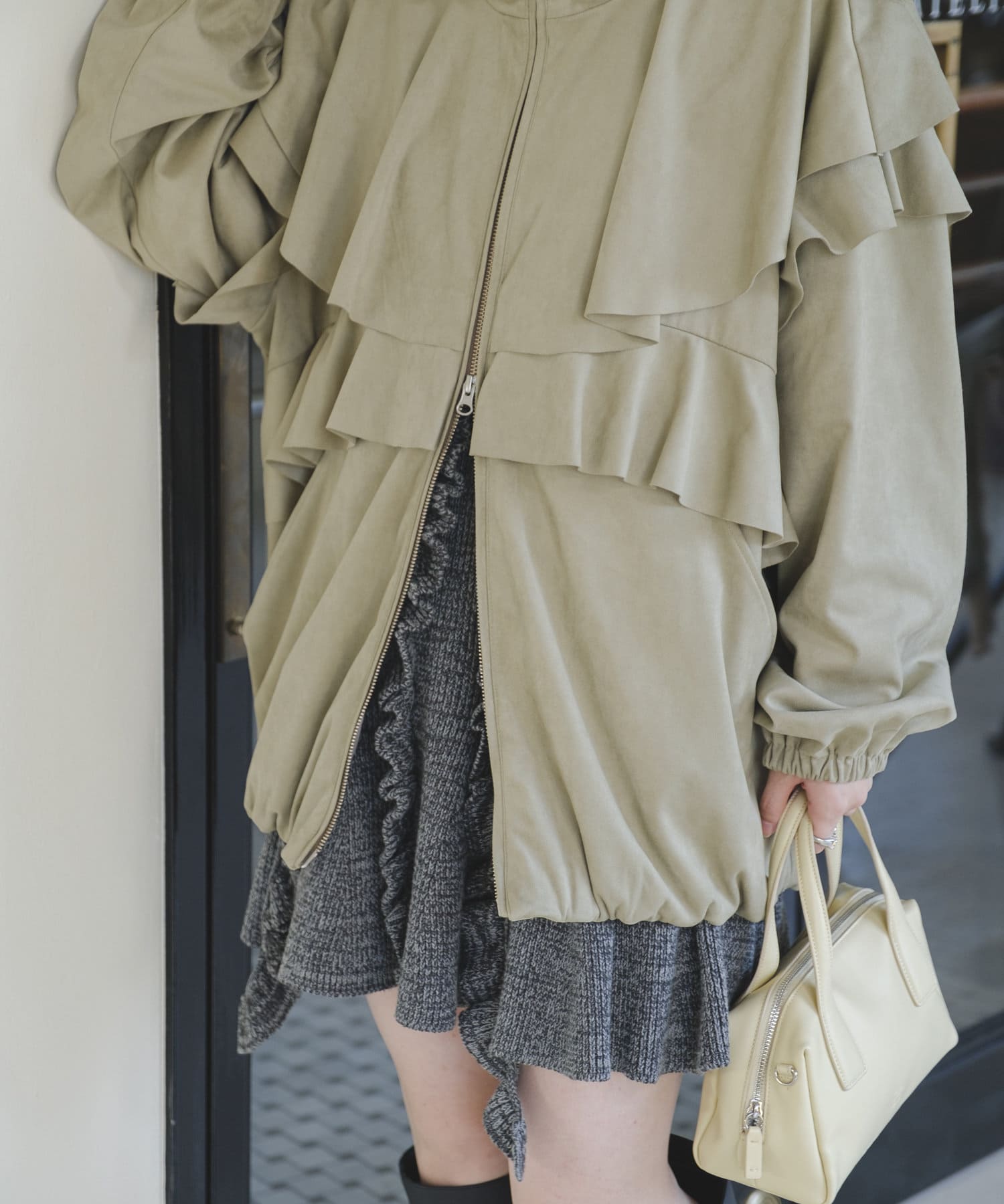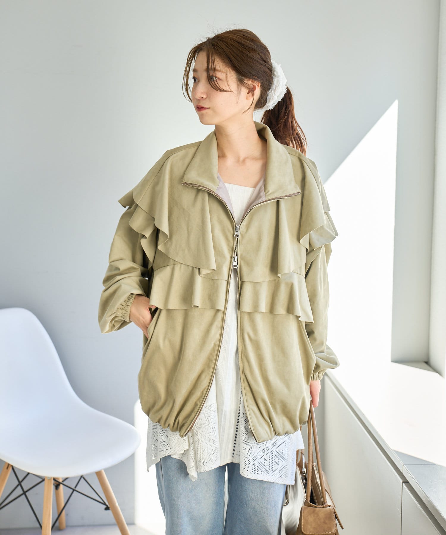 エレガントさとトレンド感を兼ね揃えたスウェードフリルブルゾン