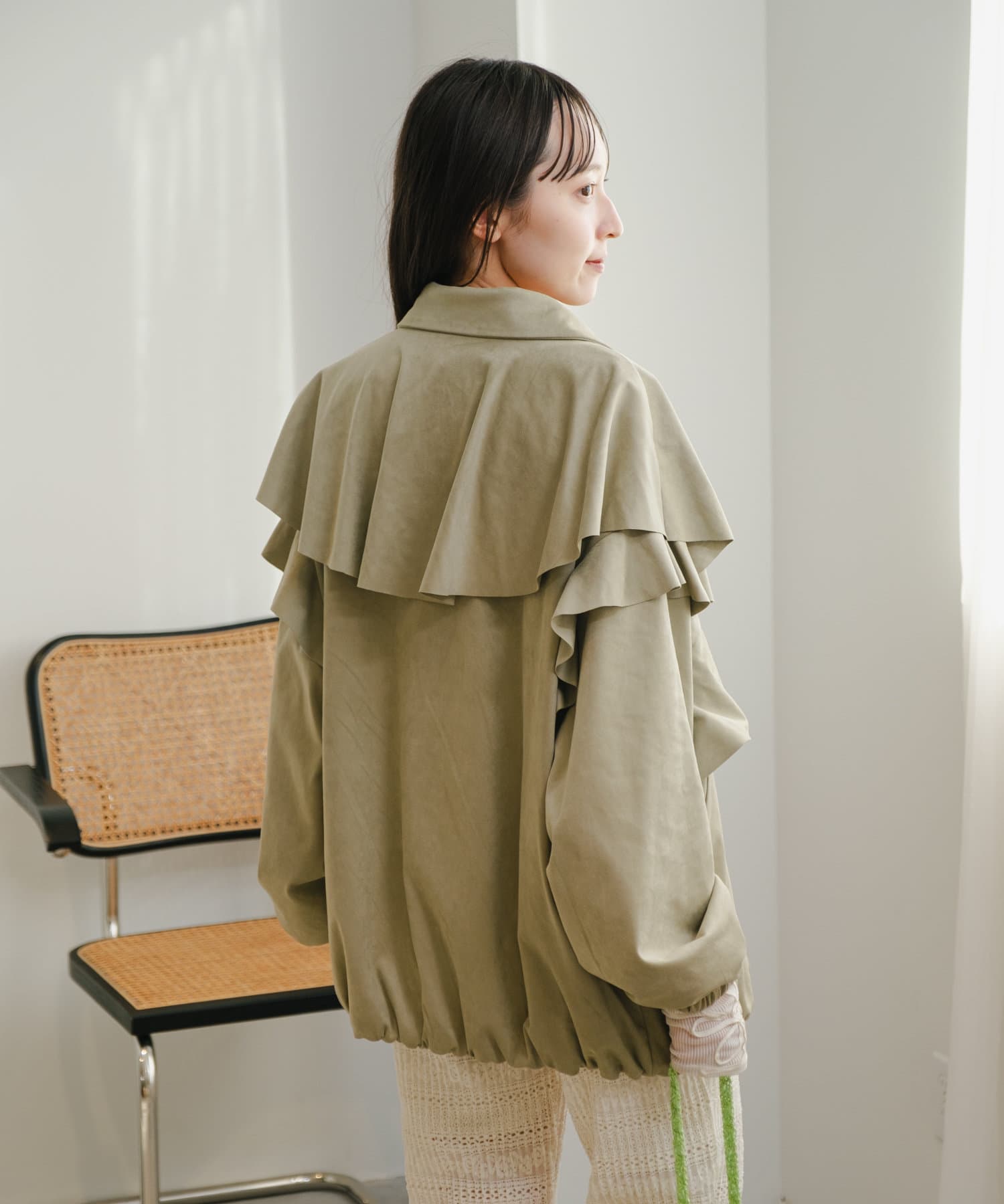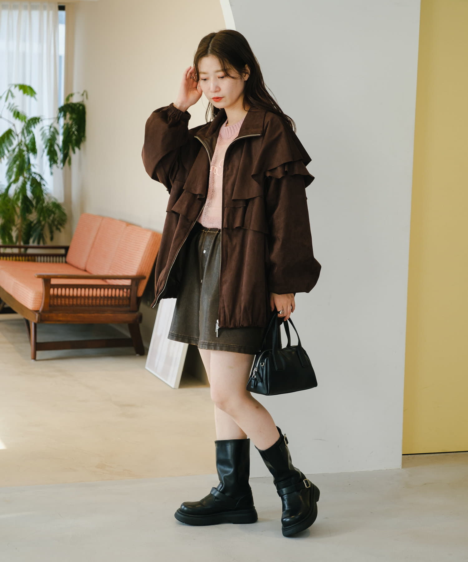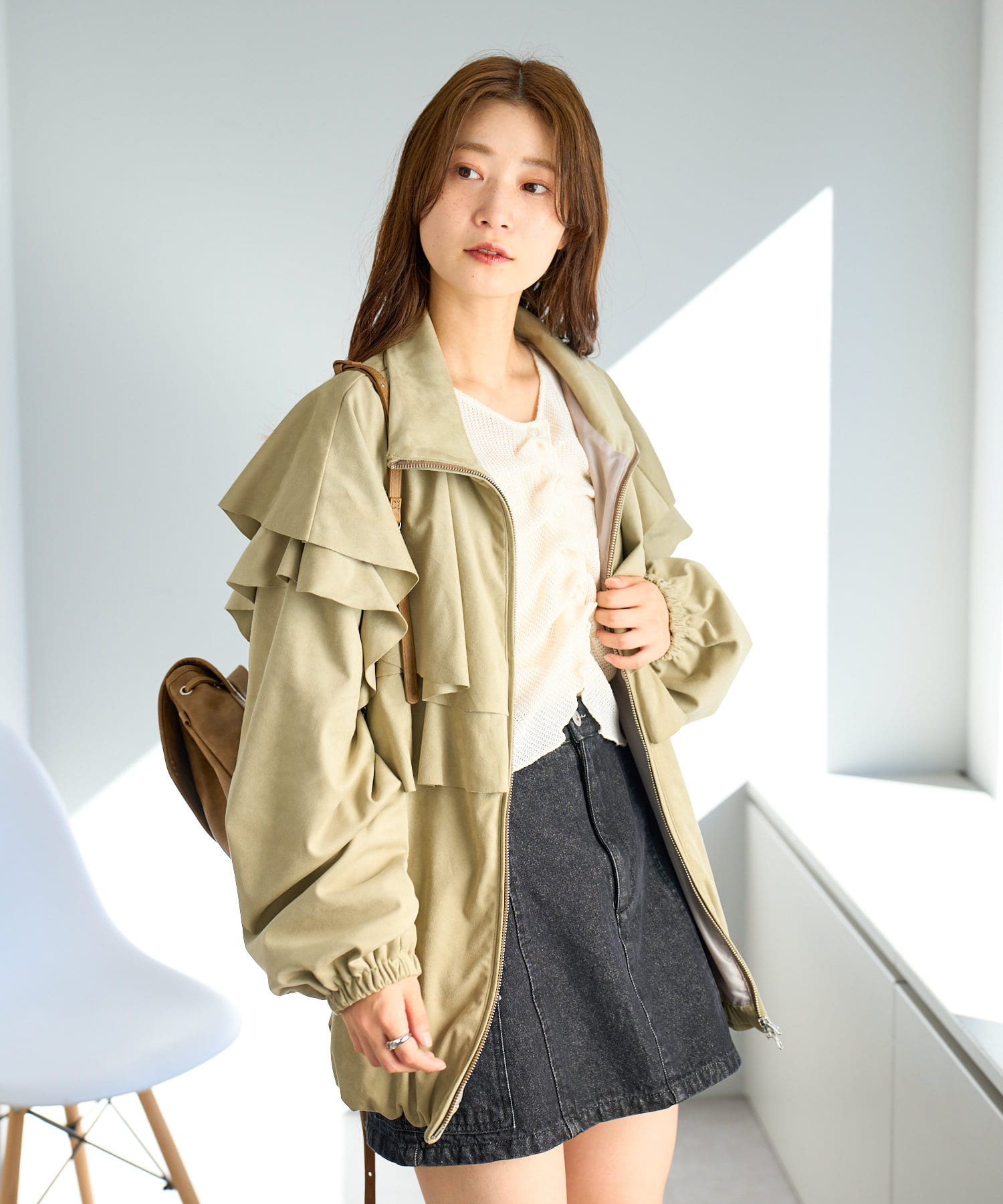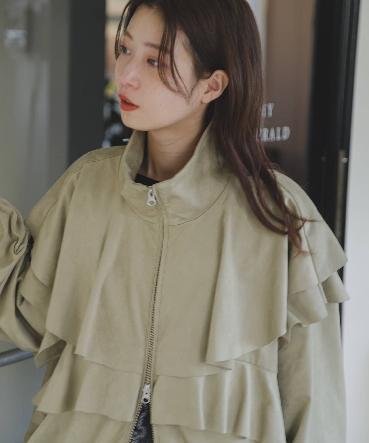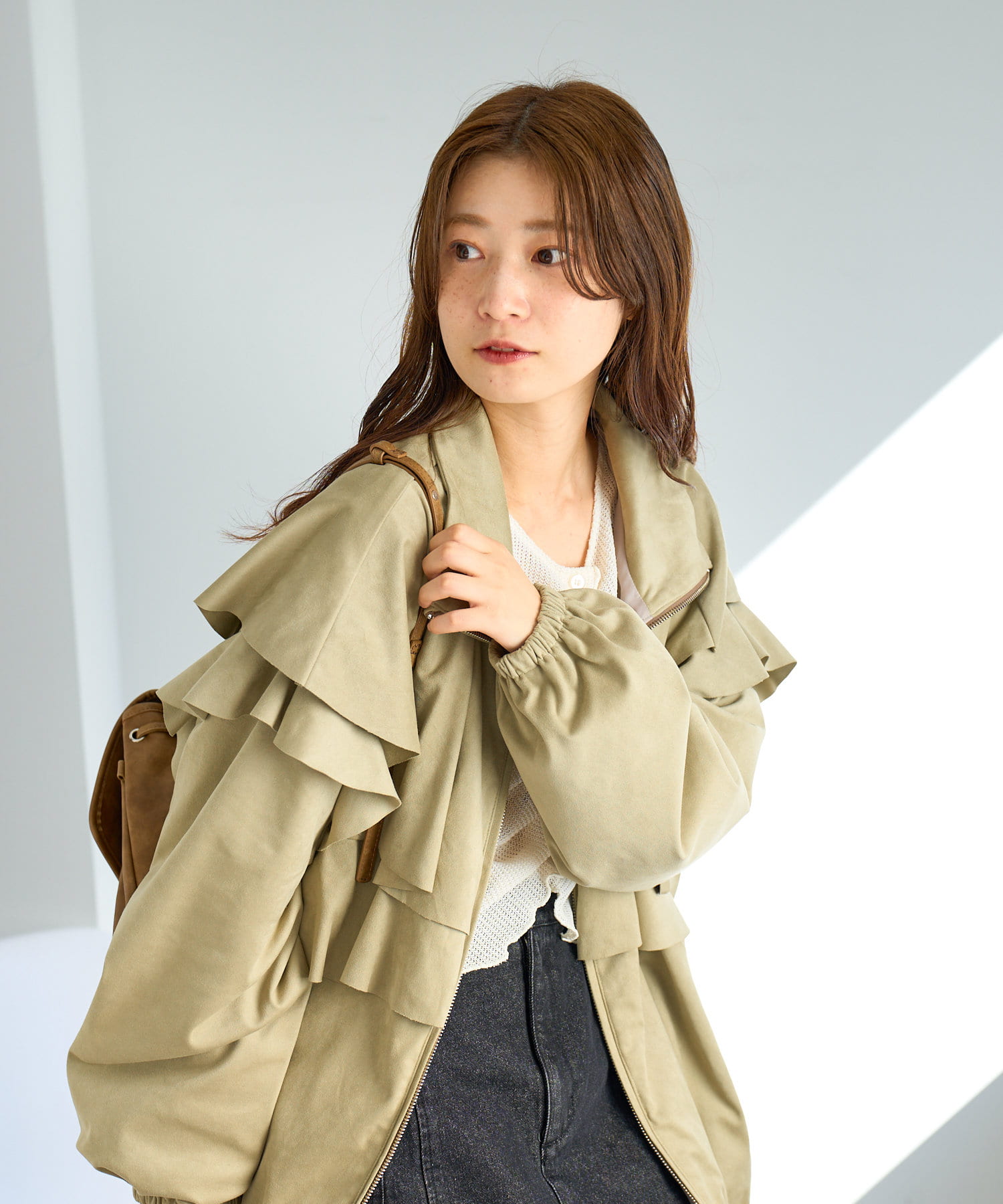 エレガントさとトレンド感を兼ね揃えたスウェードフリルブルゾン