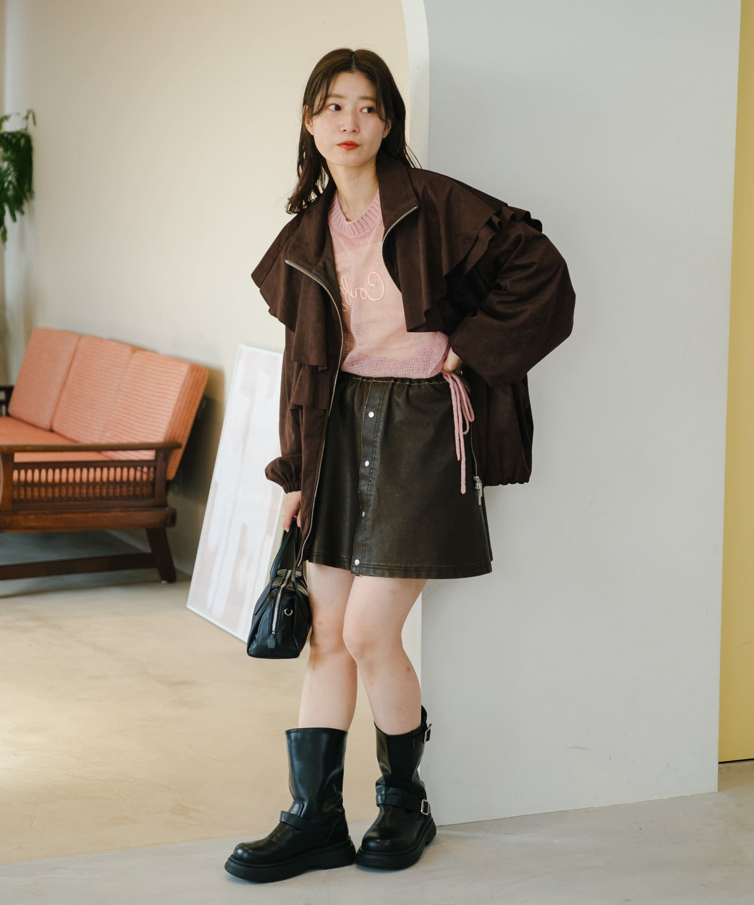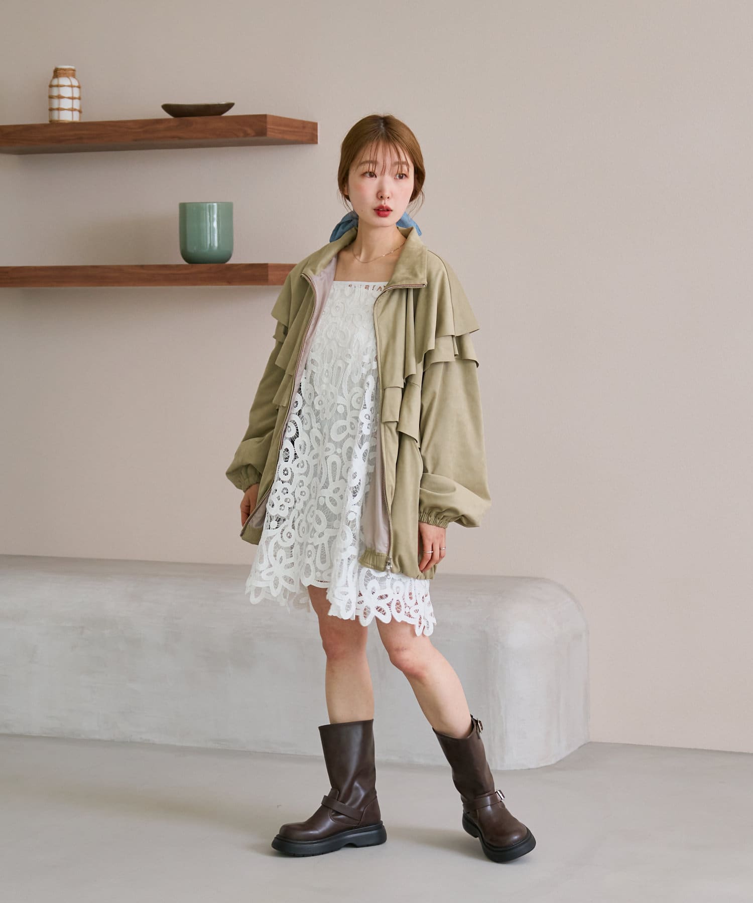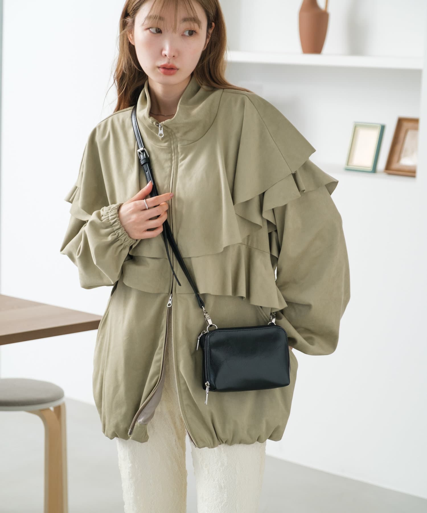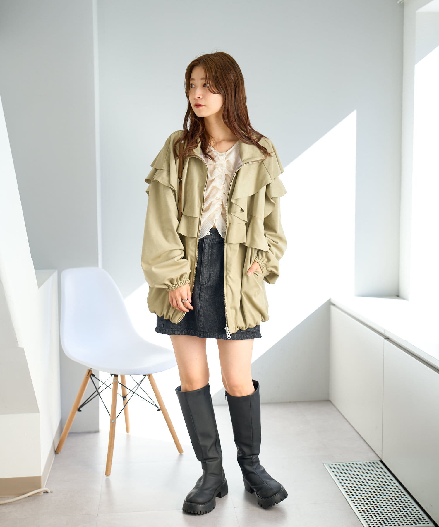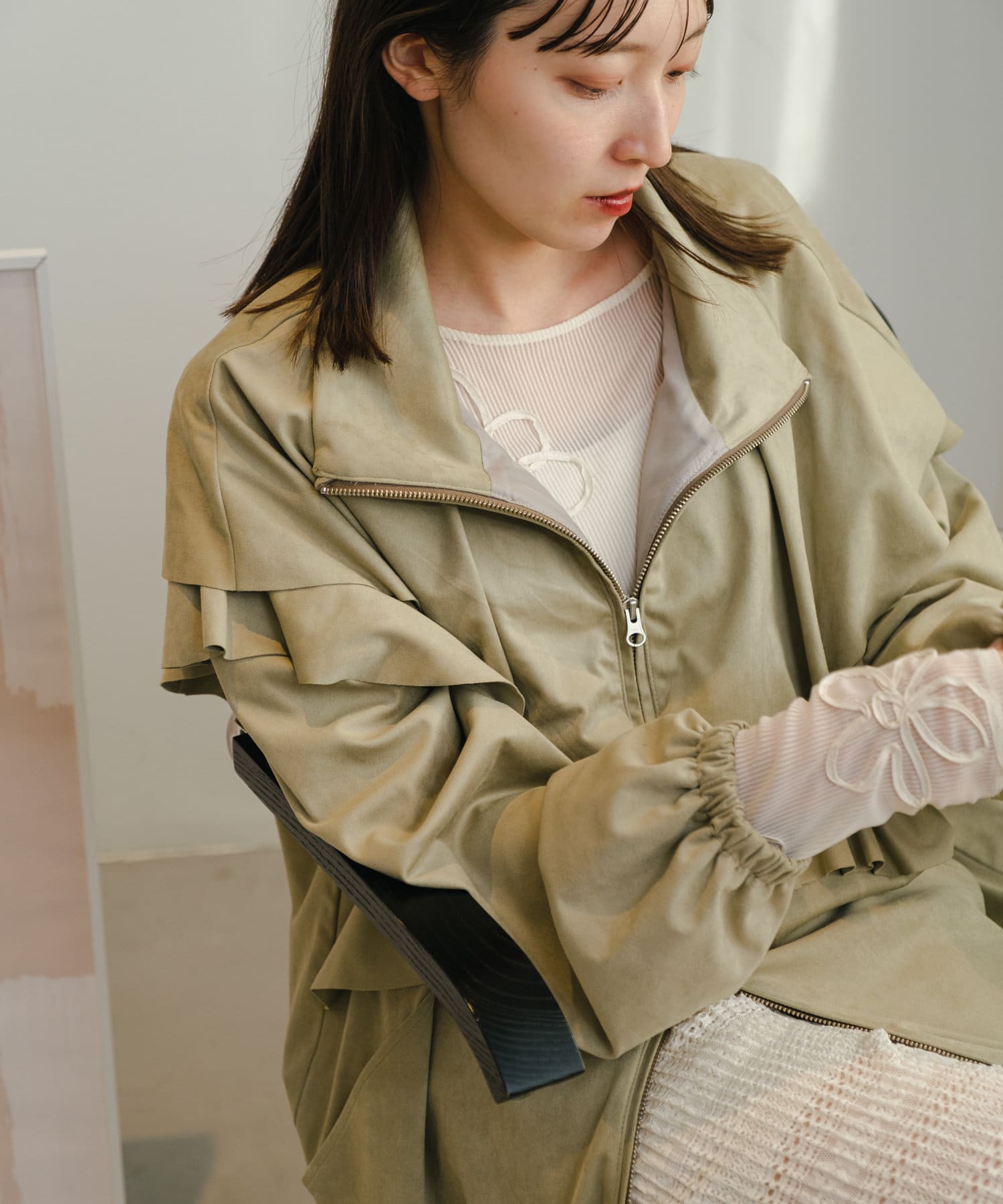 エレガントさとトレンド感を兼ね揃えたスウェードフリルブルゾン