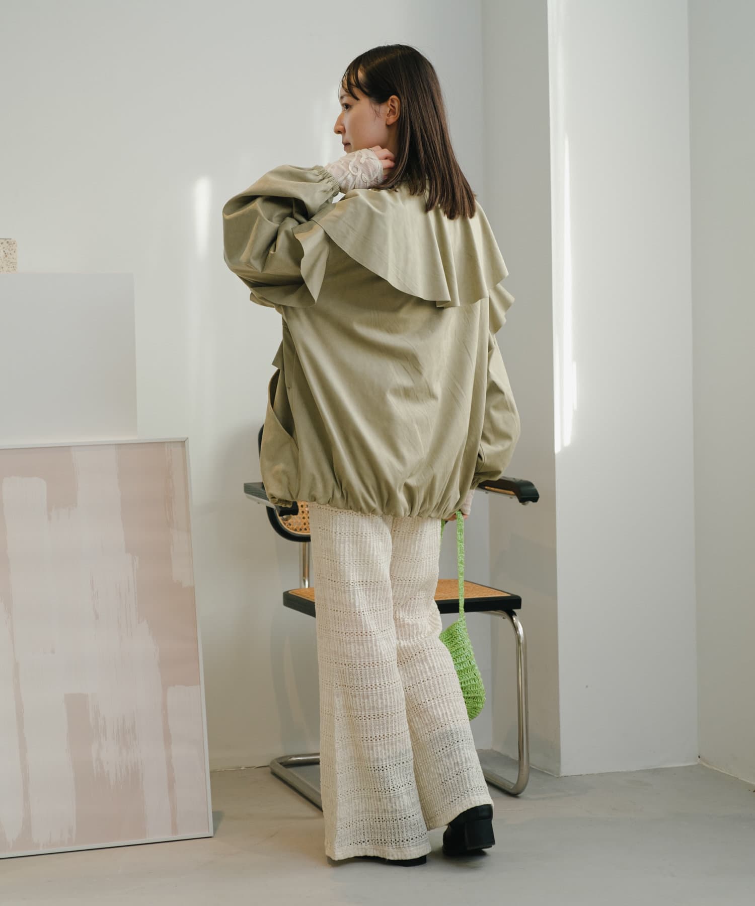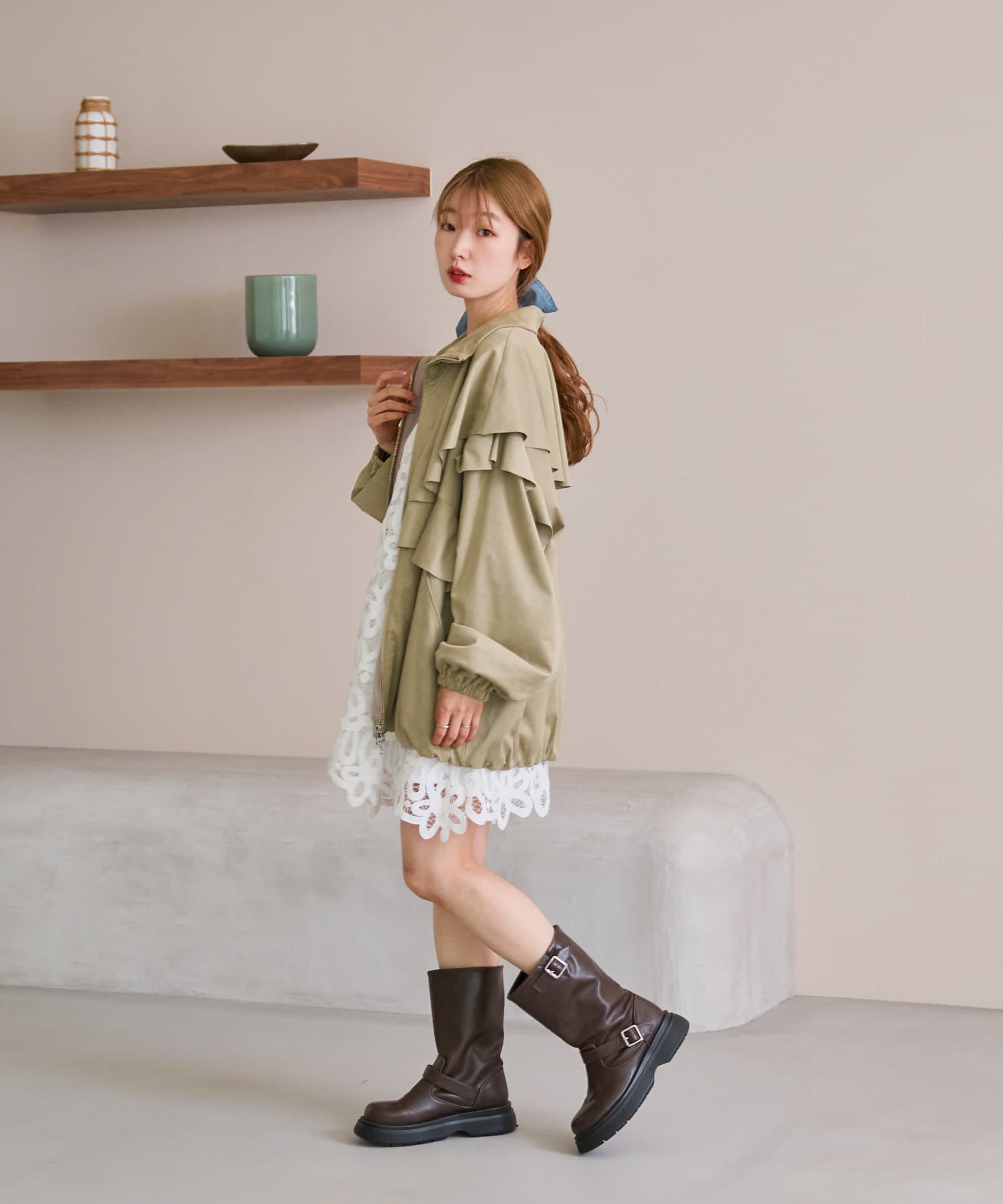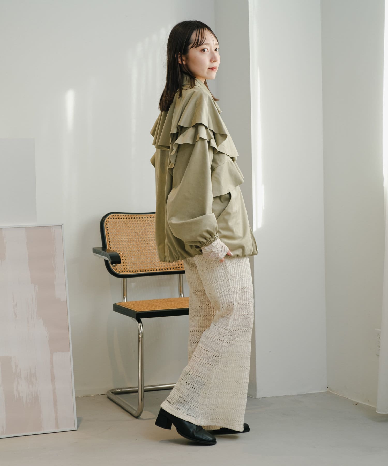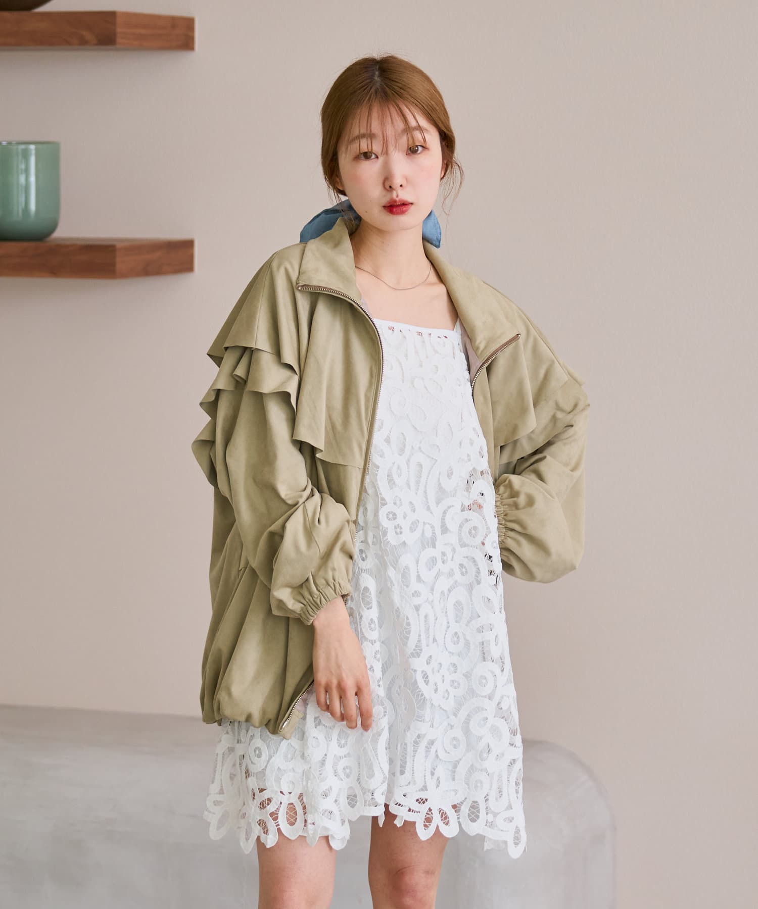 ボリューム感たっぷりのフリルが目を惹くブルゾン。