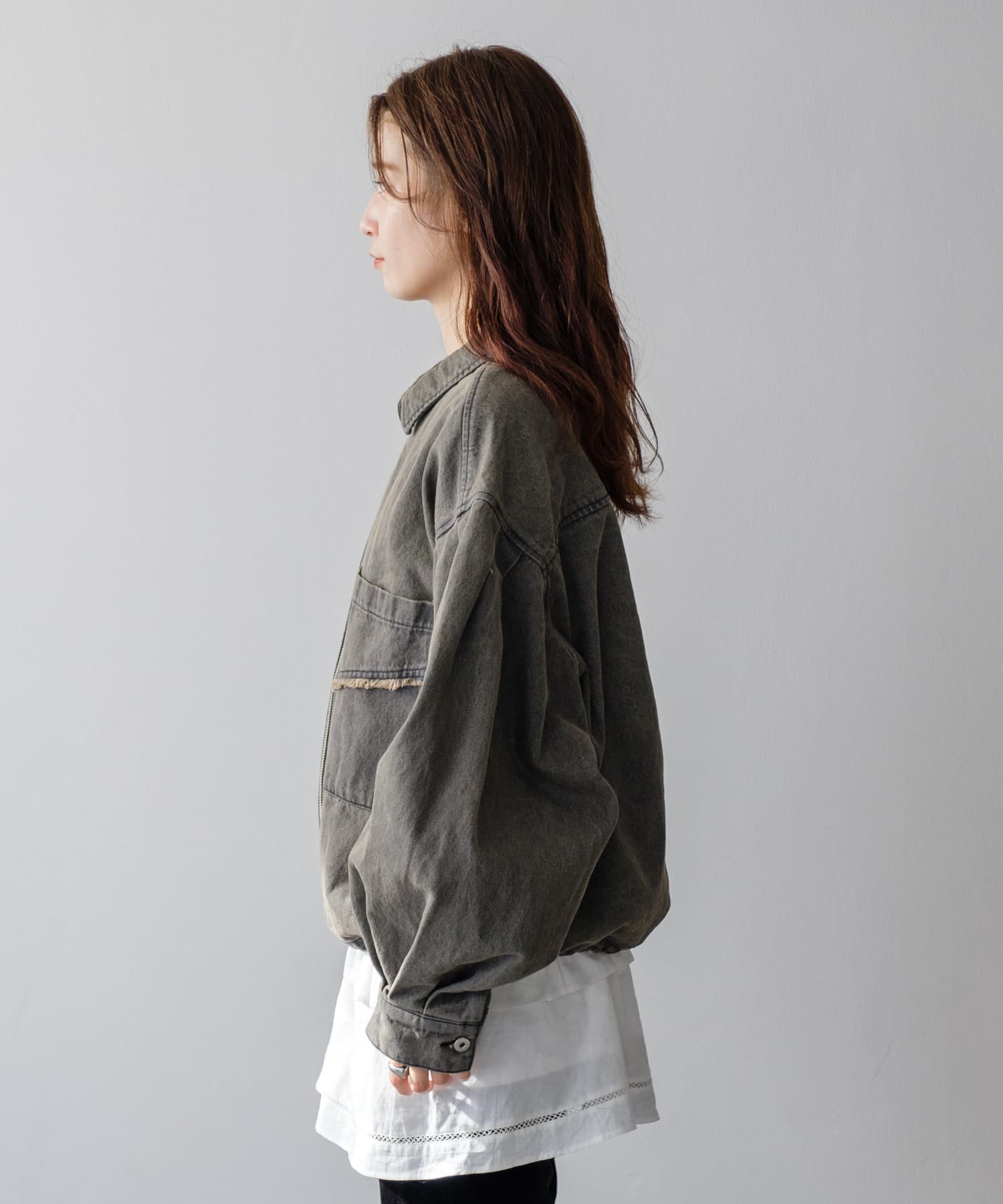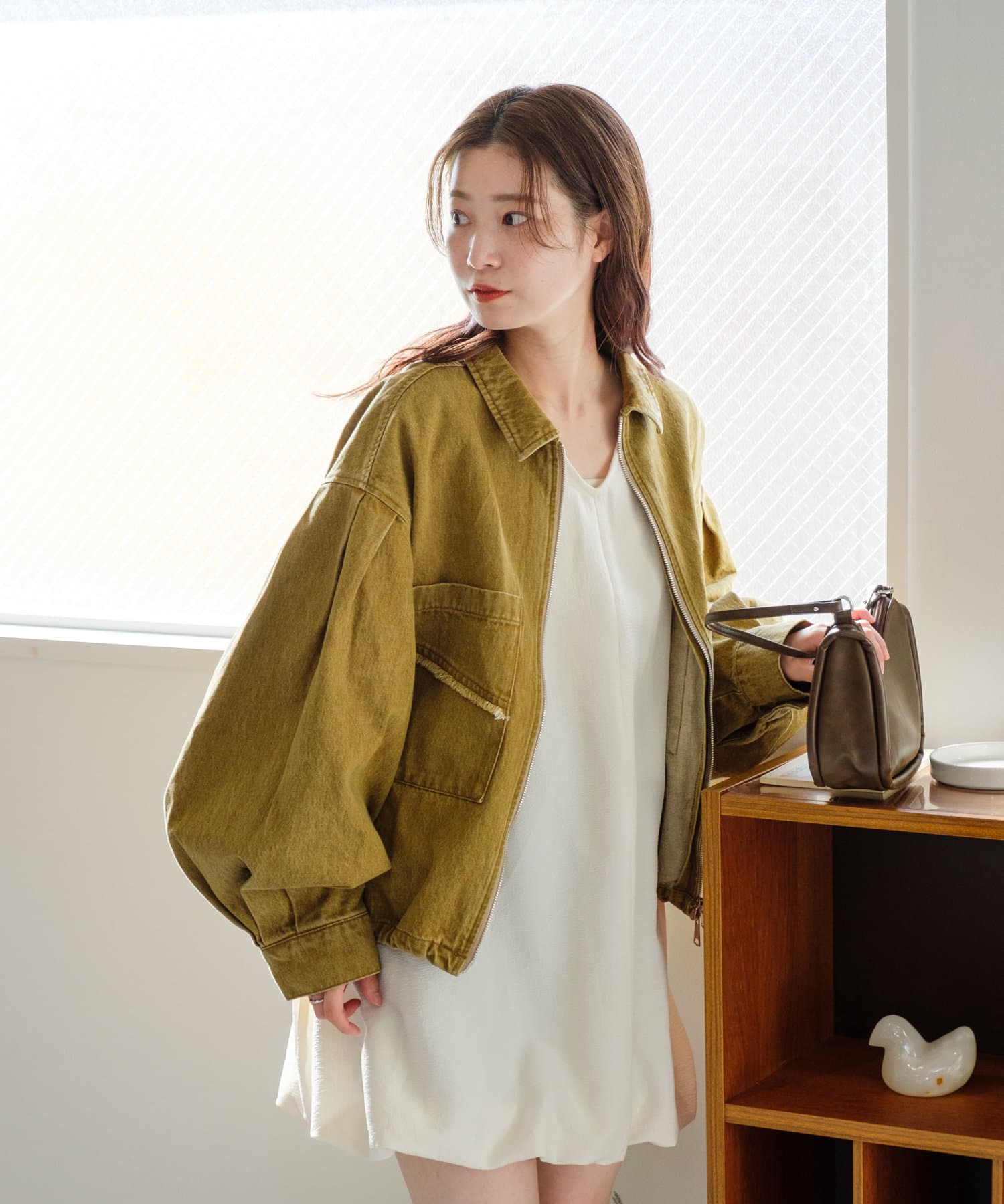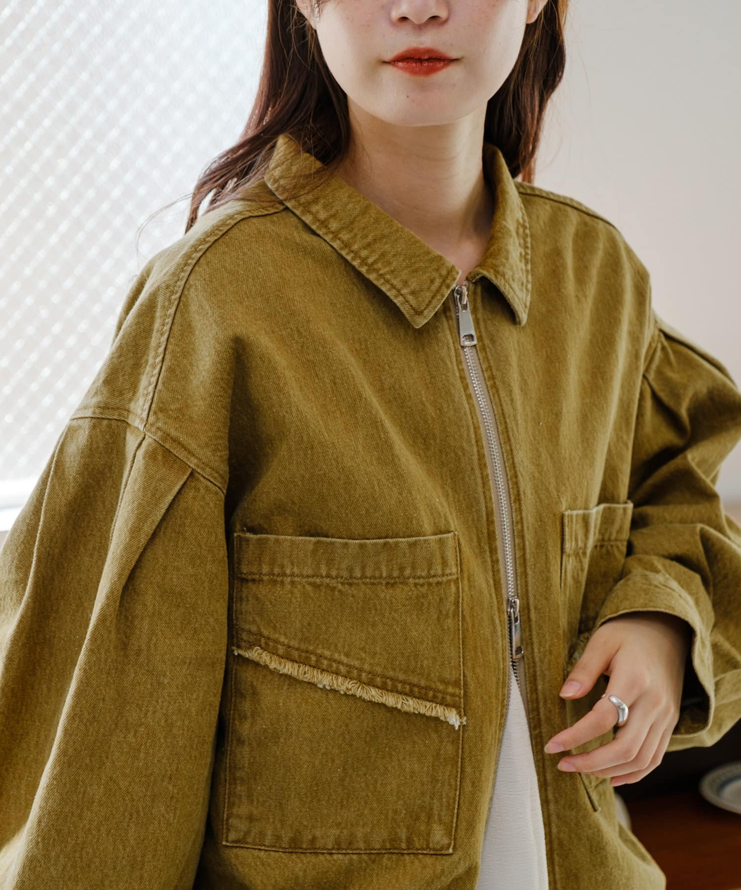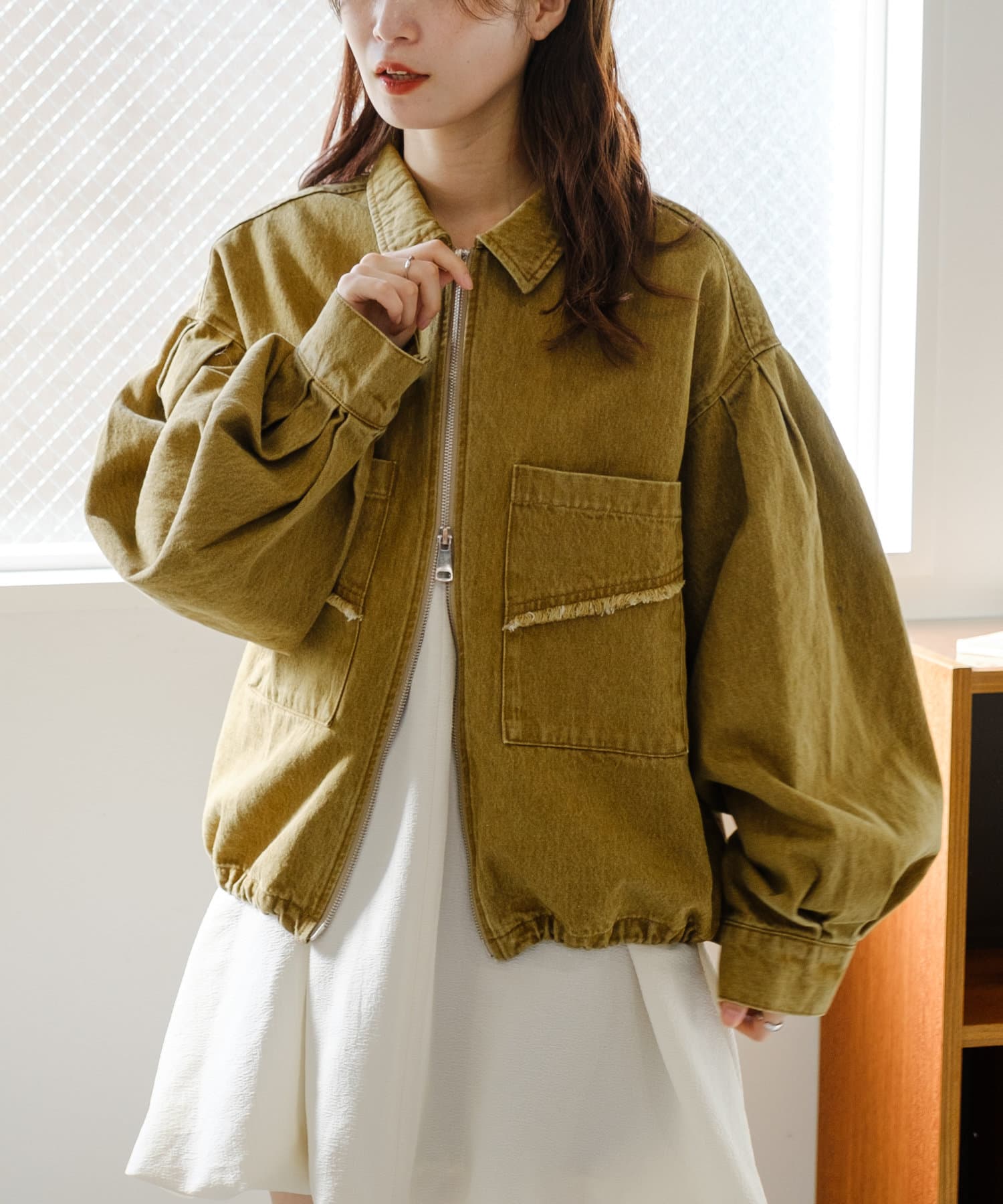 軽い羽織りものとして春や秋のスタイリングに最適。