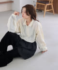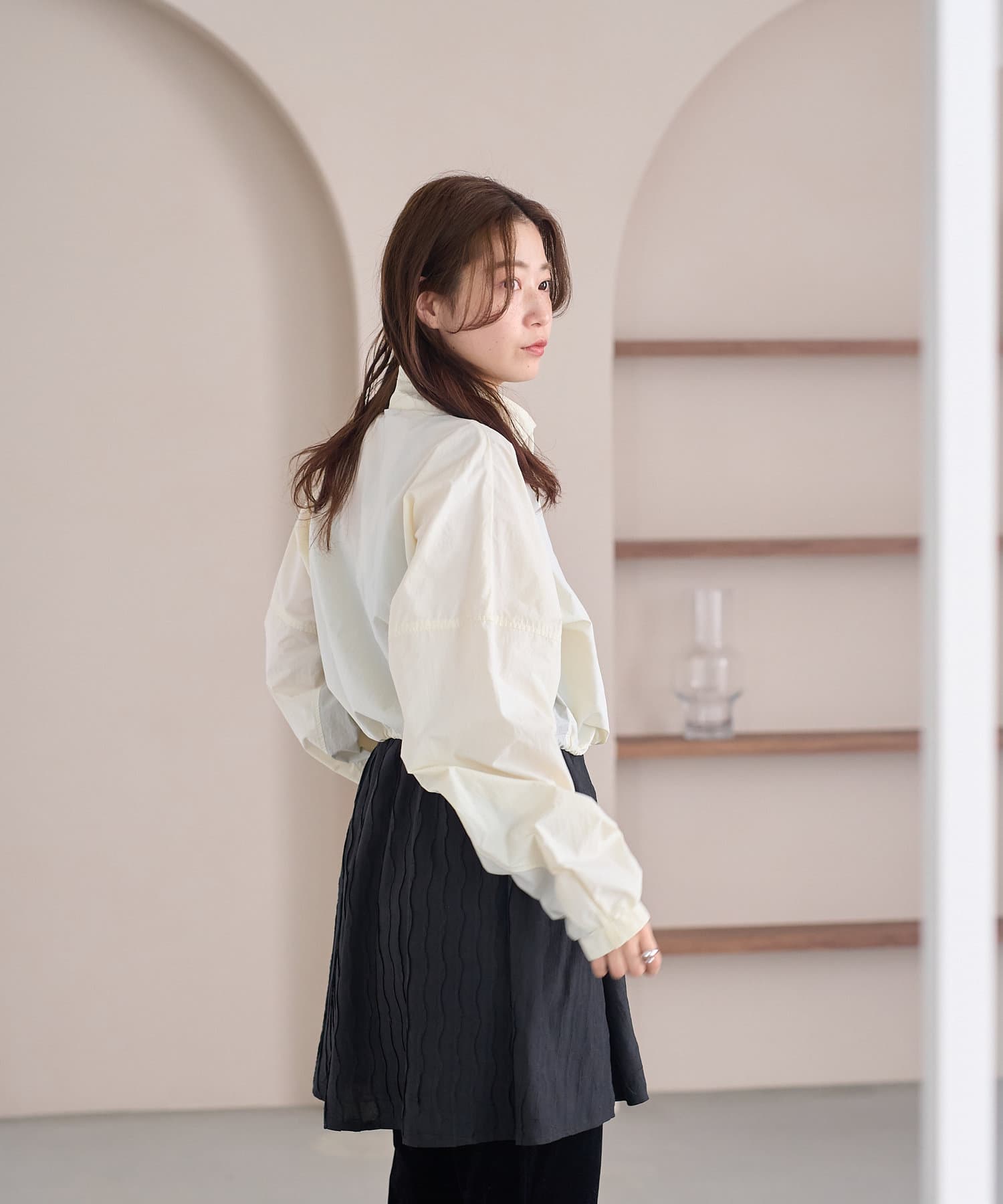 袖のバイカラーがアクセントになり、フェミニンな雰囲気をプラスしてくれます。