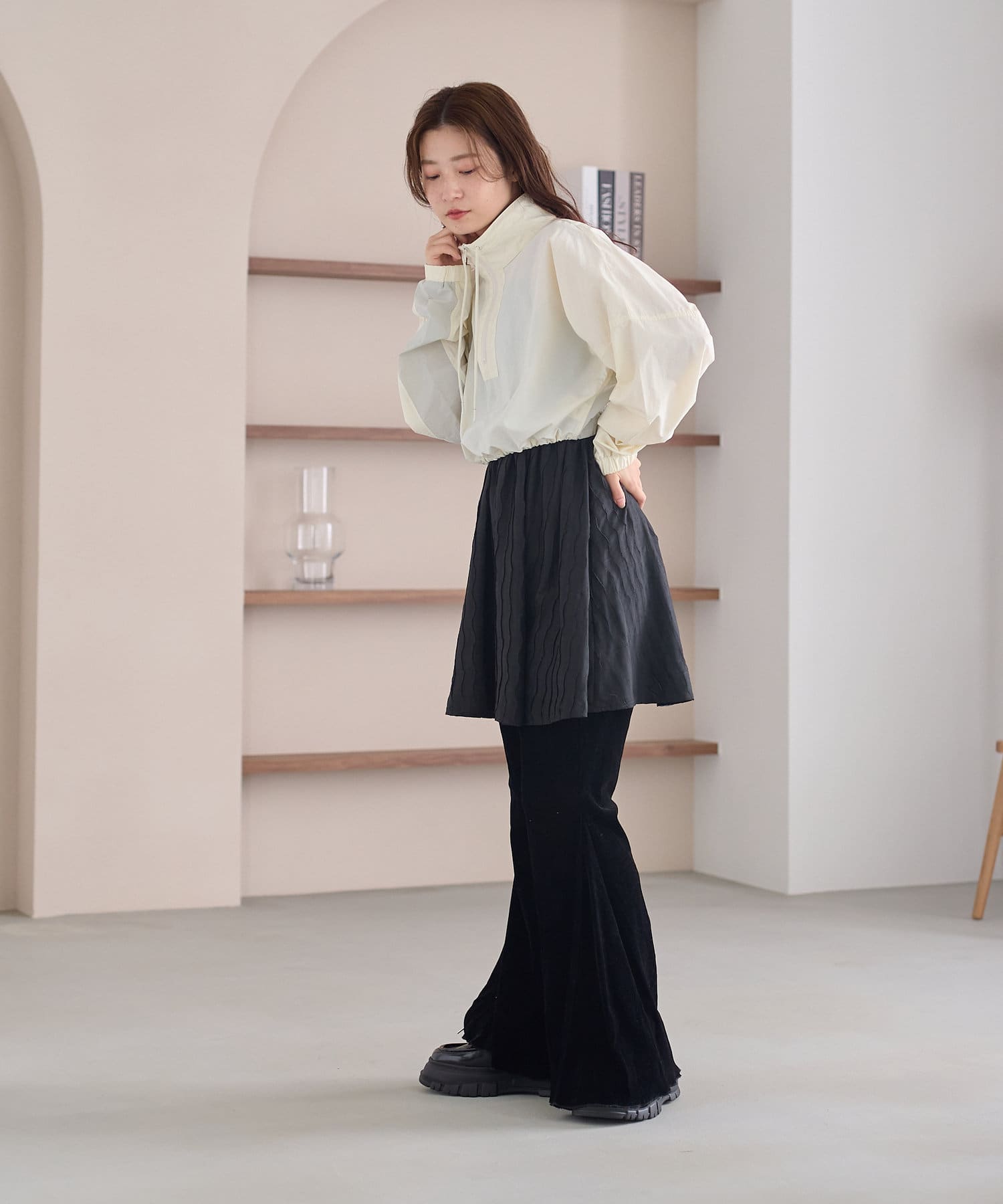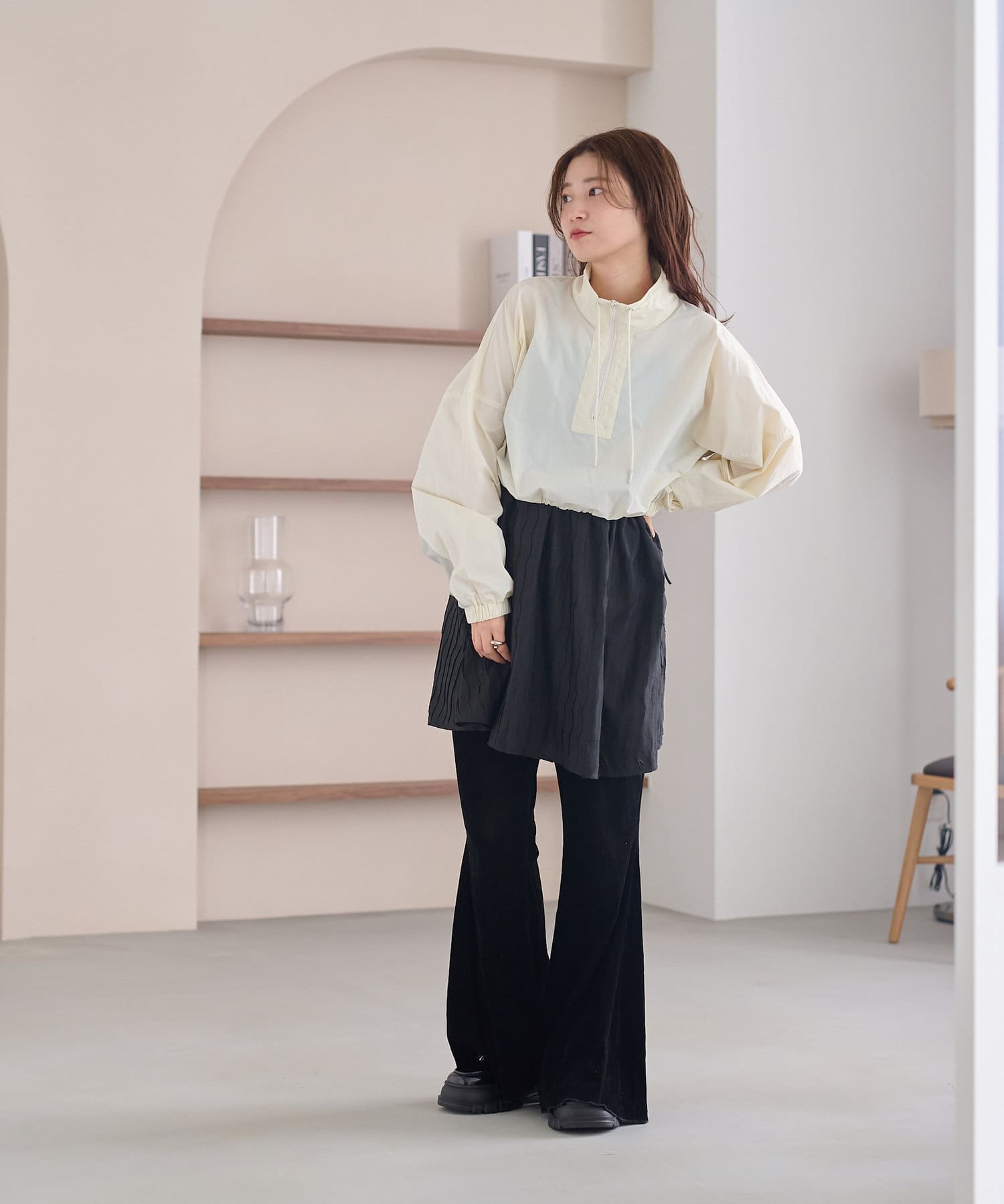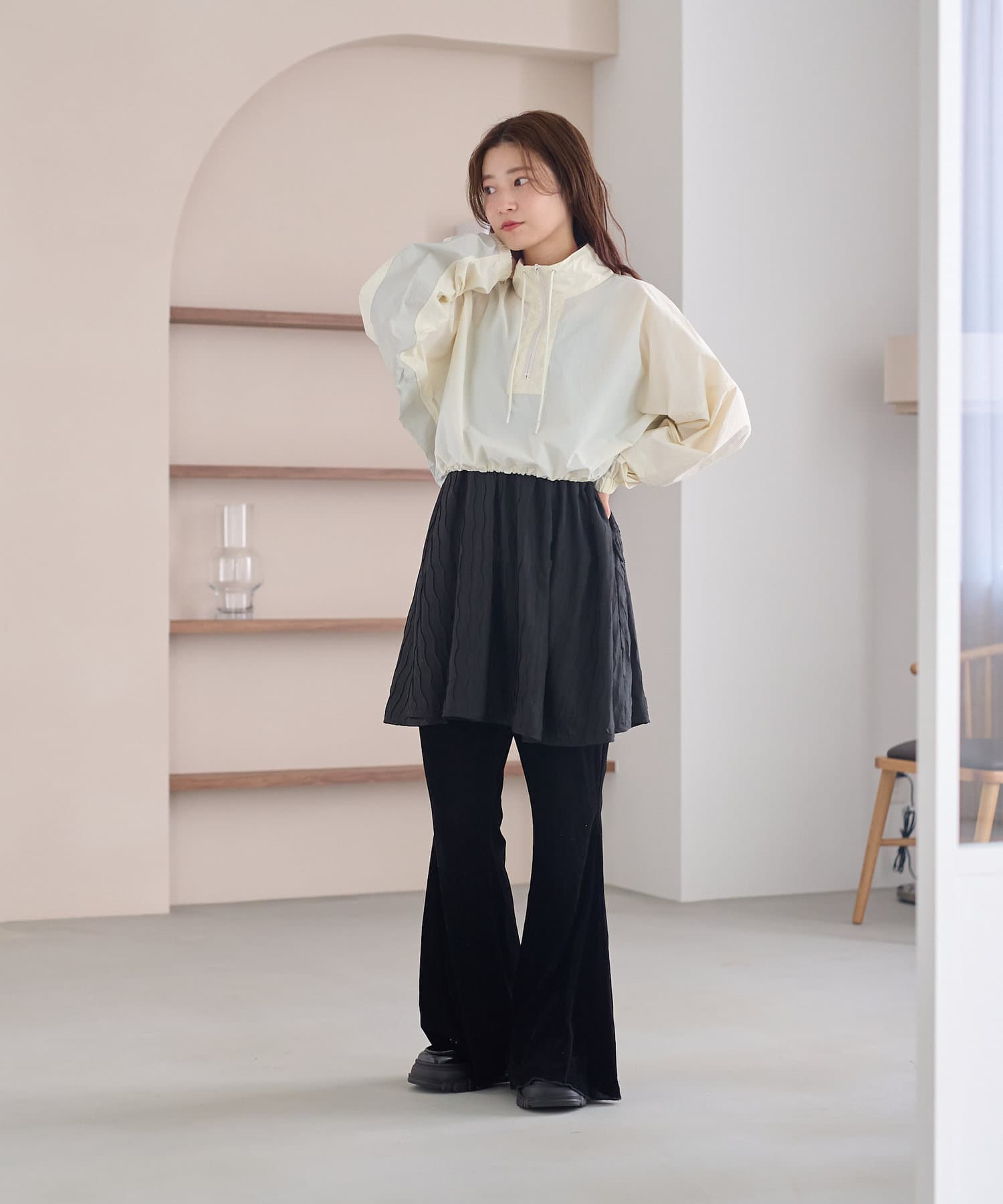 裾には絞れるコードがついておりシルエットを自由に調整できるのが嬉しいポイントです◎