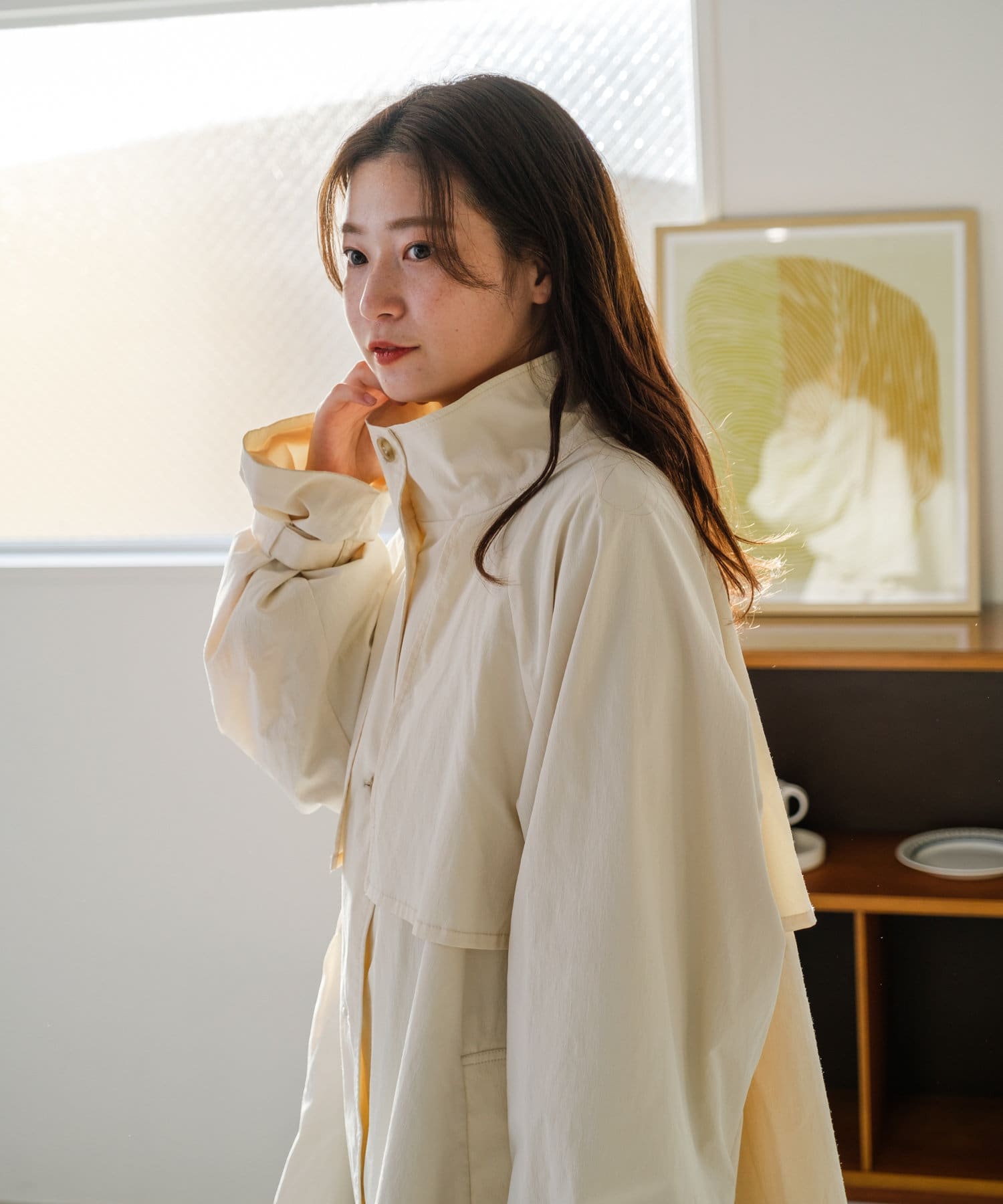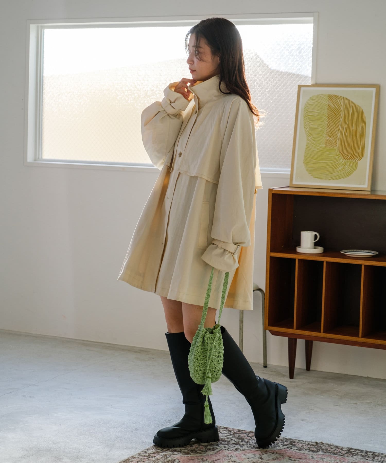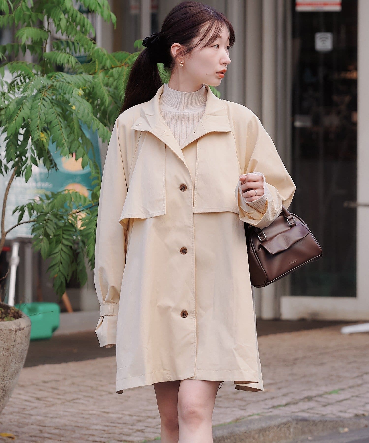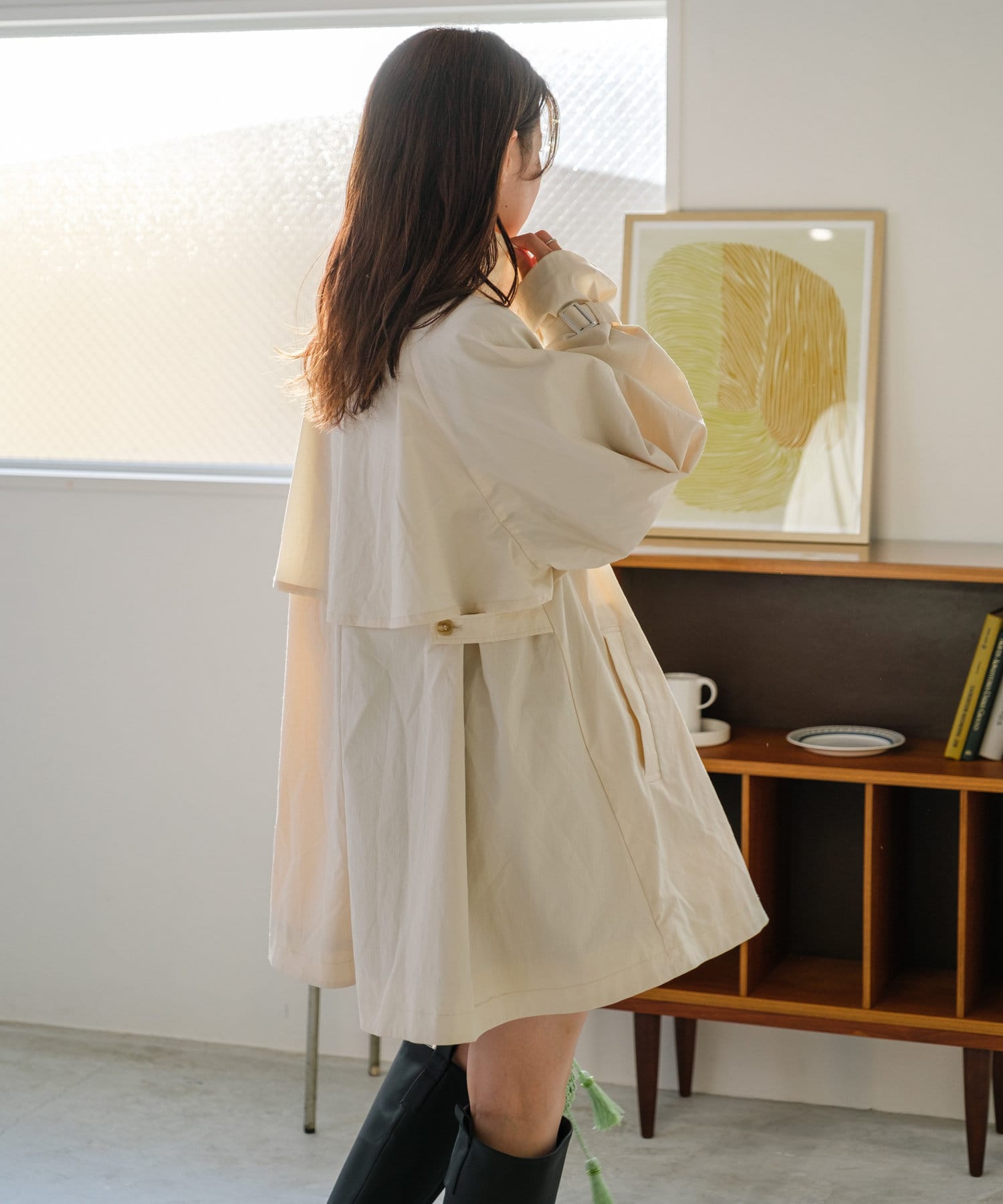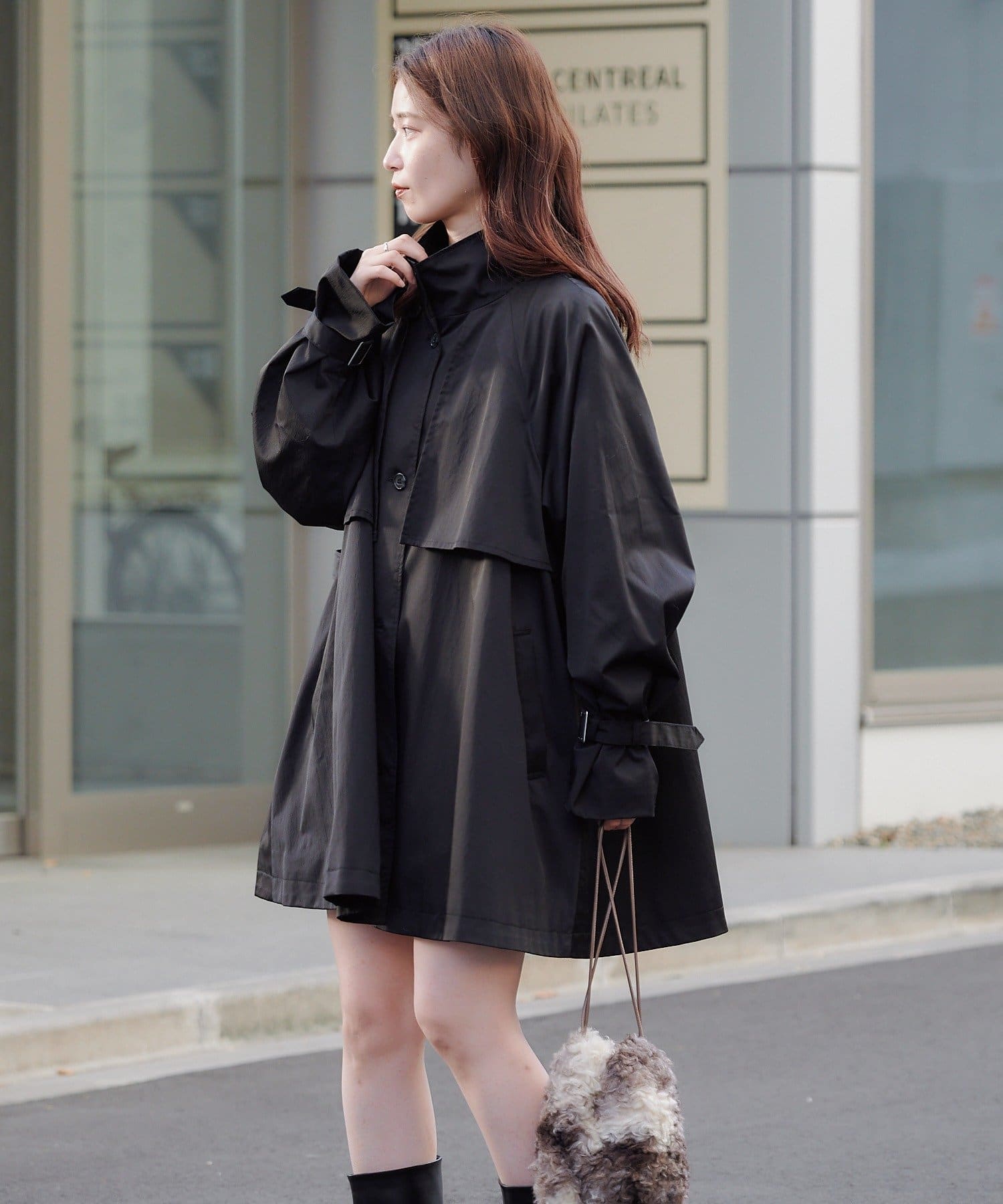 Aラインのポンチョ風デザインは一着でコーディネートの主役に。