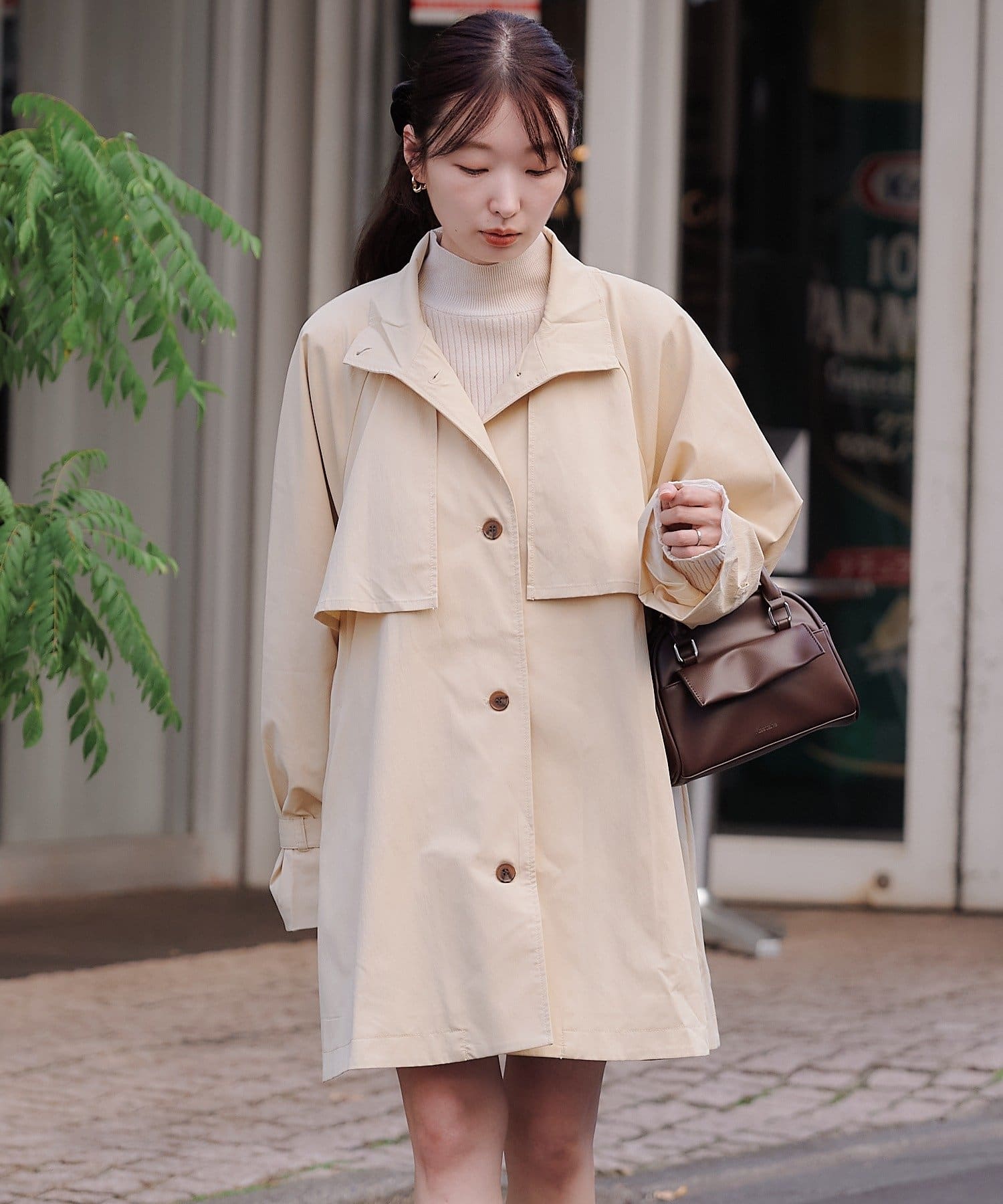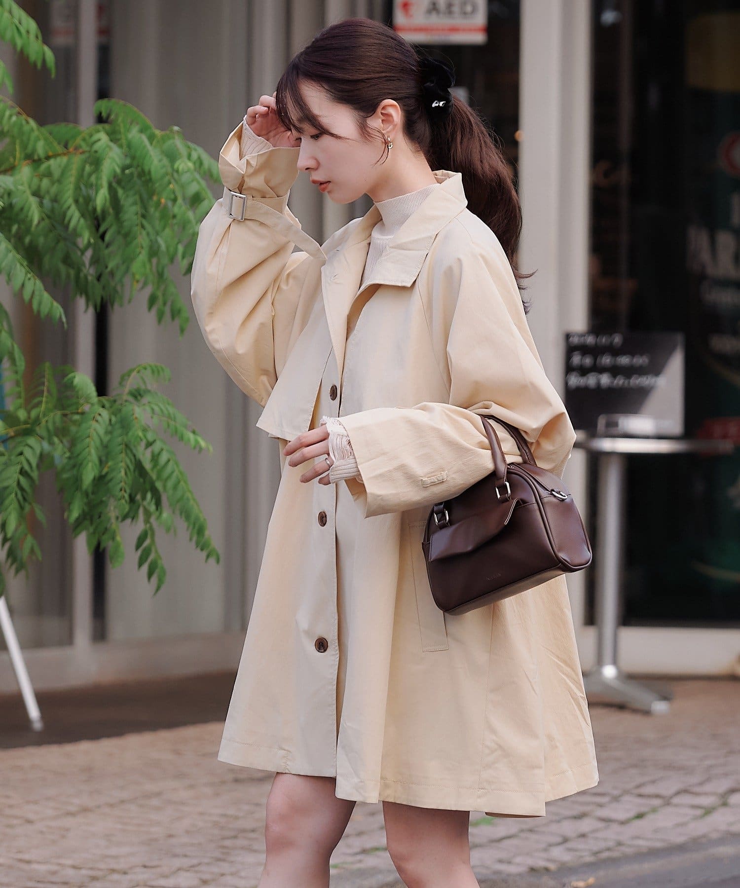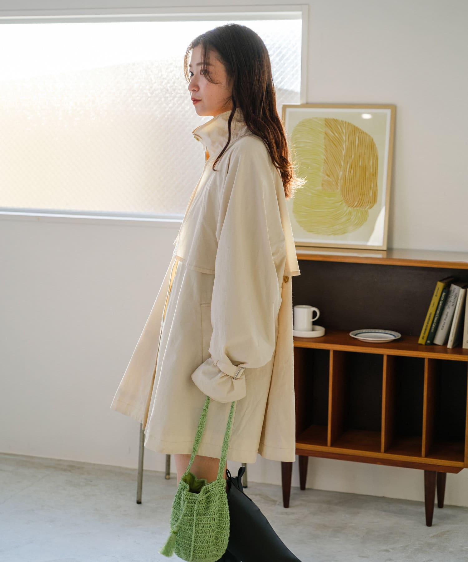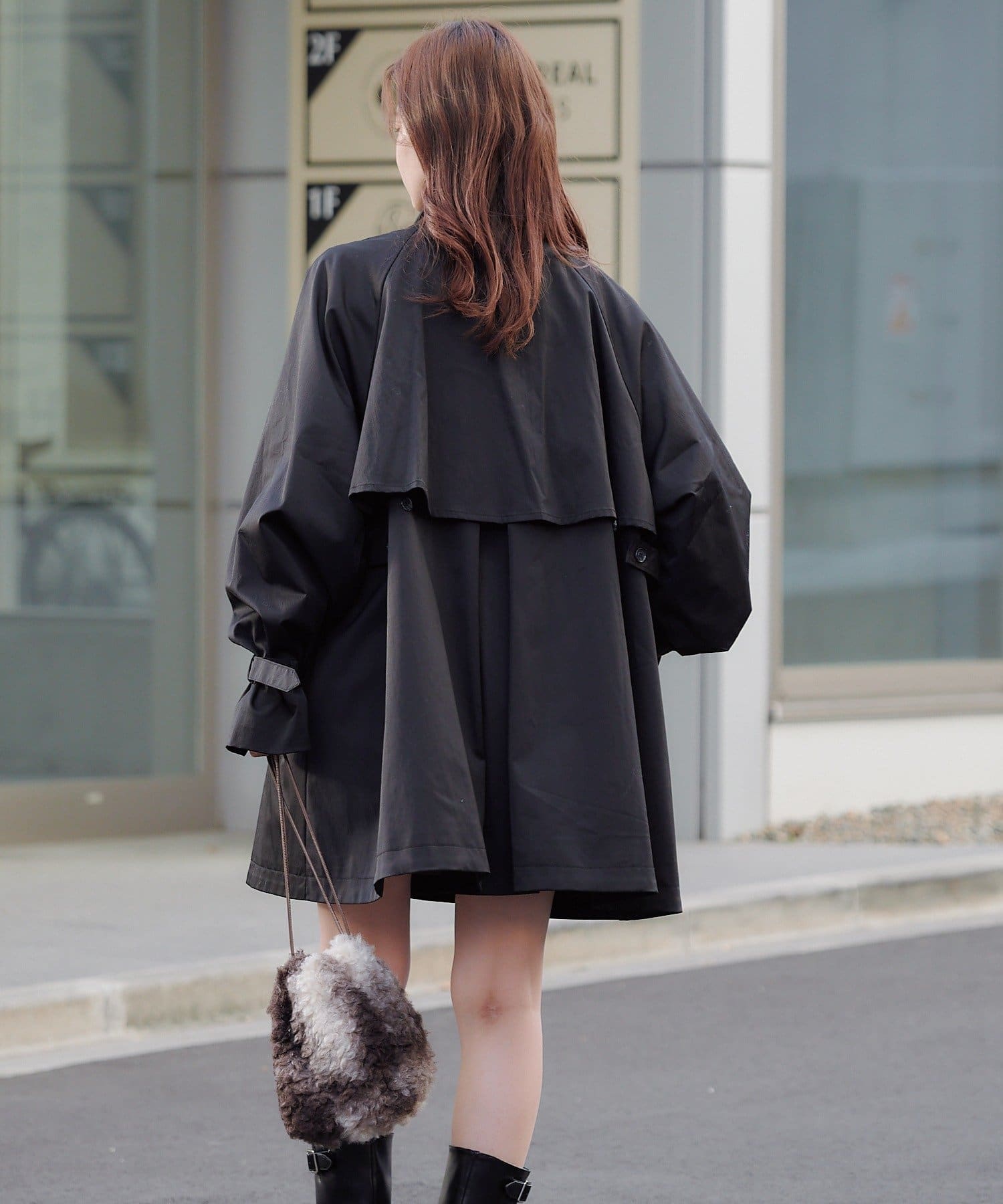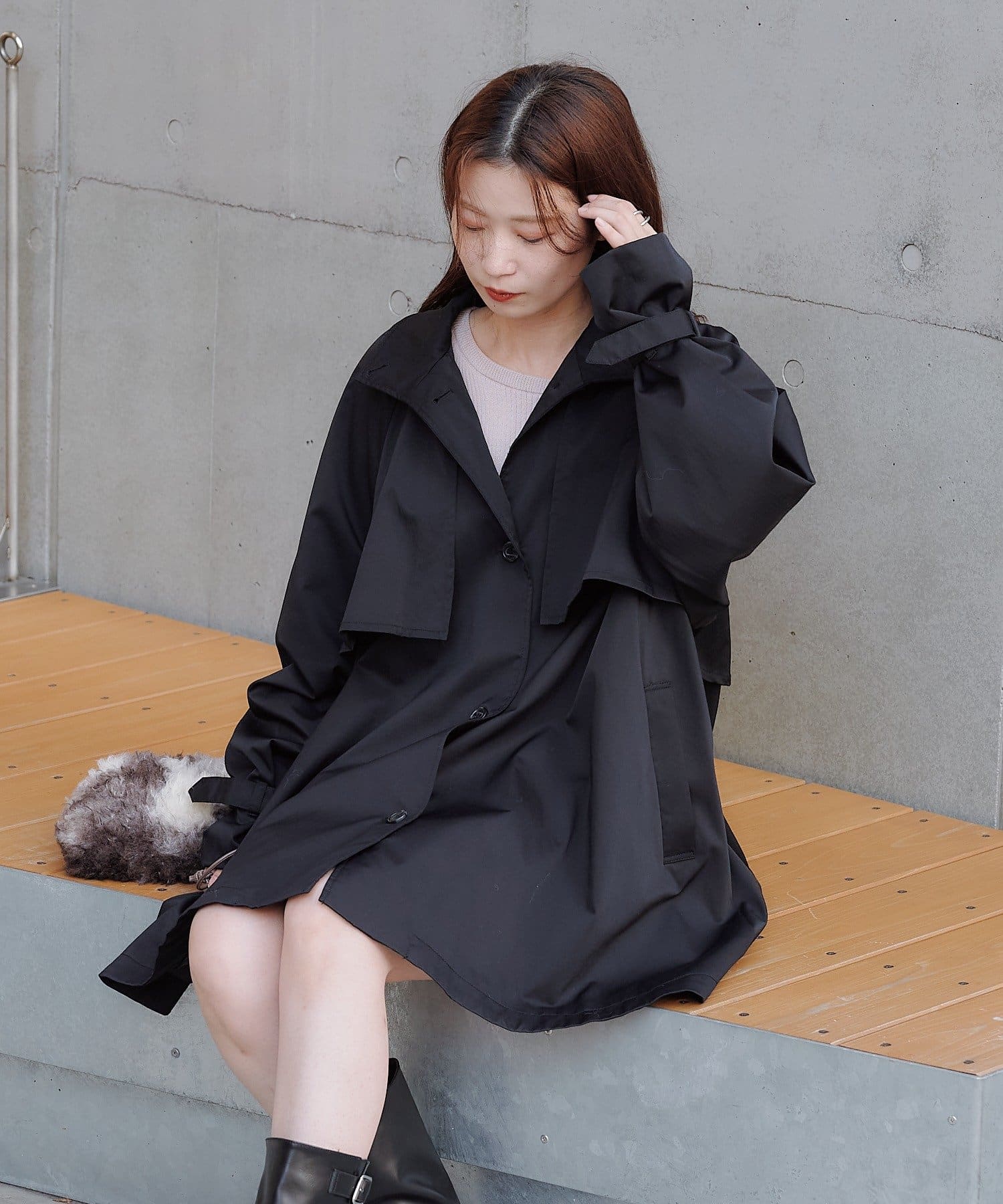 Aラインのポンチョ風デザインは一着でコーディネートの主役に。
