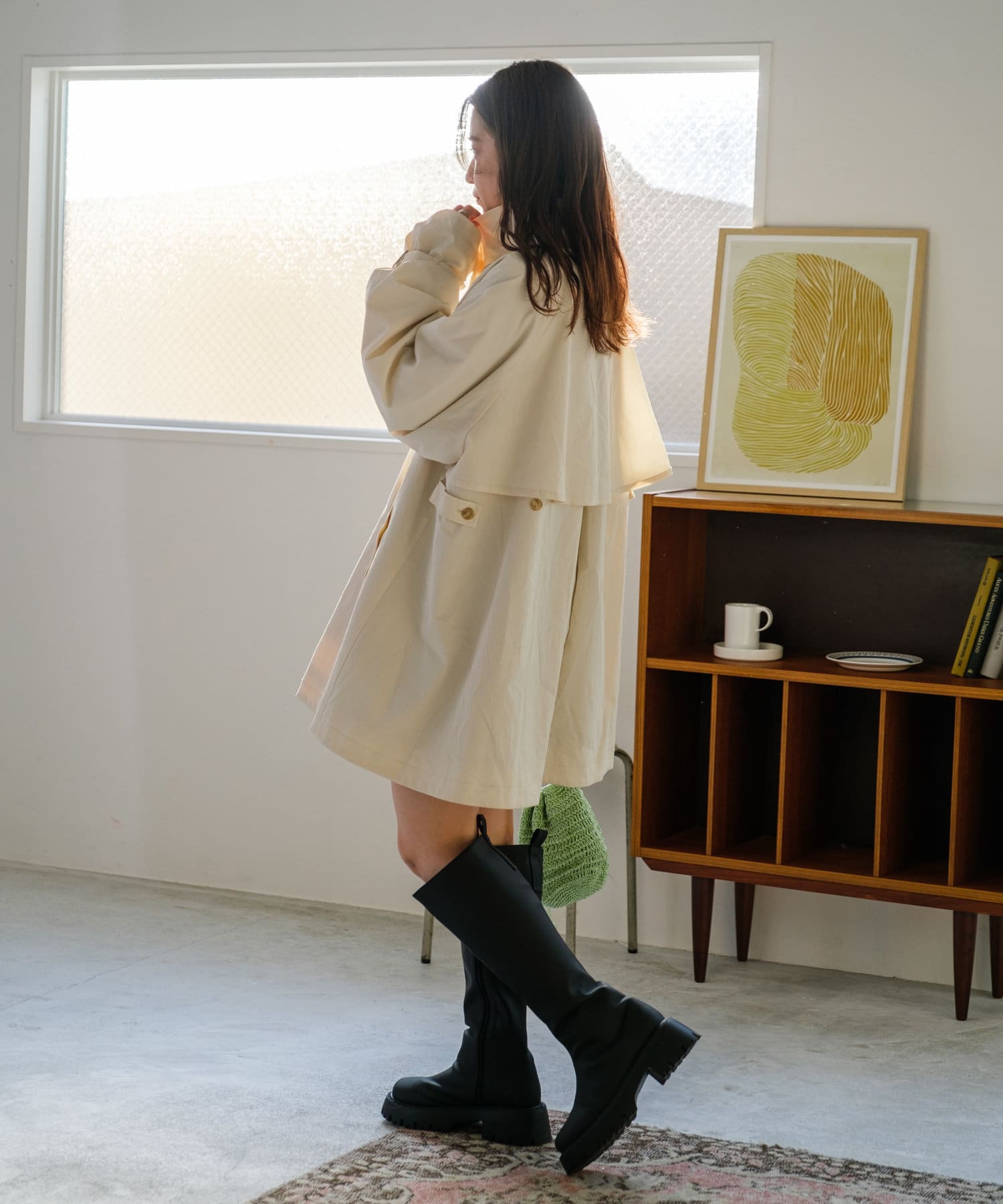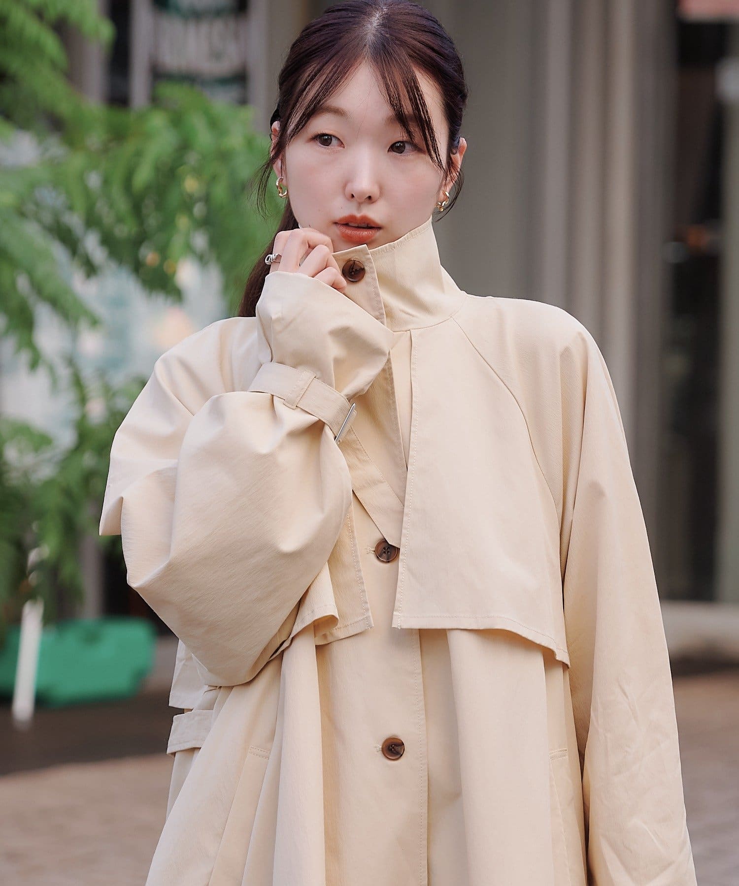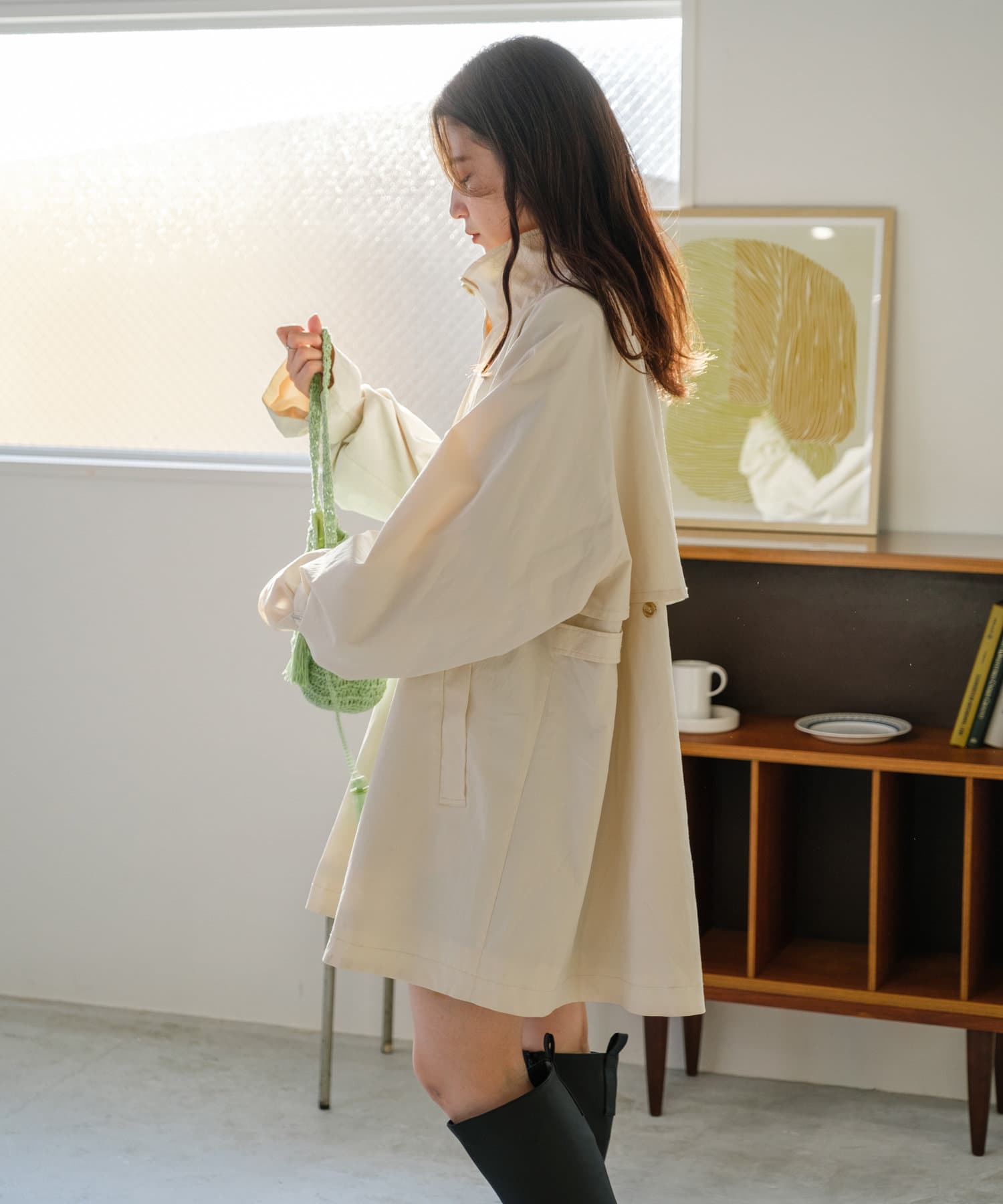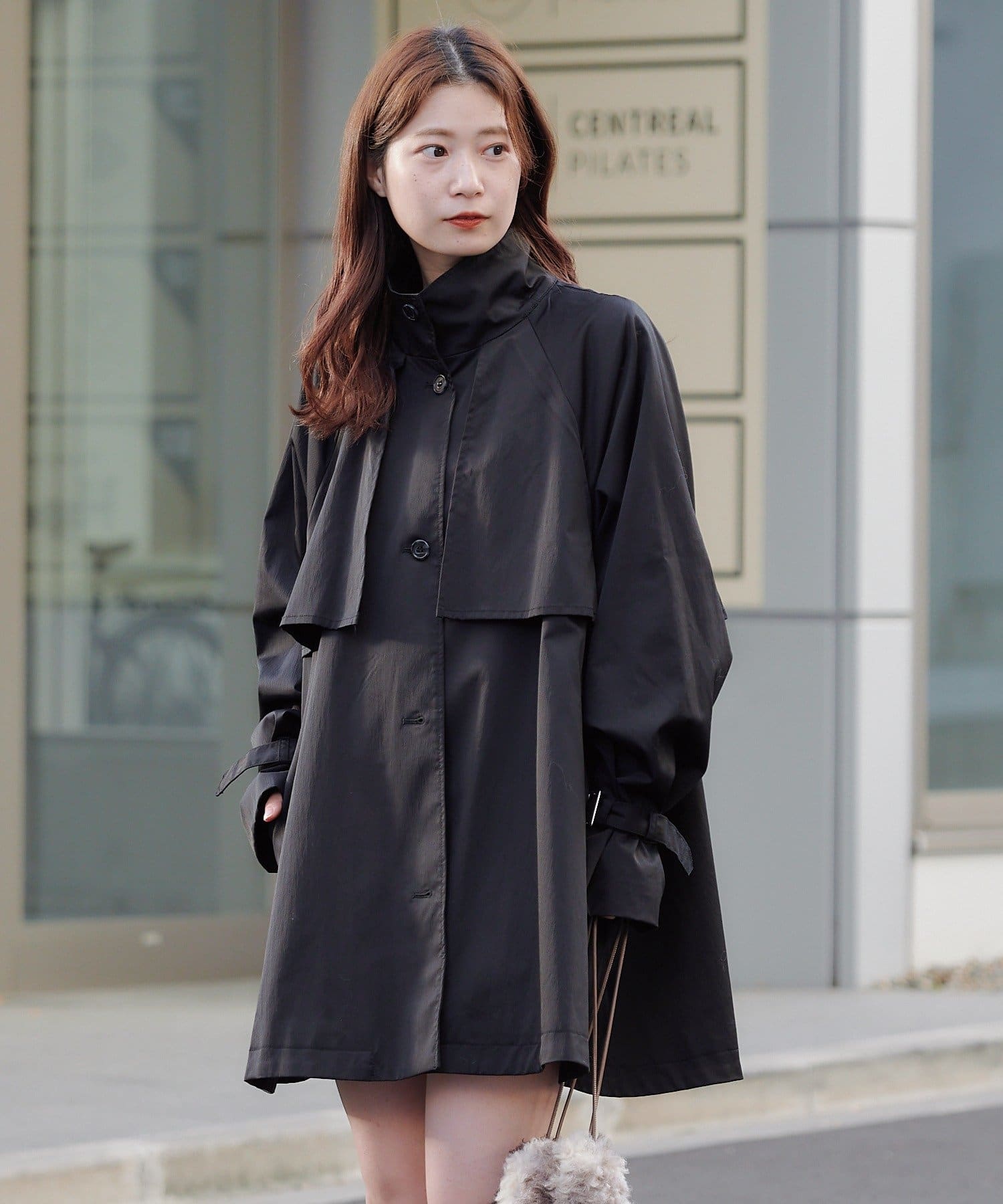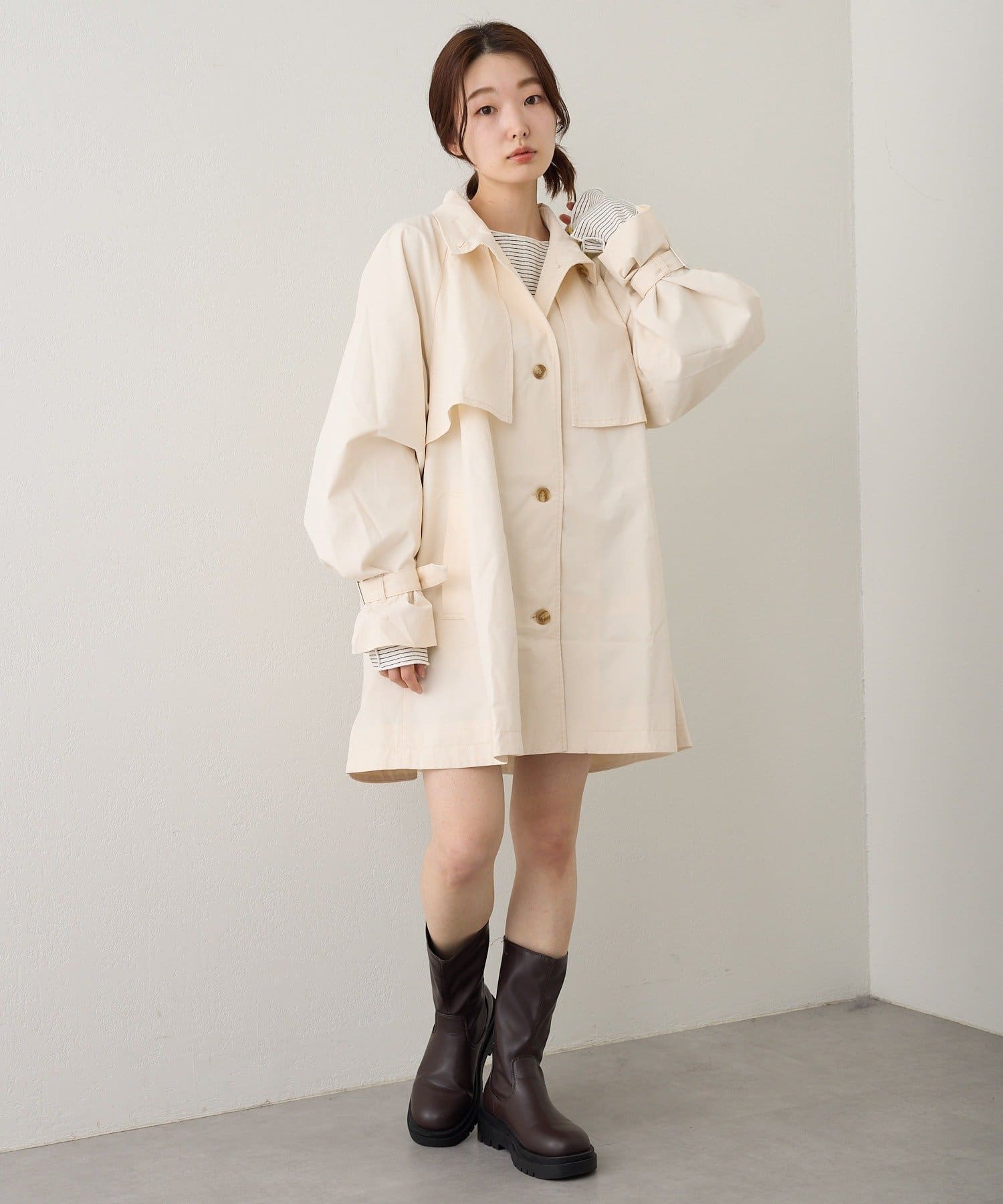Aラインのポンチョ風デザインは一着でコーディネートの主役に。
