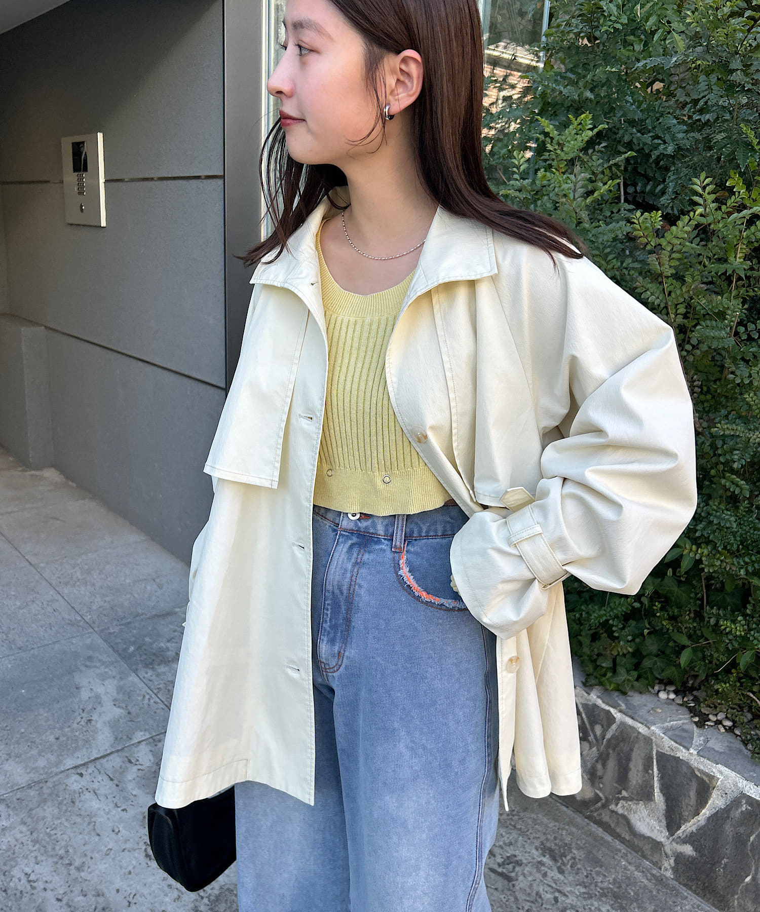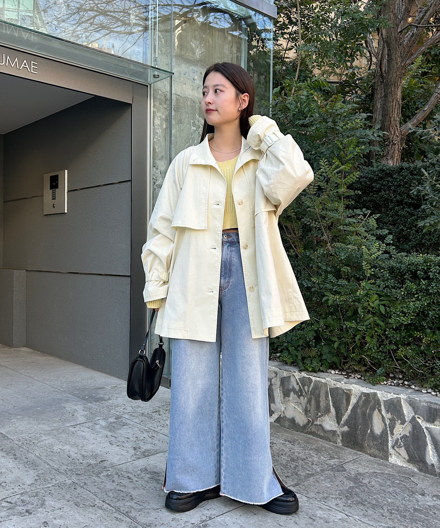 ヒップが隠れるミドル丈なのでトレンドのミニボトムと相性抜群◎