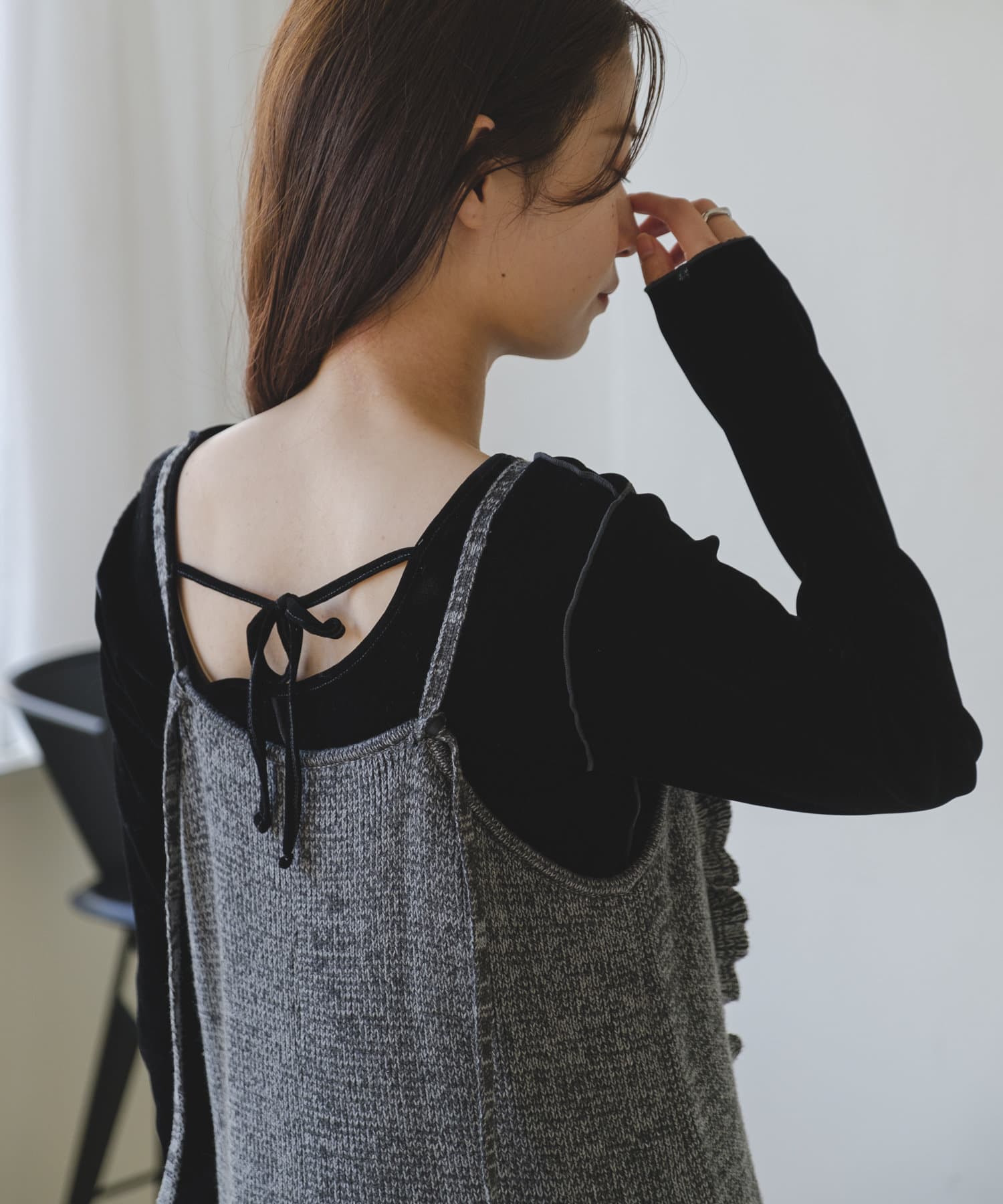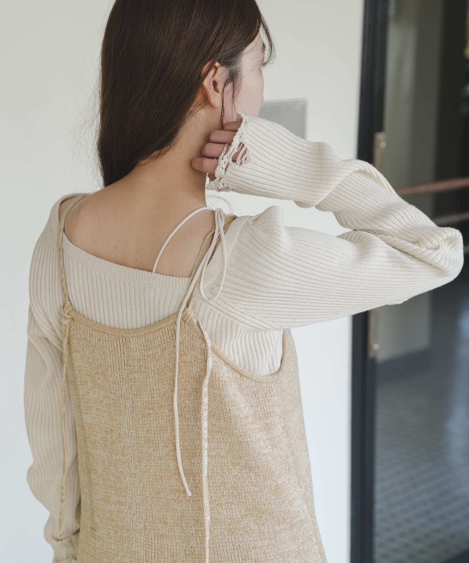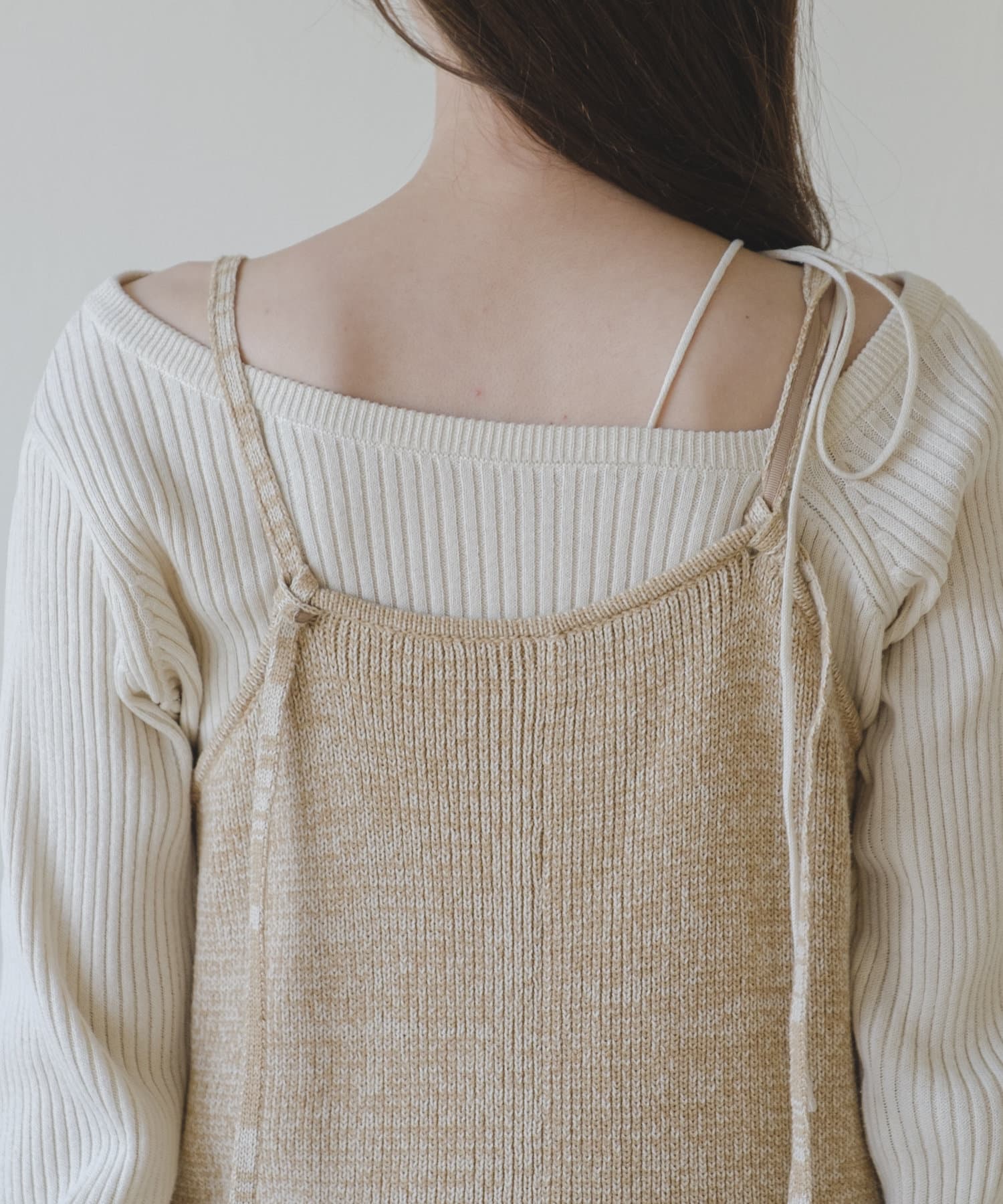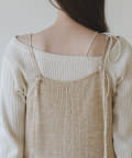 華奢なストラップがデコルテラインを美しく見せ、インナー次第でカジュアルからフェミニンまで幅広く着こなしていただけます。