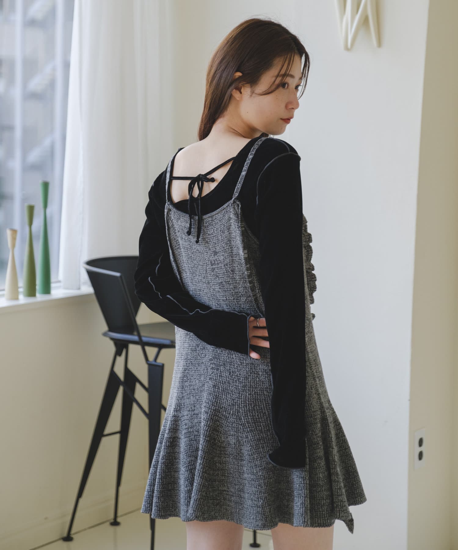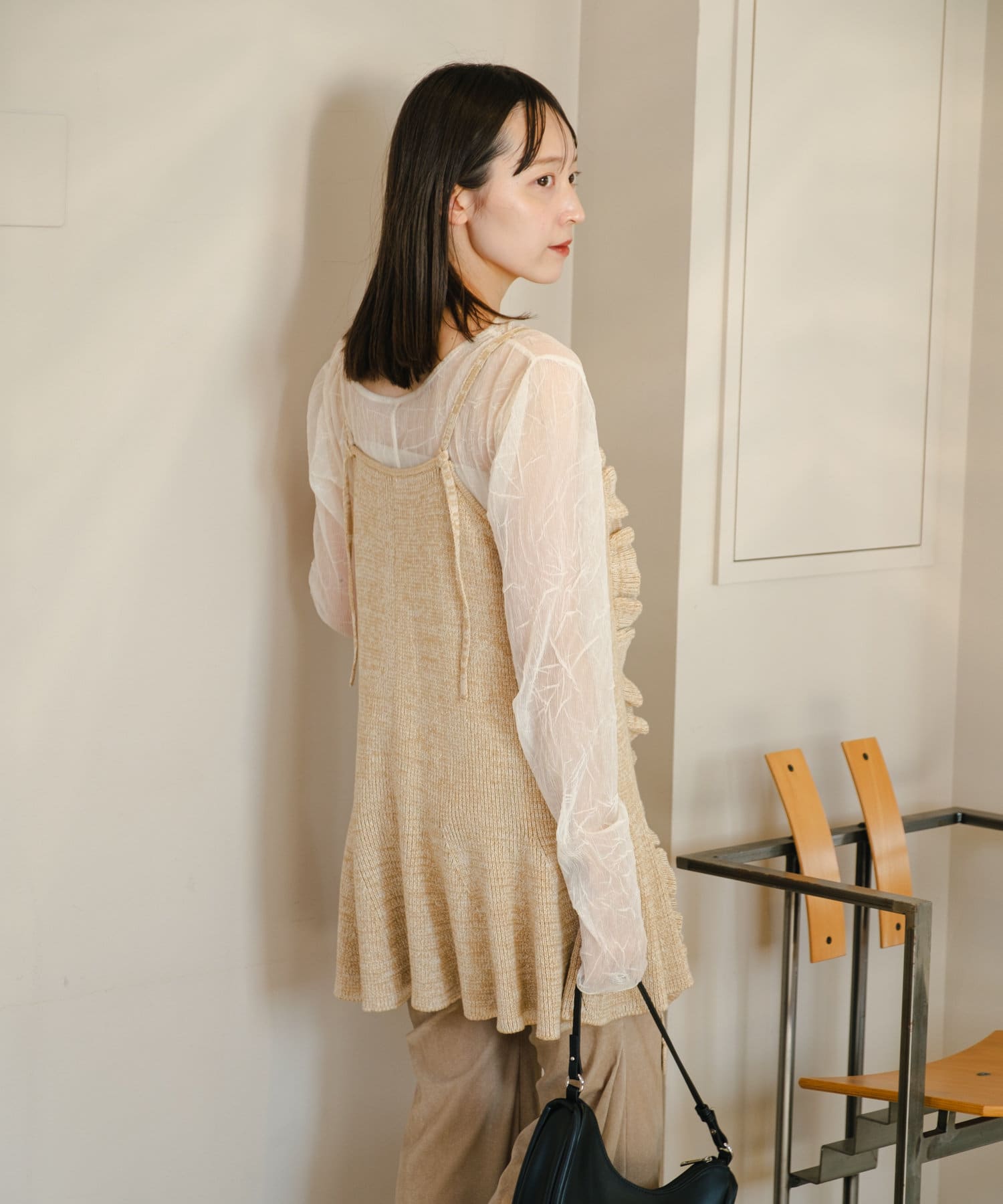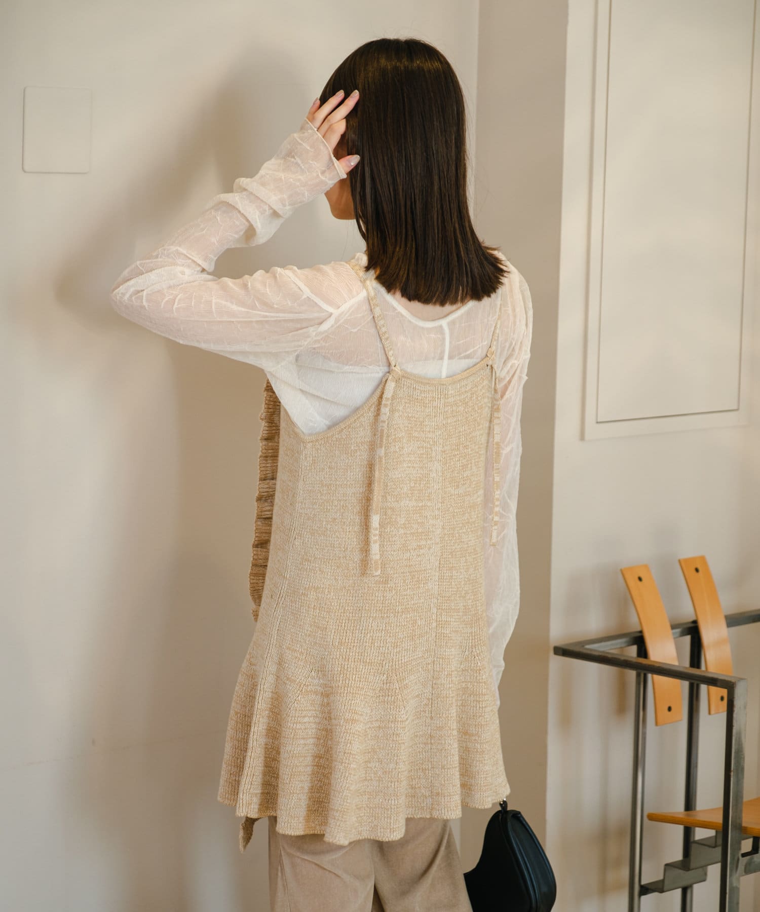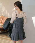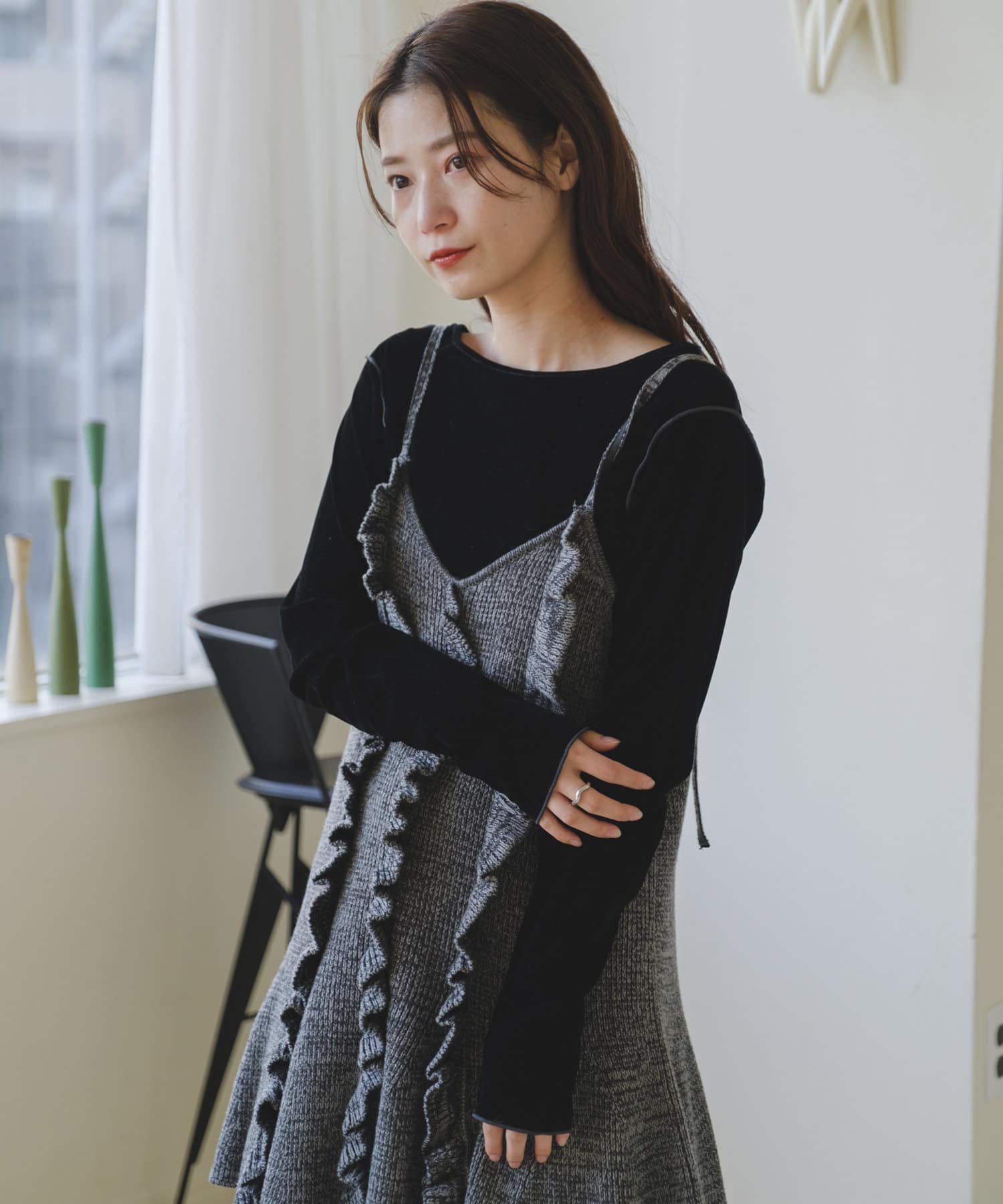 華奢なストラップがデコルテラインを美しく見せ、インナー次第でカジュアルからフェミニンまで幅広く着こなしていただけます。