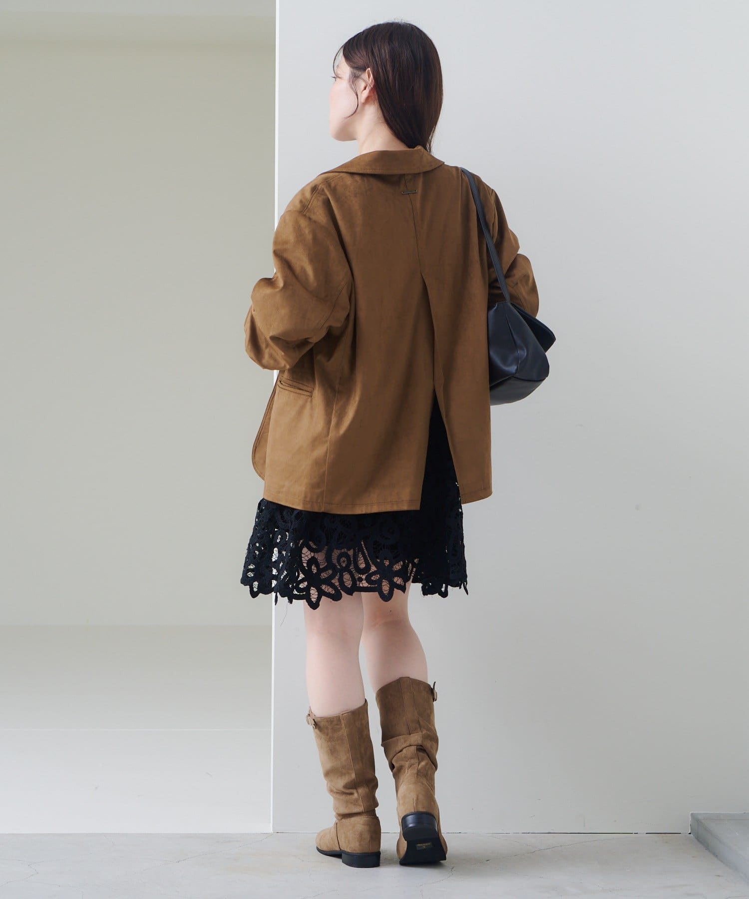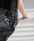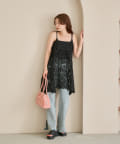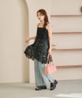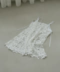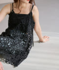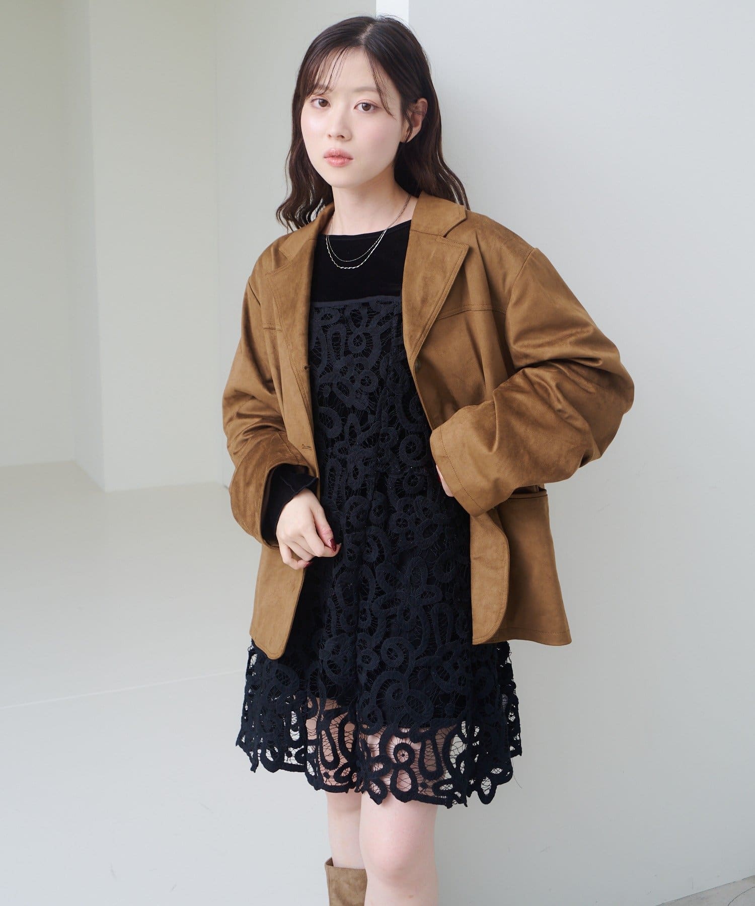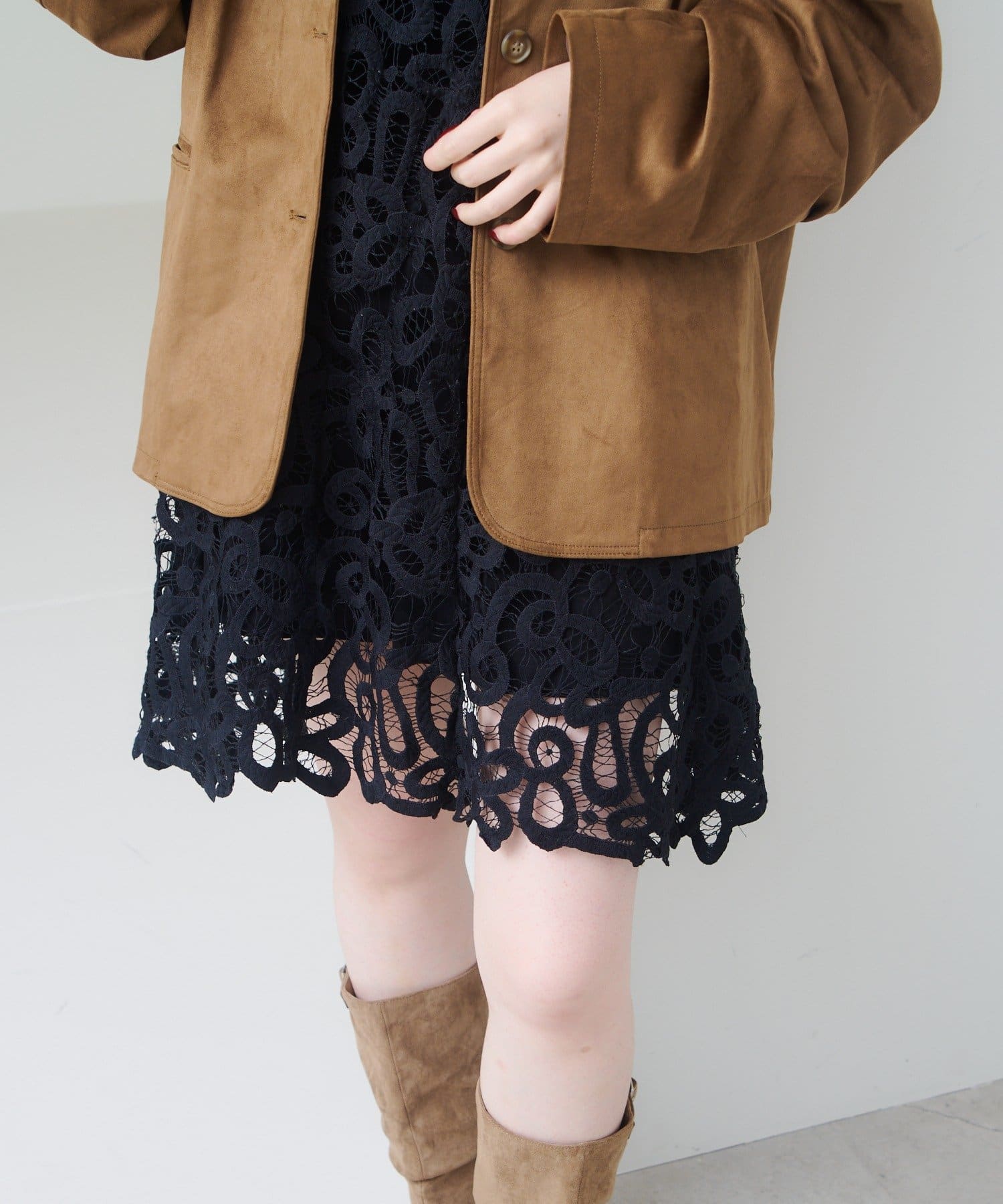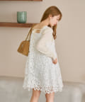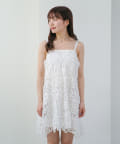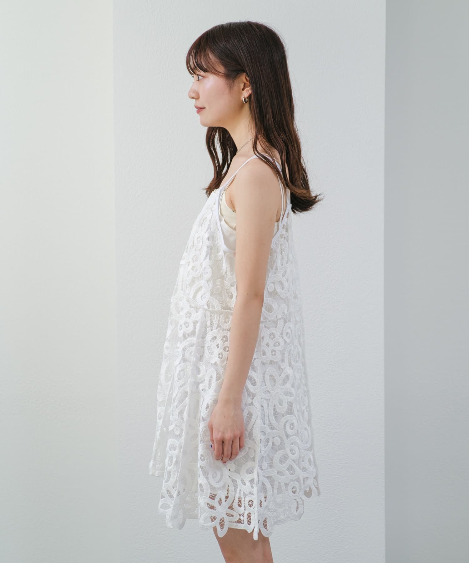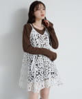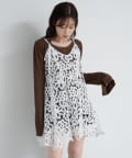 全体に施された繊細なレースと透け感のある素材が上品で女性らしい雰囲気を演出してくれます。