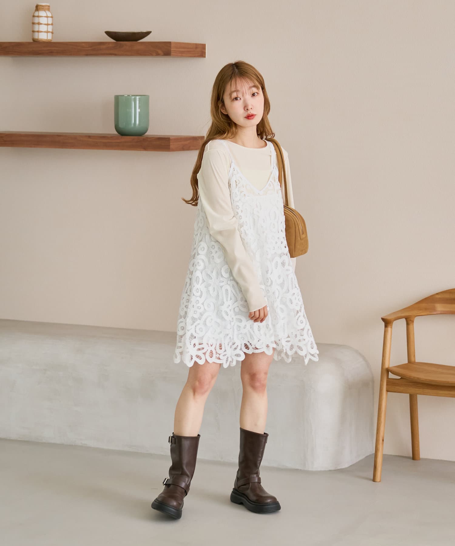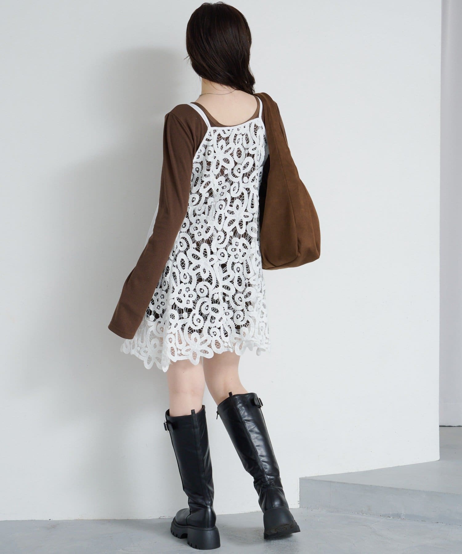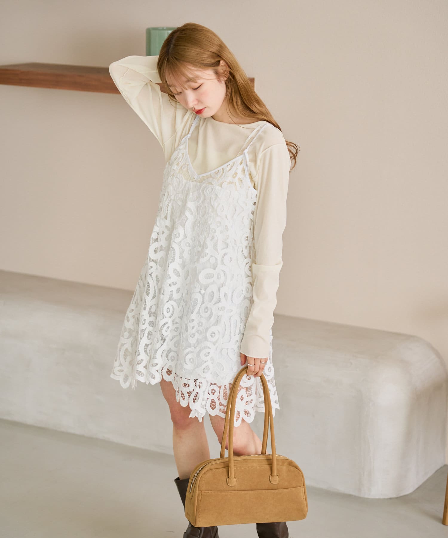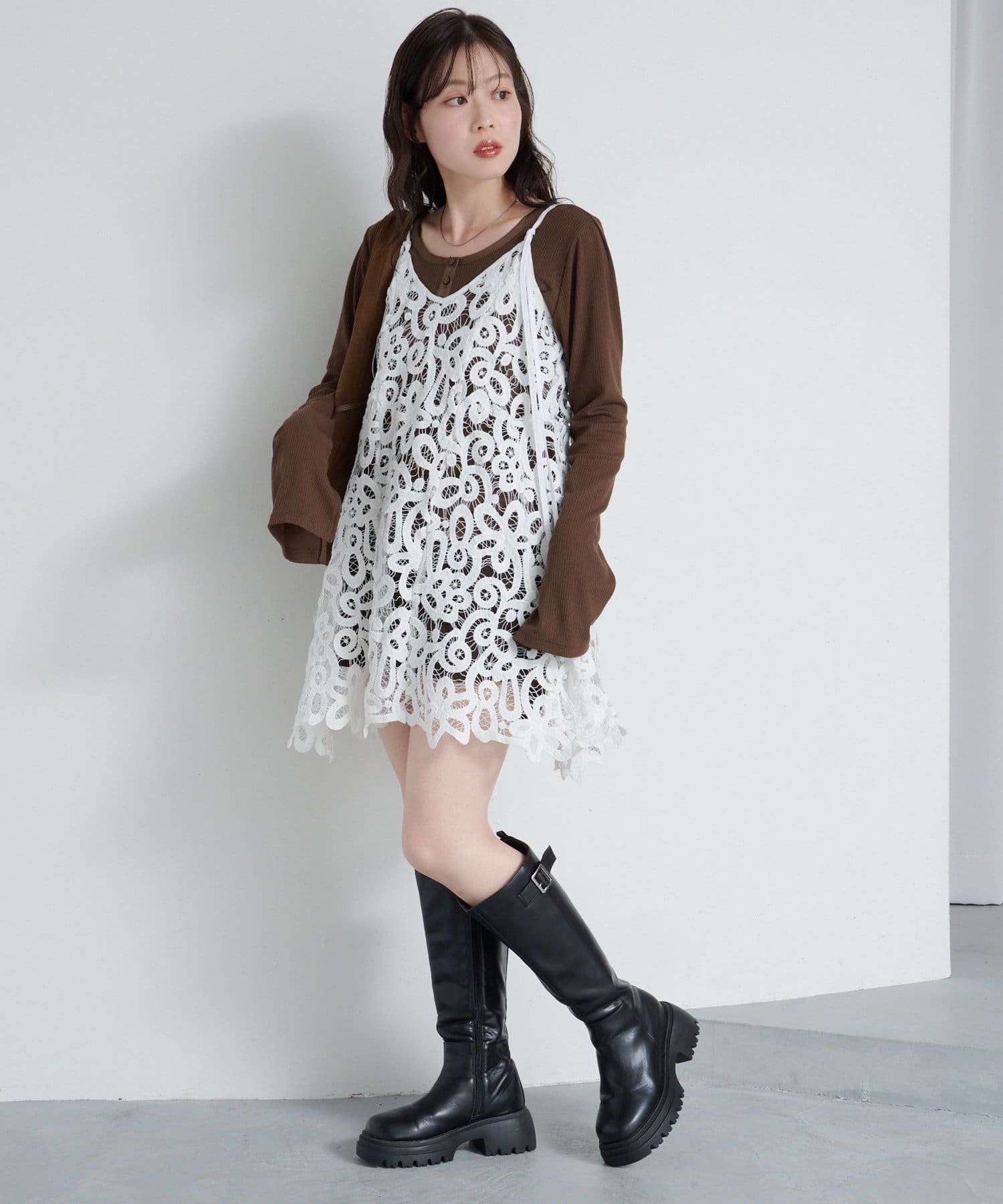 購入場所:パルクローゼット可愛くなりすぎてしまうレースワンピは苦手なのですが、大人レースで色んな組み合わせが楽しめるデザインで一目惚れしました♡♡