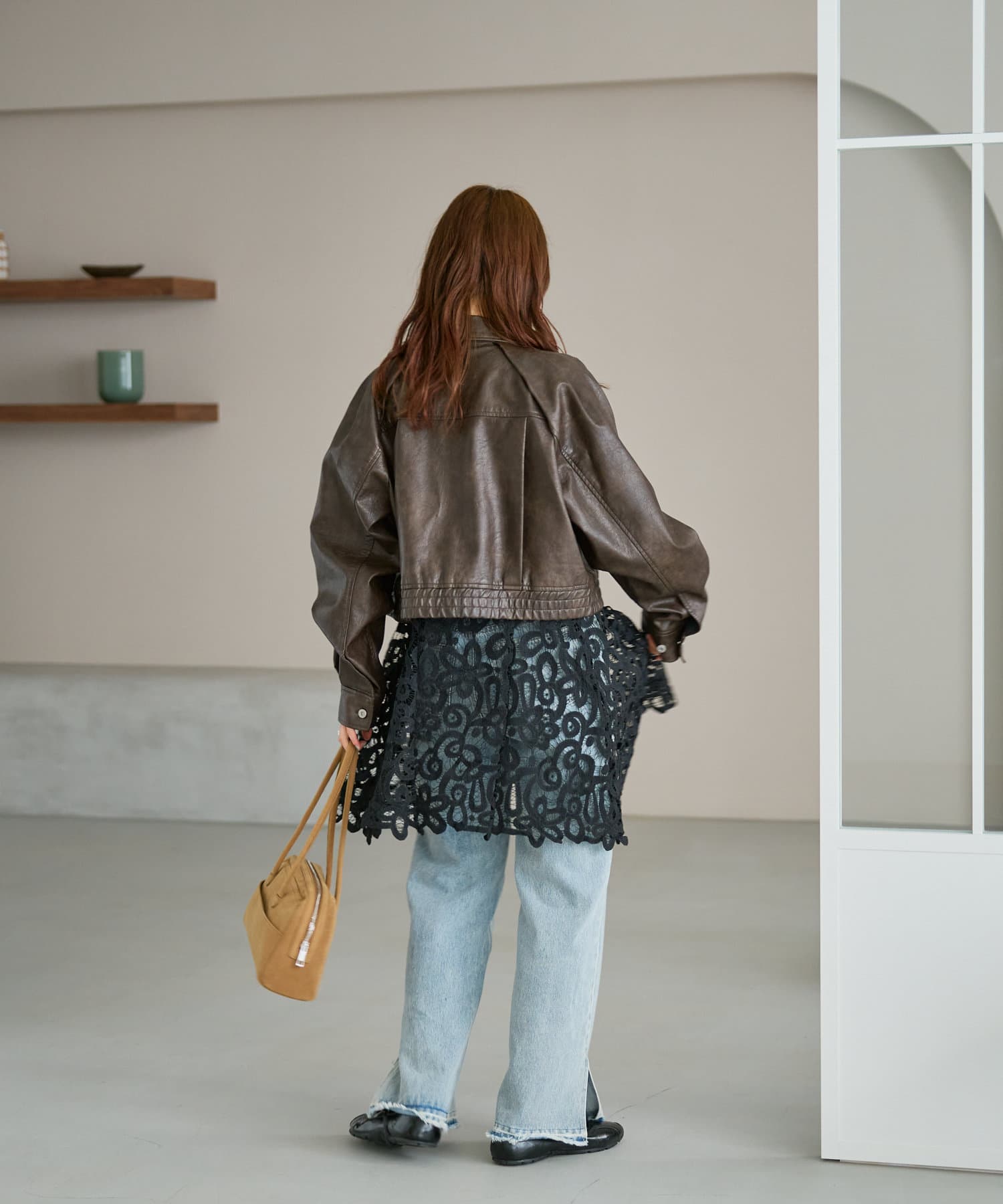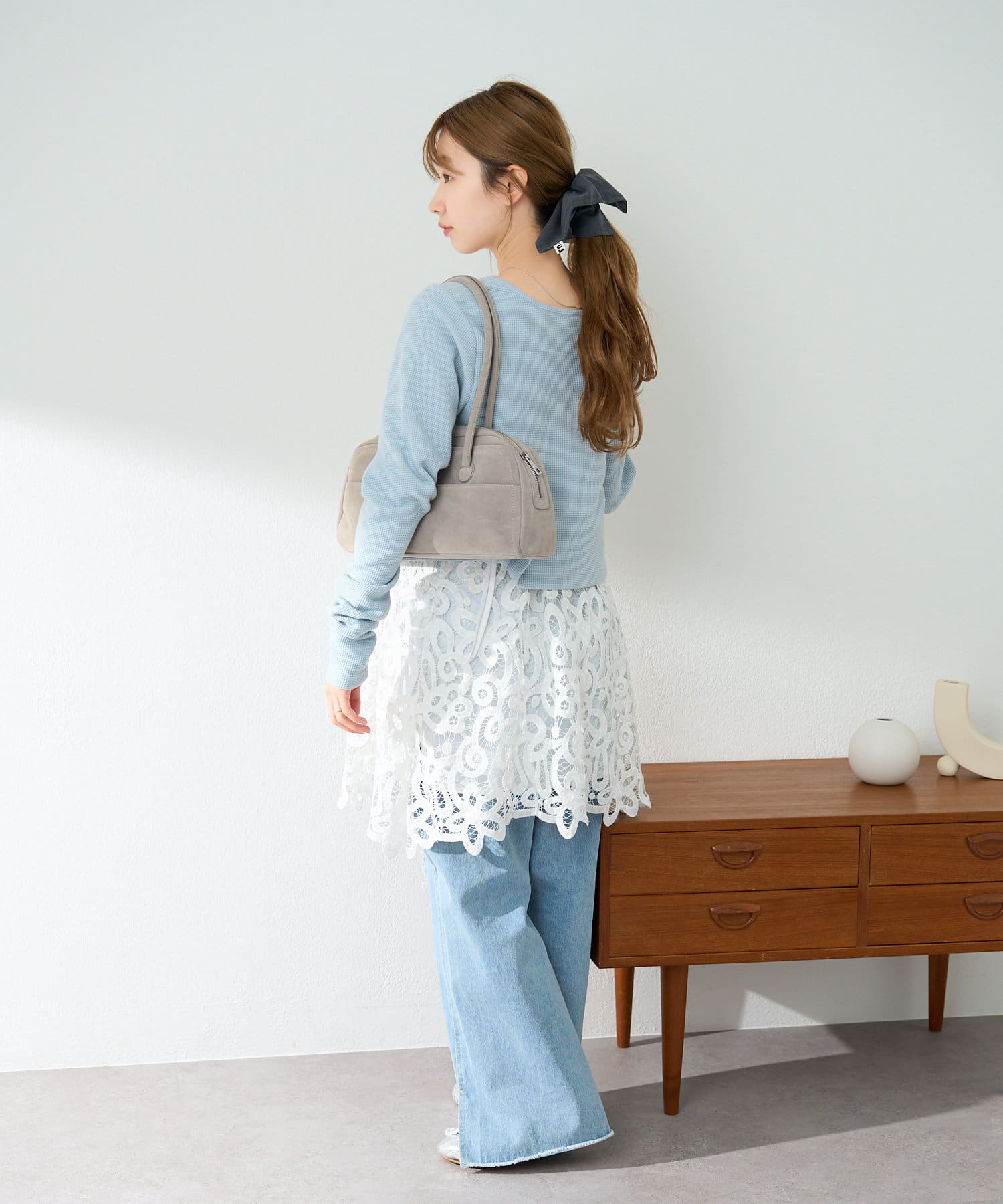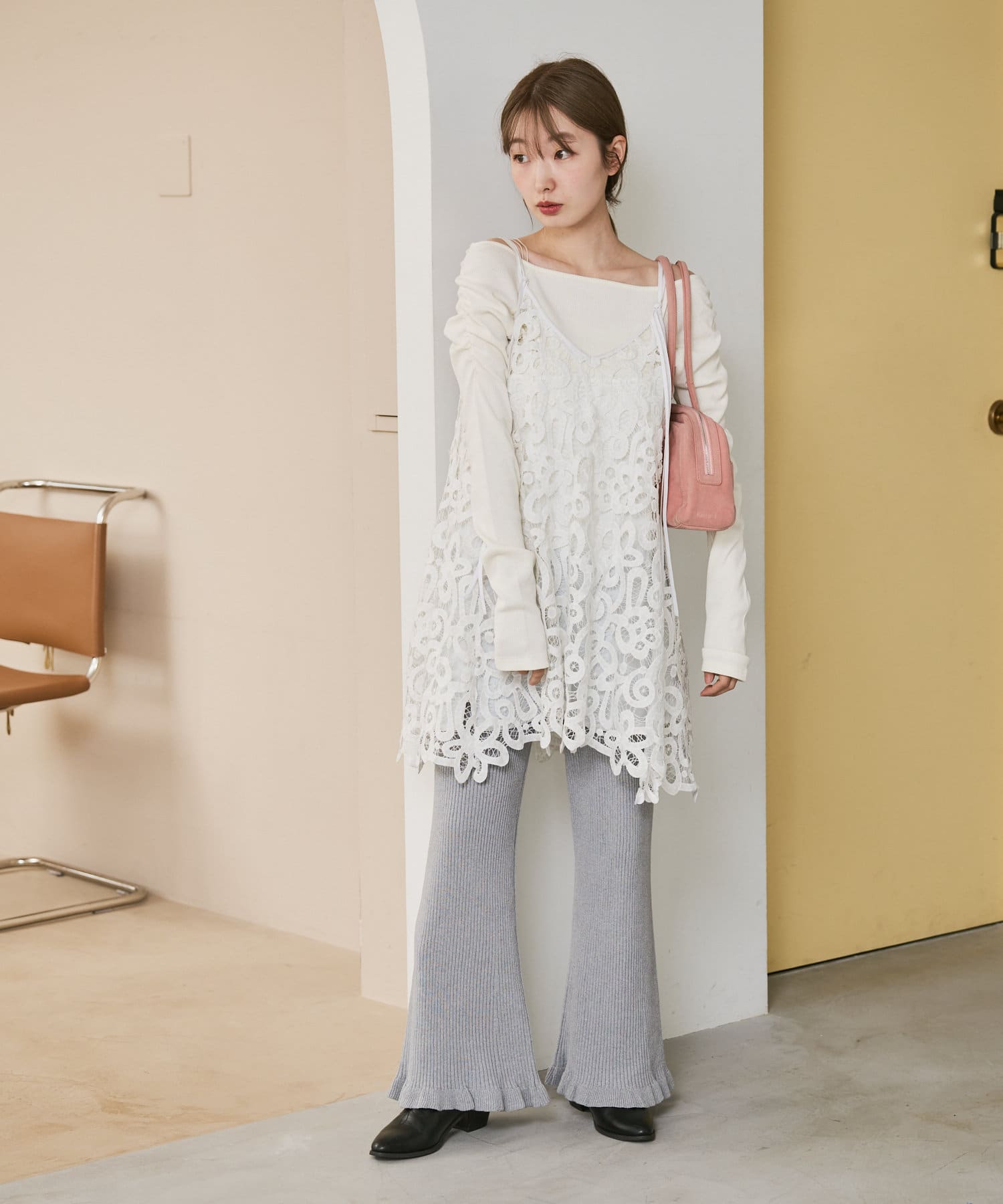デニムパンツと合わせるとレースの華やかさが程よくカジュアルダウンされ、デイリー使いにぴったりです。