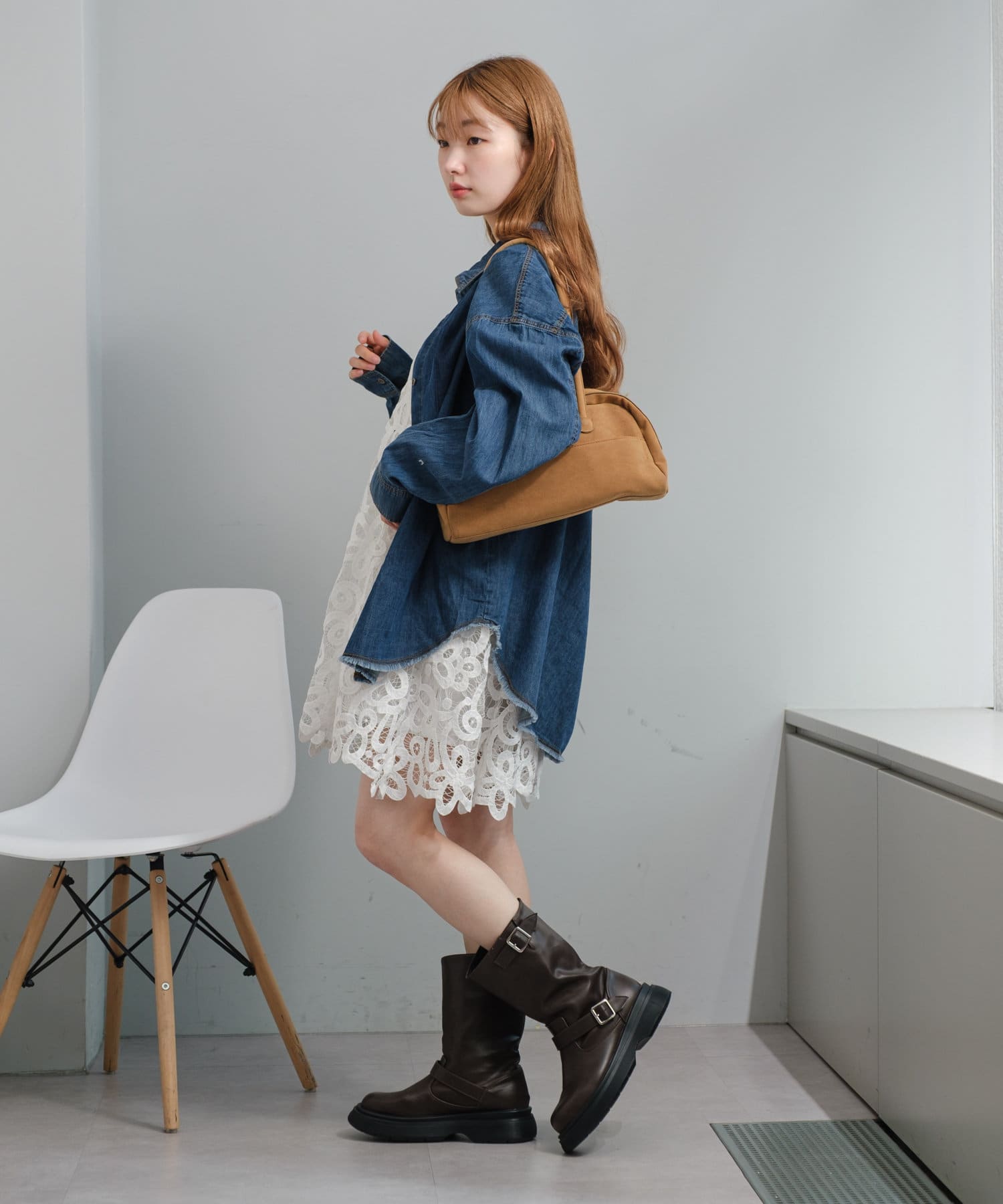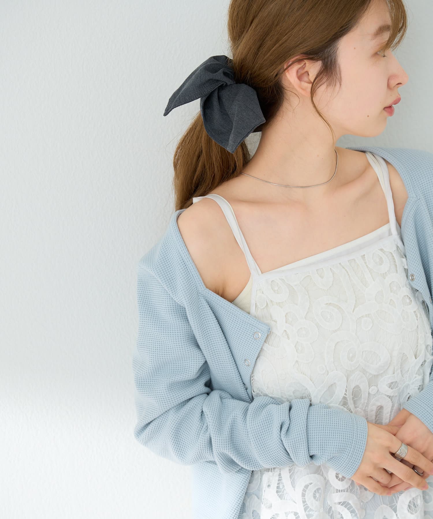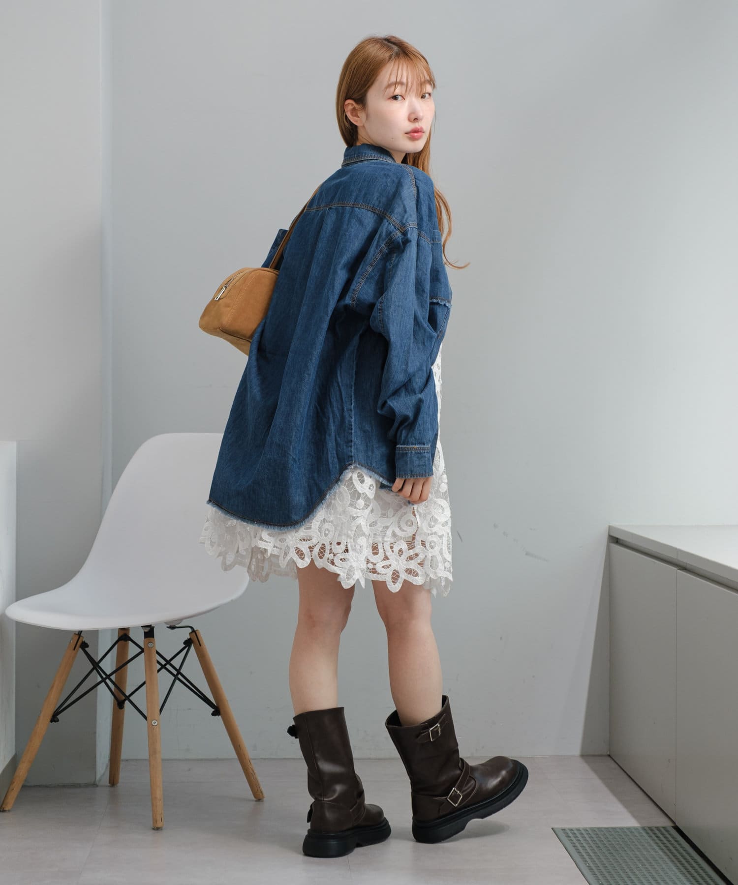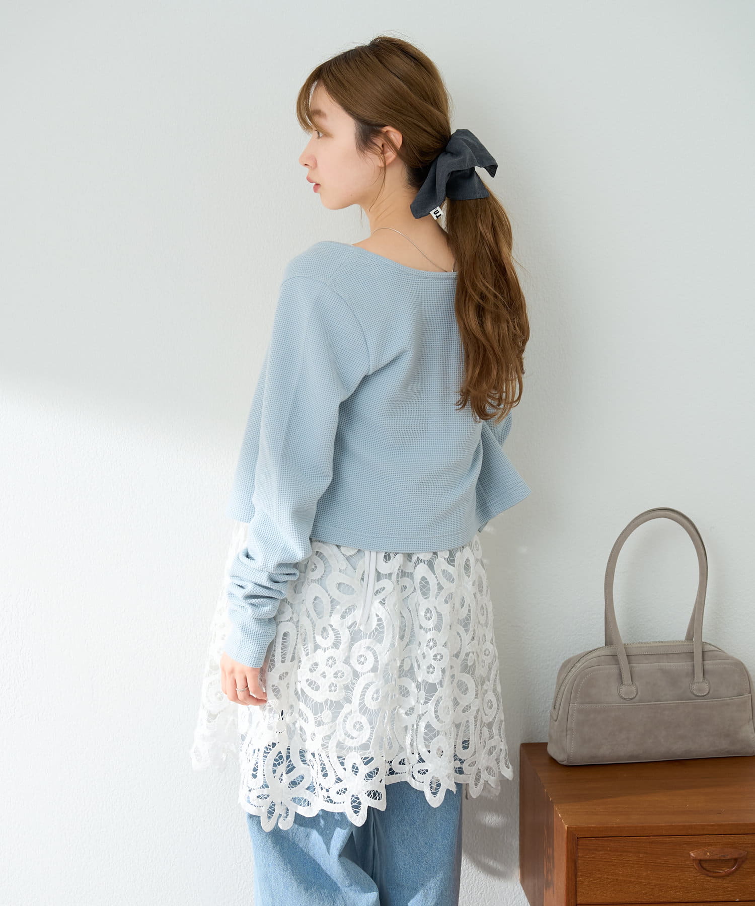 デニムパンツと合わせるとレースの華やかさが程よくカジュアルダウンされ、デイリー使いにぴったりです。
