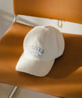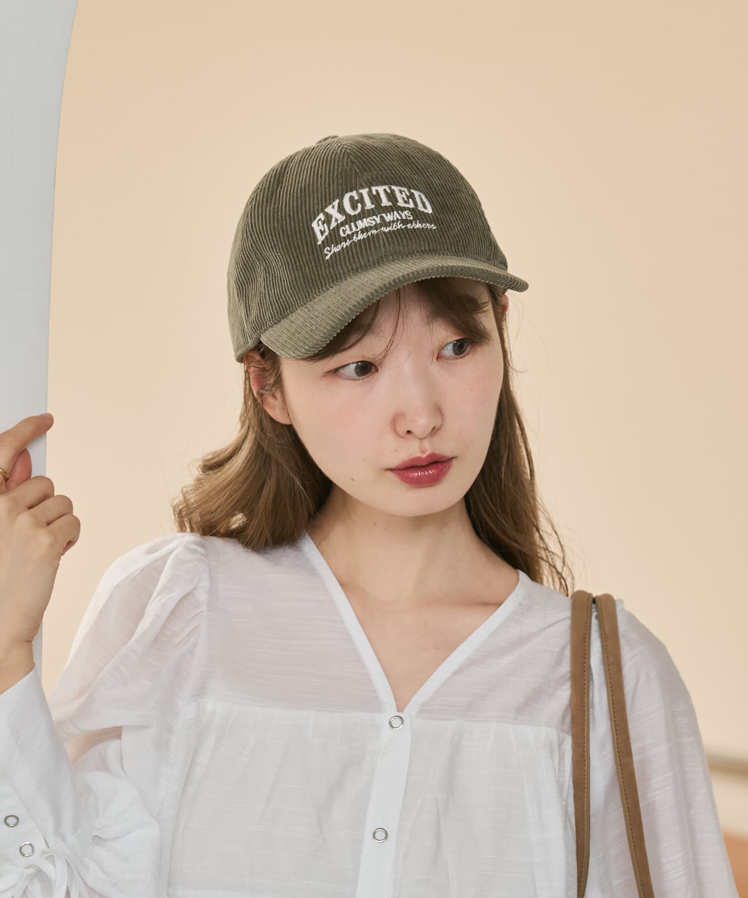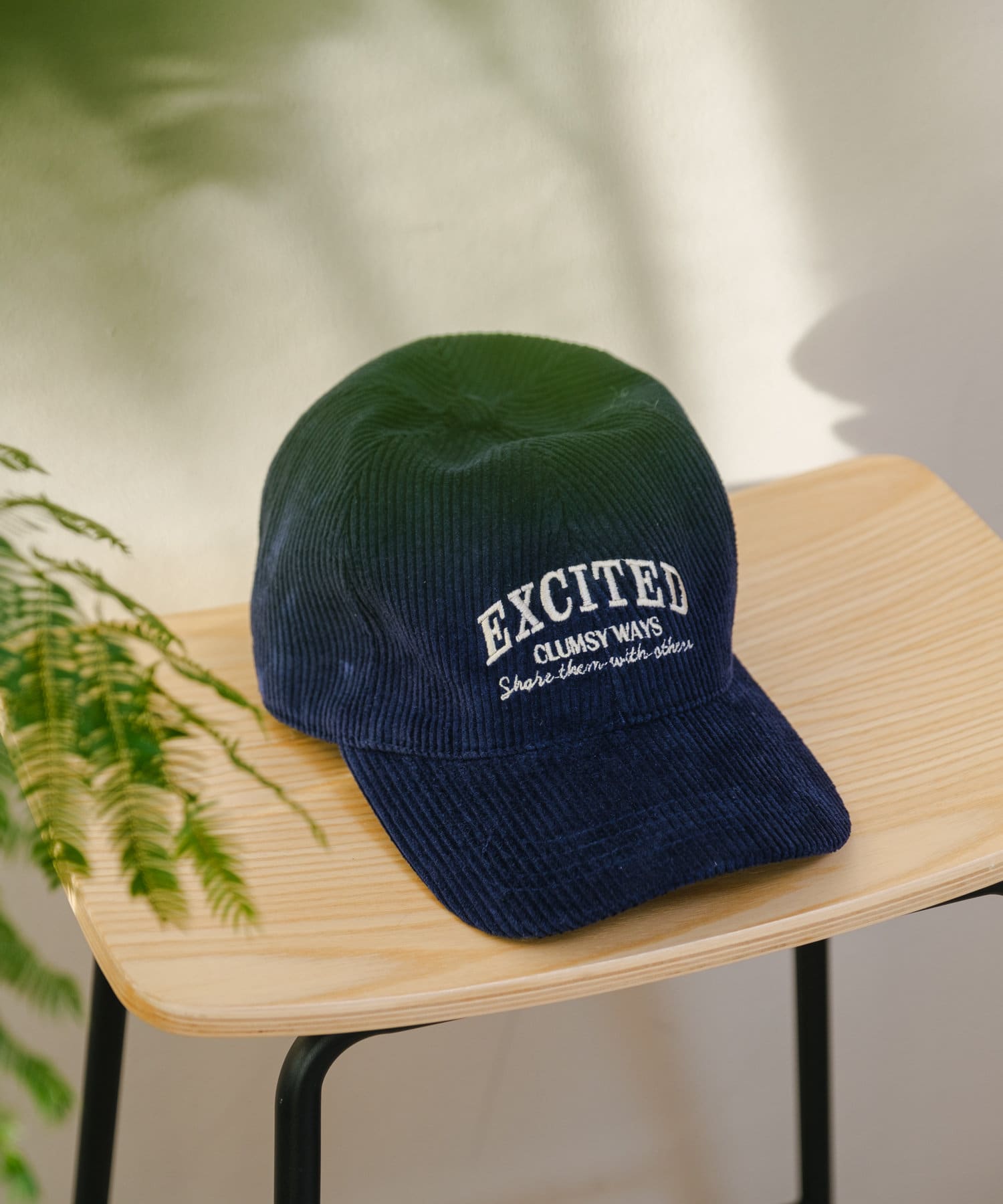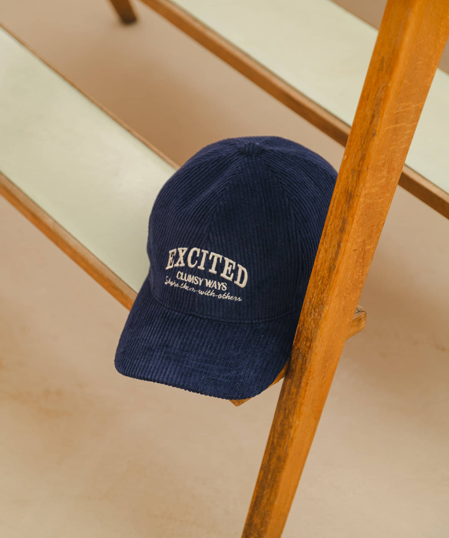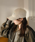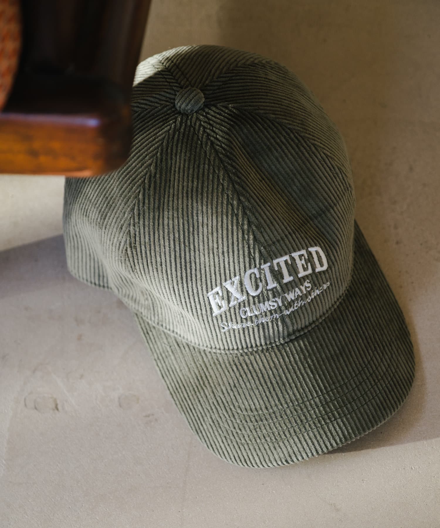 柔らかくて温かみのある素材に、ロゴが目を惹くコーデュロイキャップ。