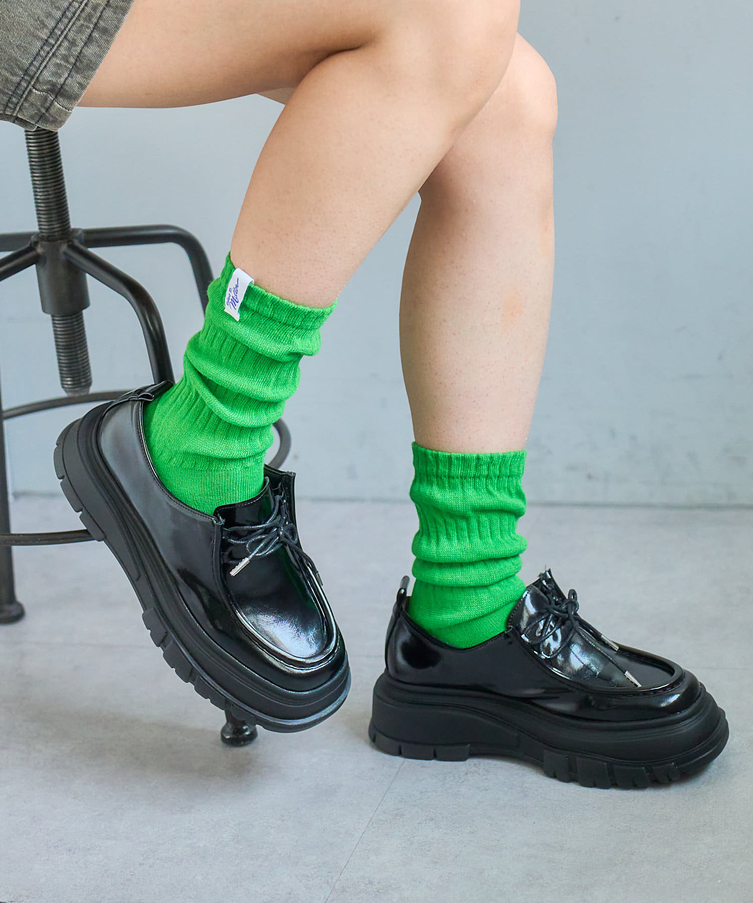 カラーポップなルーズソックスで足元にアクセントを