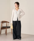 すっきりとしたシルエットのトップスなのでワイドボトムとの相性〇