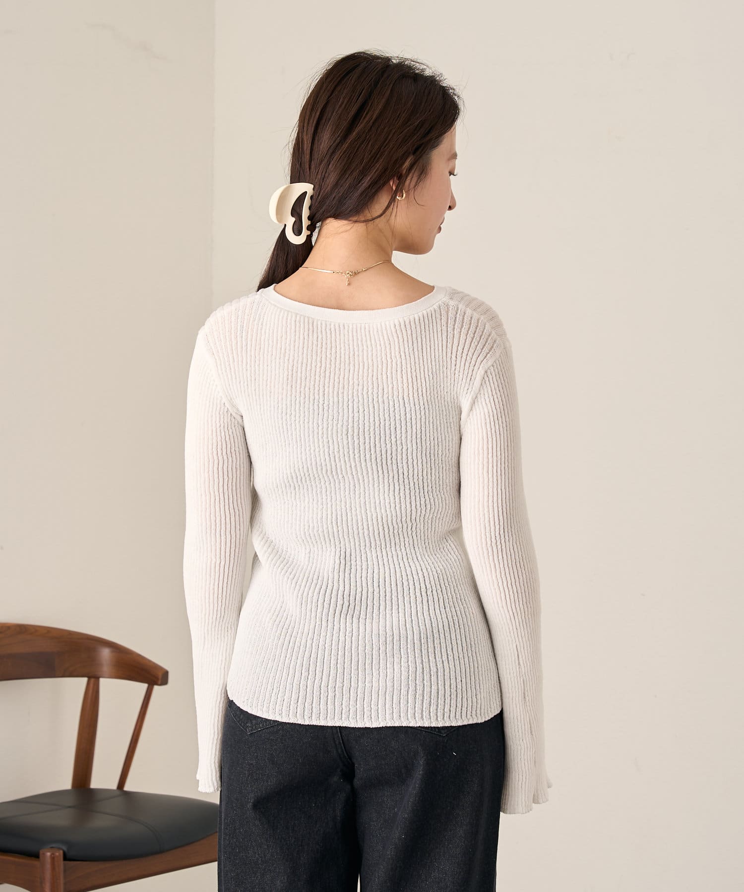 シンプルなデザインにフレア袖がポイントになる一枚。
