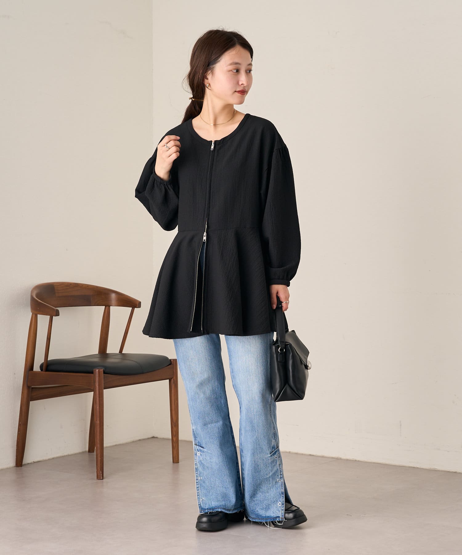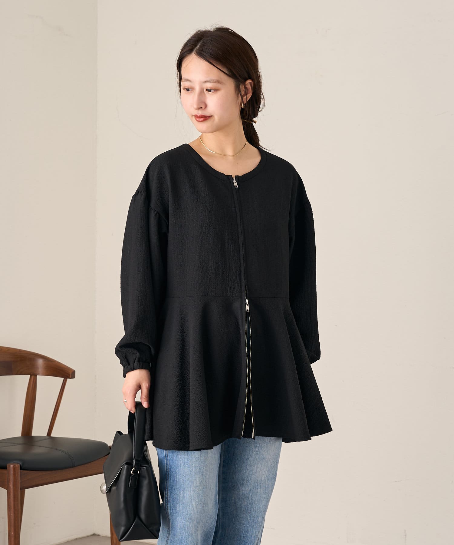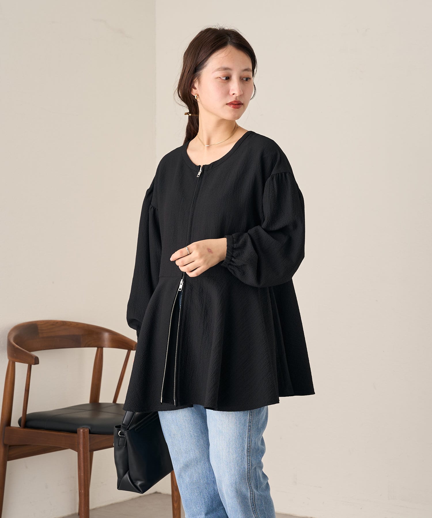 • OUTLET(アウトレット) 【Kastane】フロントZIPペプラムブラウス