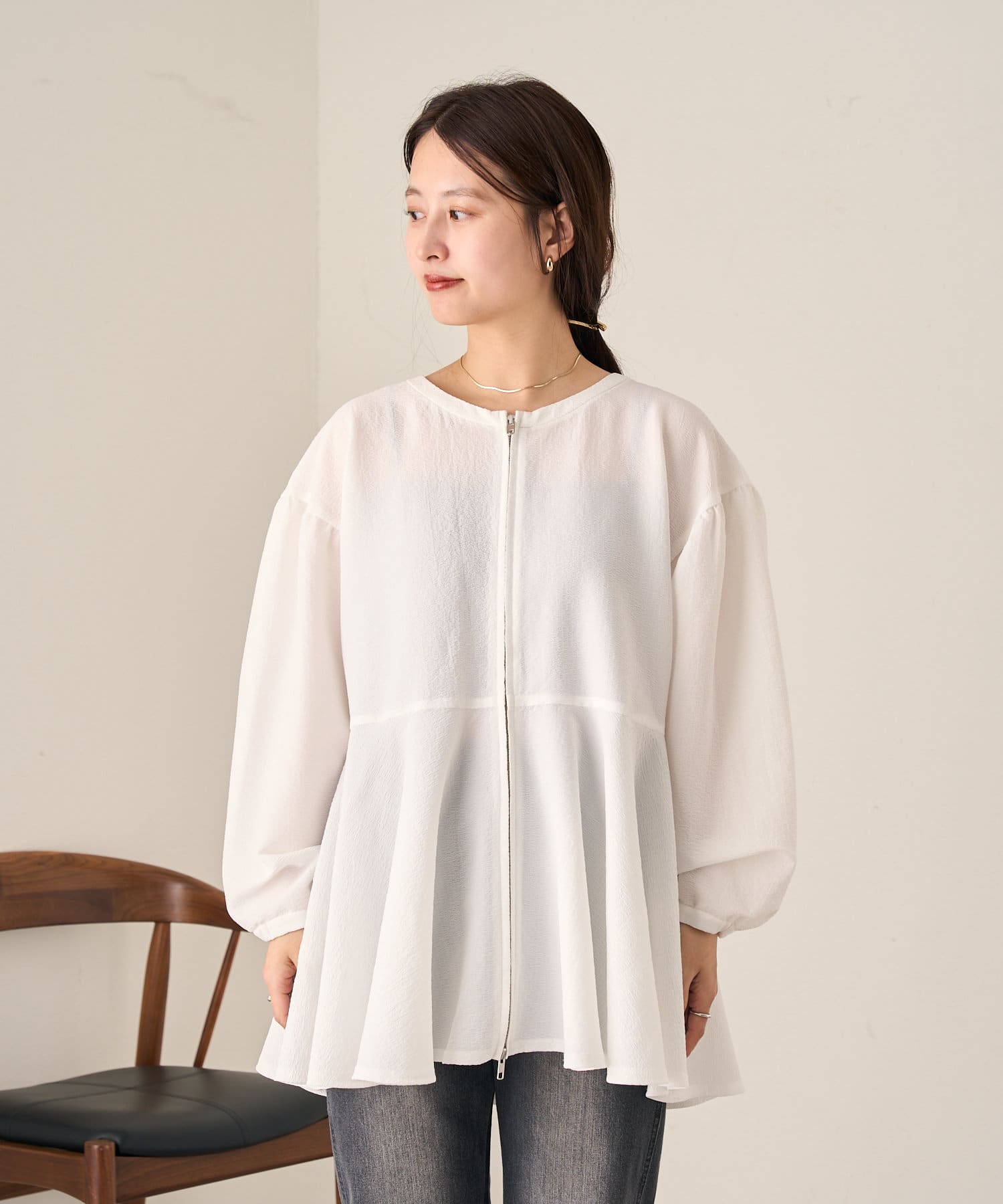 TOP > OUTLET > レディース > トップス > シャツ/ブラウス(ボタン) > 【Kastane】フロントZIPペプラムブラウス
